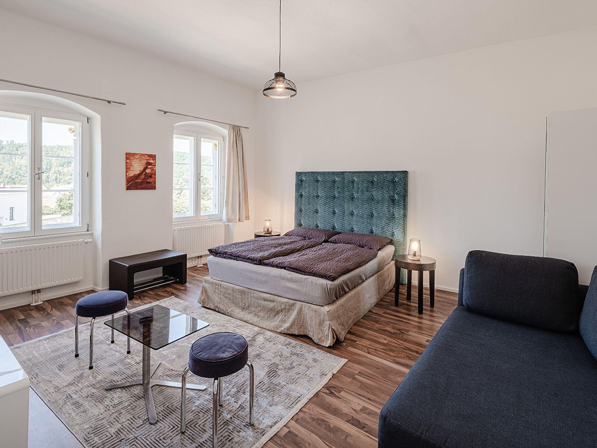 2022 entschied man sich, einige der historisch wertvollen Räume einem breiteren Publikum zugänglich zu machen und in eine kurzfristige Vermietung überzuführen. Es besteht daher im Gebäude eine Mischnutzung von bisherigen Mietwohnungen und Apartmentvermietung. Ein Gemeinschaftsgarten steht Ihnen zum Relaxen zur Verfügung.