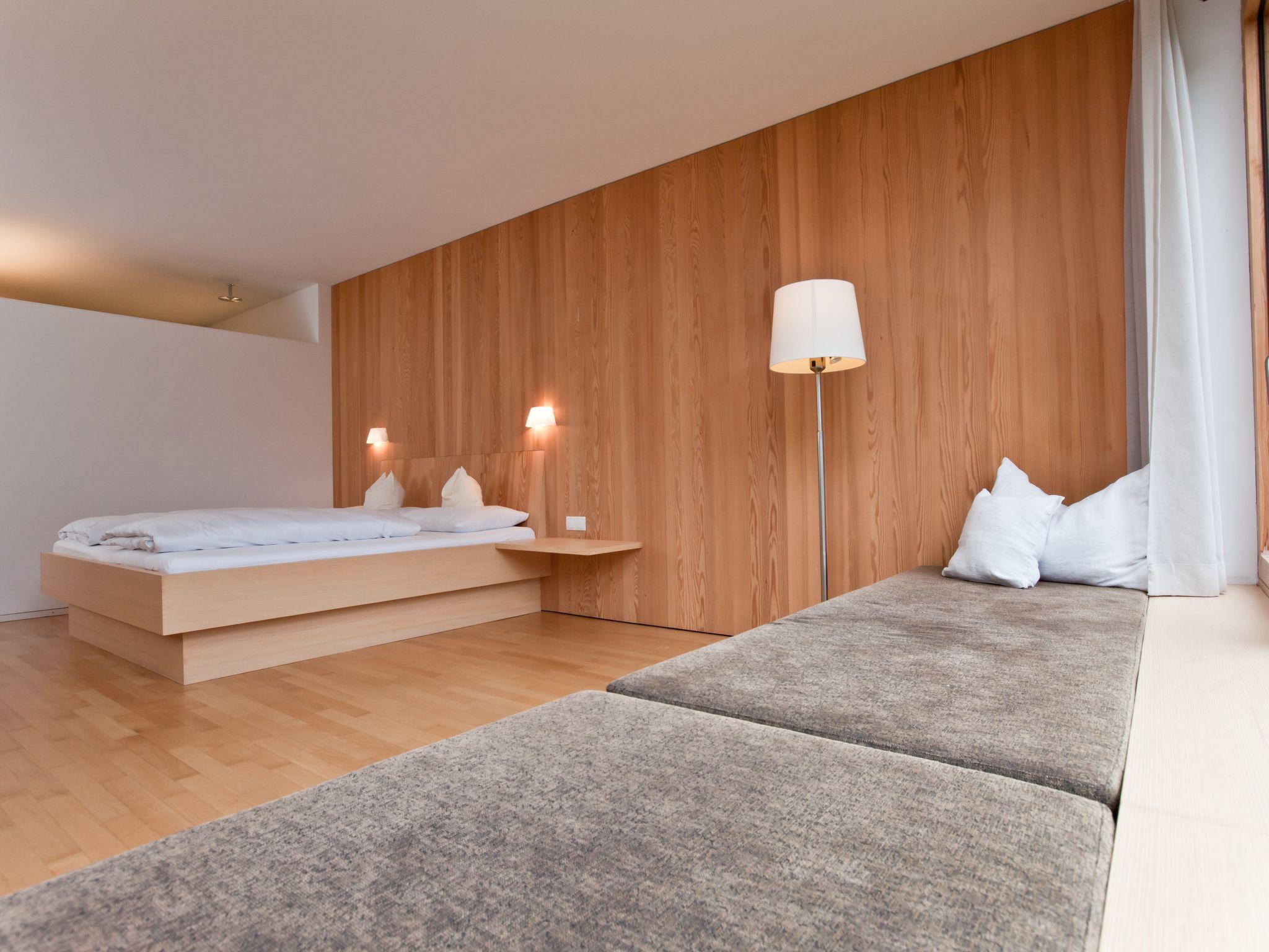 Purist design, oiled wooden floors, day beds by the panoramic windows with magnificent views of the mountains make for particularly natural and relaxed living.