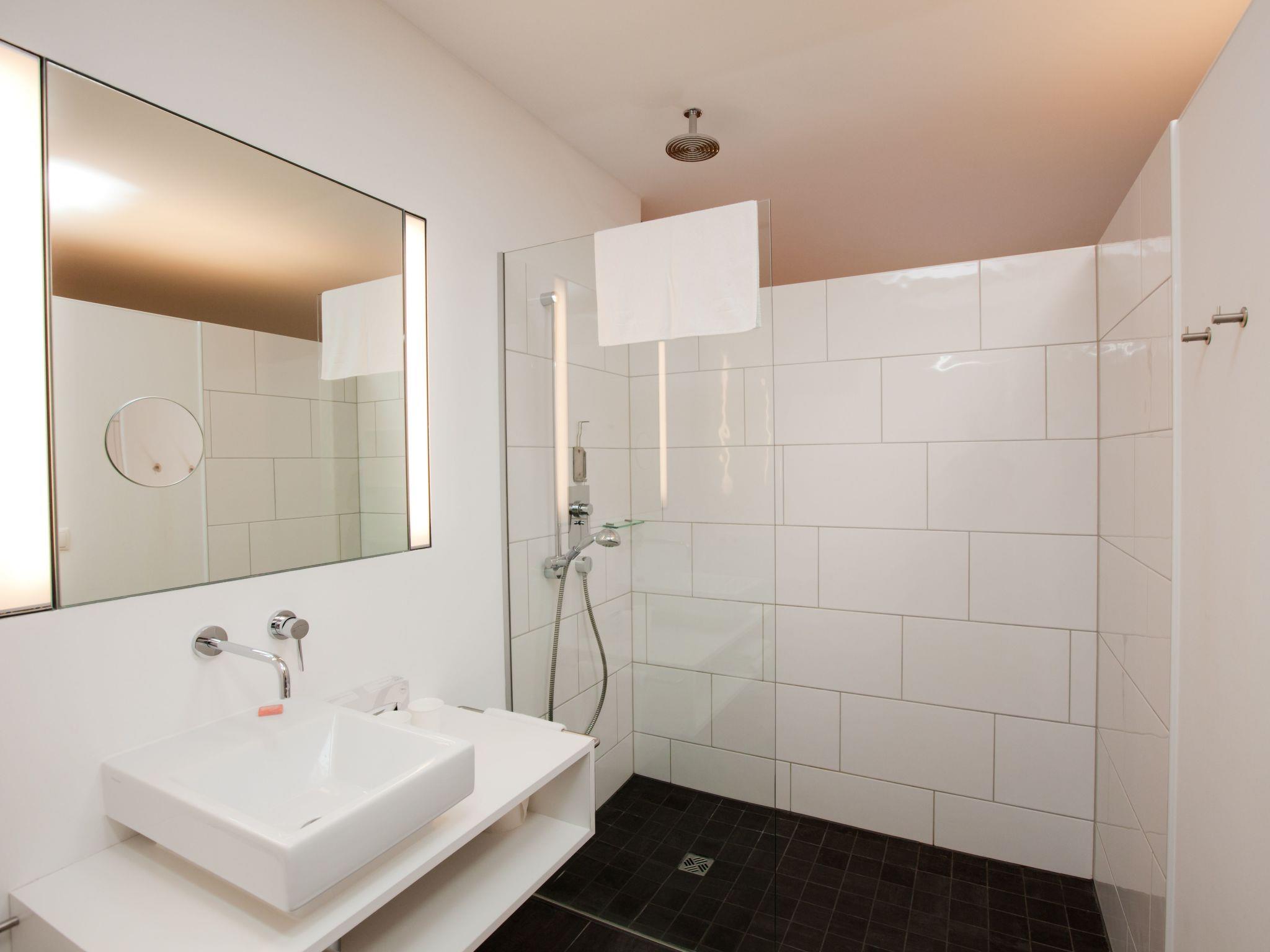 Bathroom with rain shower and toilet, hairdryer, flat screen TV, business equipment (workstation, wireless lan), fully equipped kitchen with coffee machine, tea maker, dishwasher, hob, microwave, cutlery, glasses, crockery, fridge and a charming dining area.