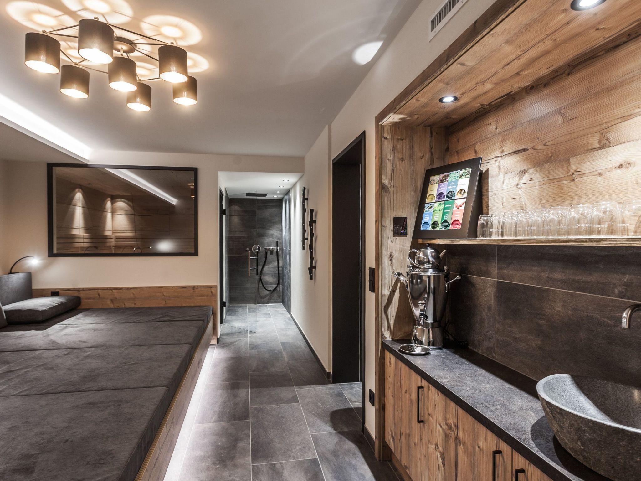 With a total of 8 rooms and 6 bathrooms, each chalet offers enough space for 16-24 people. All rooms have a TV and a safe, some of the rooms also have a balcony. Each chalet is equipped with WLAN, underfloor heating, an open-plan designer kitchen with a large dining area and a spacious wellness area with a Finnish sauna and relaxation area.