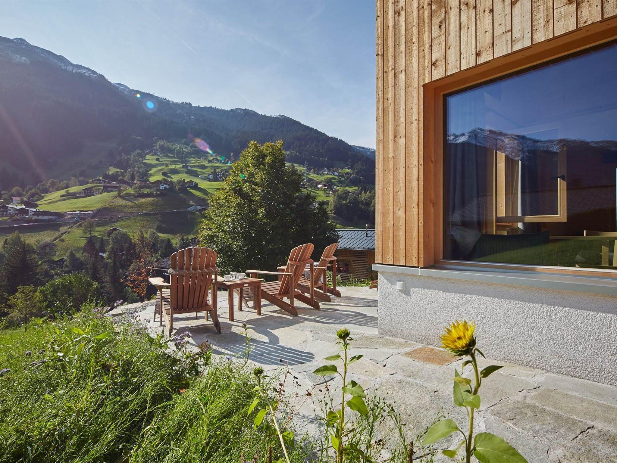 Das ganze Jahr über ist das Chalet ein wunderbares Refugium inmitten von Bergen, Natur und blauem Himmel.