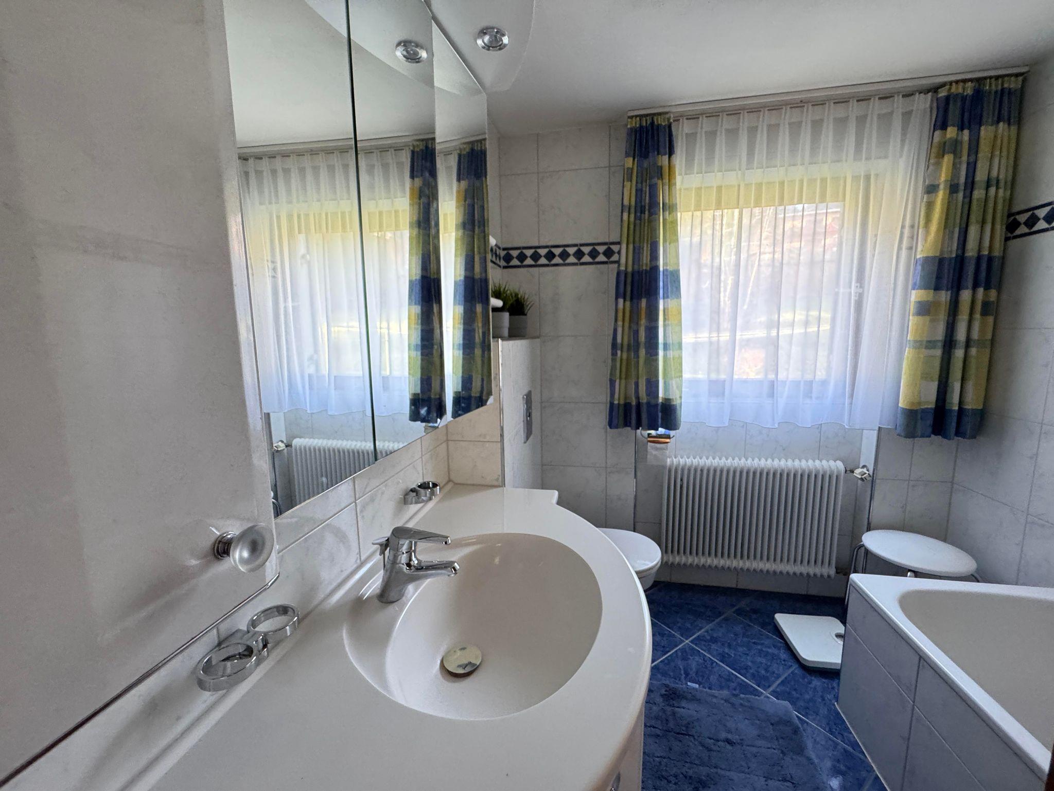 Zimmer mit Einzelbett und Jokacouch, Bad mit WC, Badewanne, Föhn.