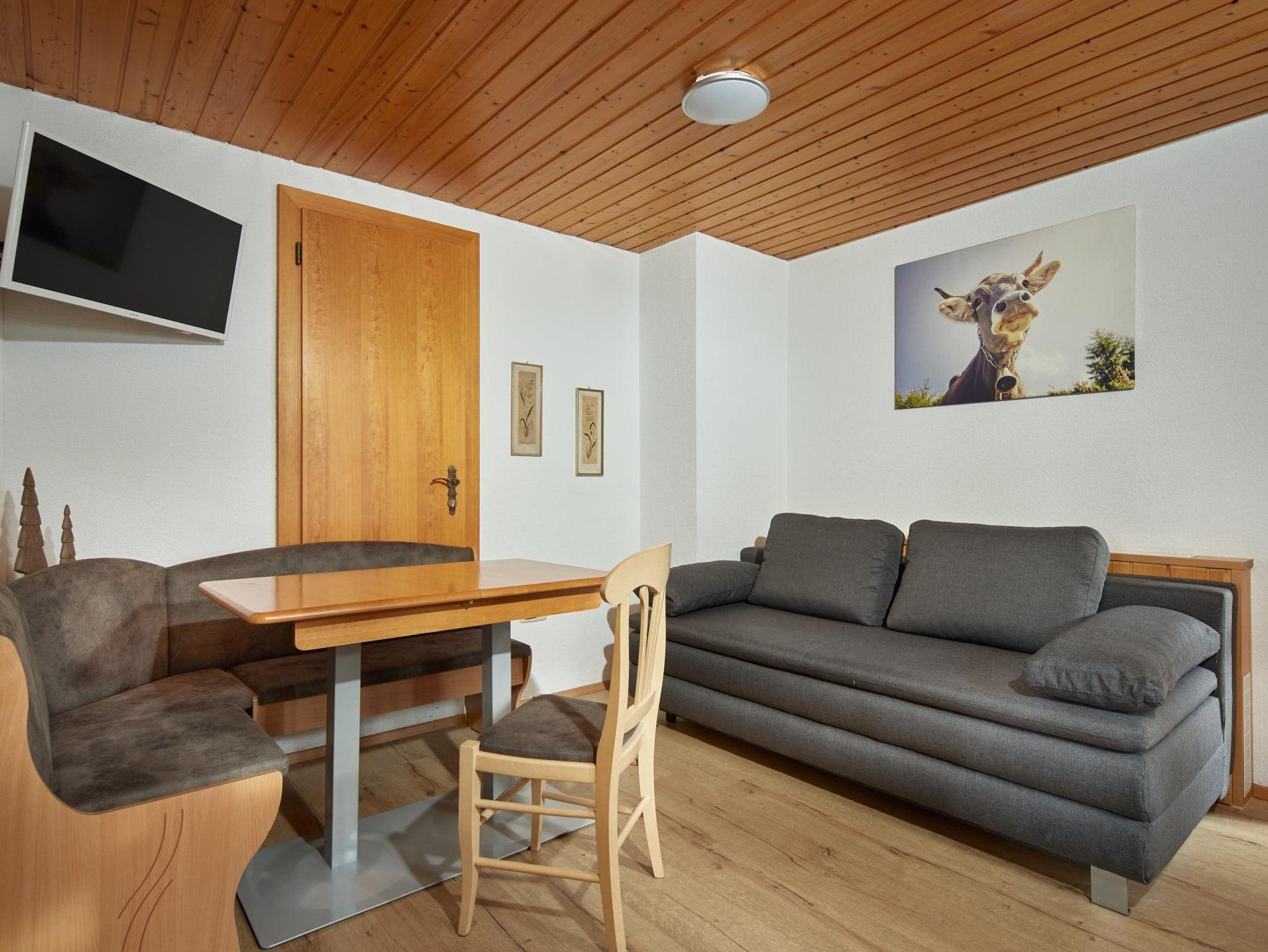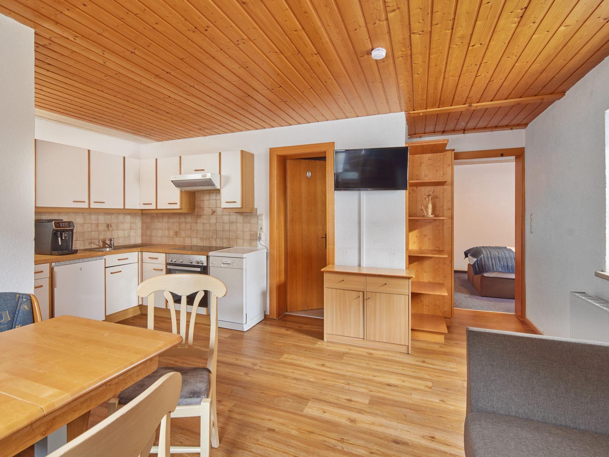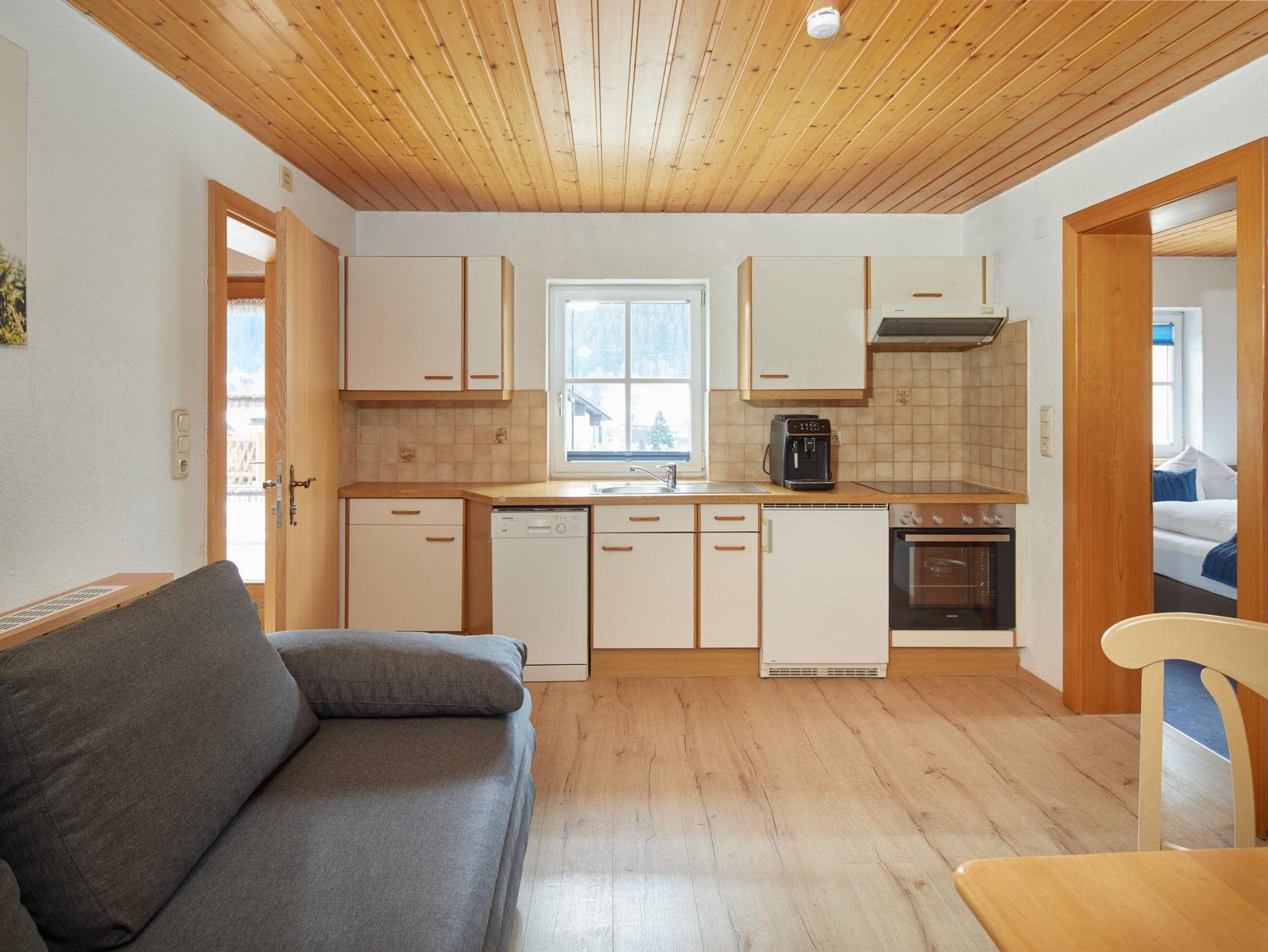 Wohnung Ganeu besteht aus einem Schlafzimmer, Wohnraum mit Couch, Küche und DU/WC (Seifenspender und Haartrockner). Die Küche ist komplett ausgestattet sowie mit Geschirrspüler, Mikrowelle, TV uvm. Bettwäsche und Handtücher sind vorhanden. Kostenlos sind: W-Lan Verbindung, Safe, Parkplatz und Skidepot bei der Talstation.