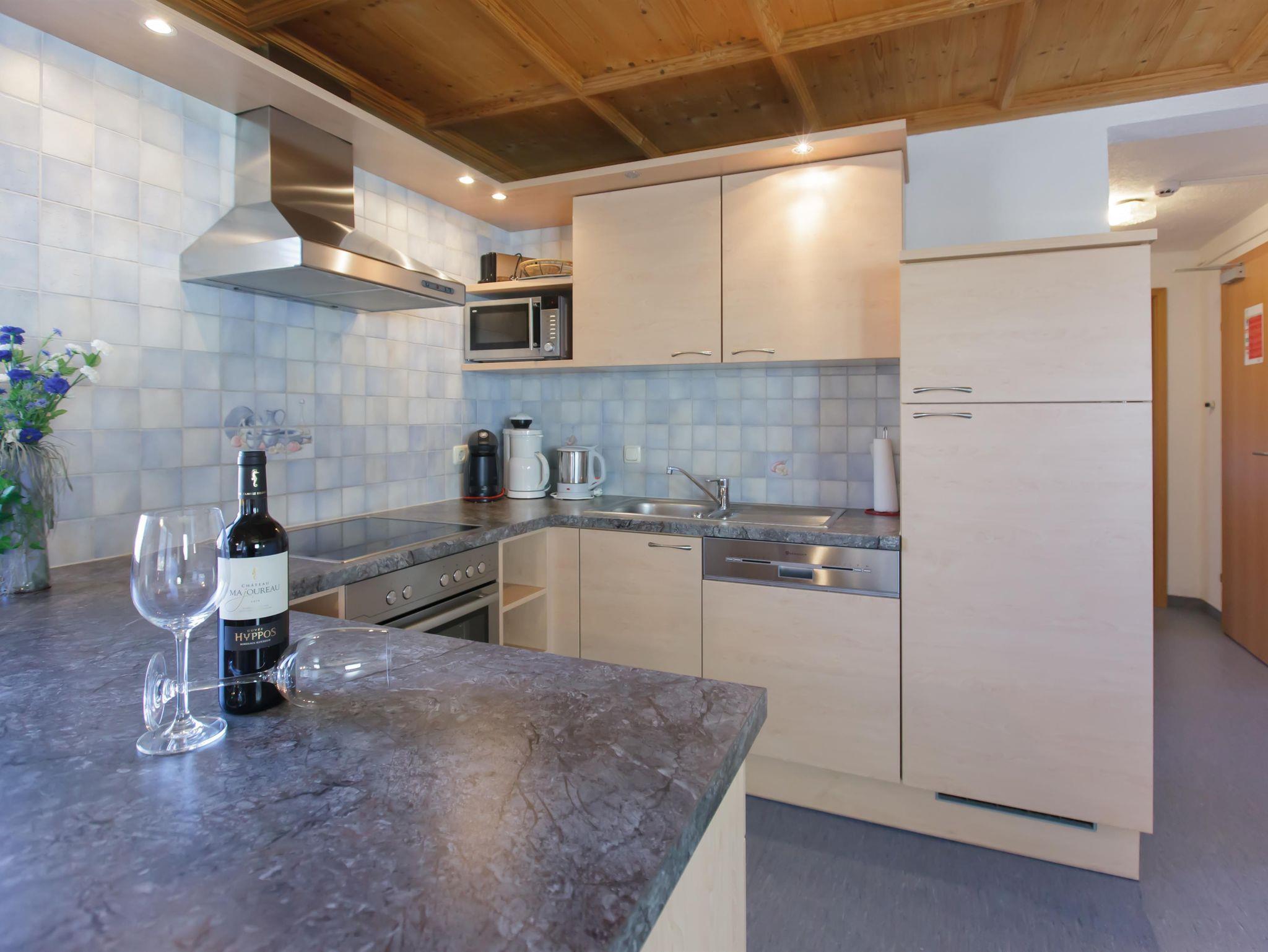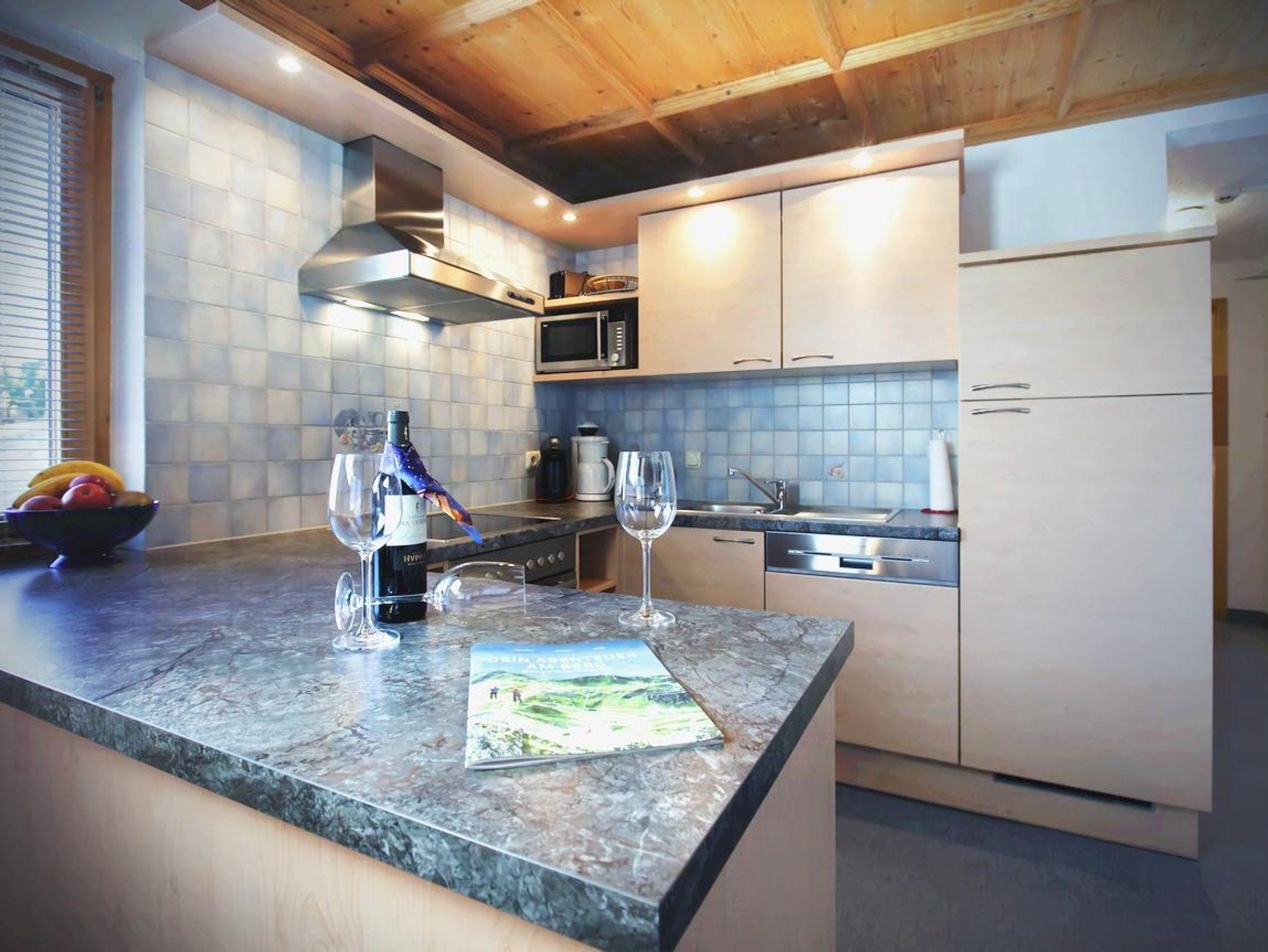 (70m2) 2 Schlafzimmer (1DZ / 1 VBZ), Elektroherd mit 4 Platten (Ceran), Backofen, Mikro, Geschirrspüler, Kühl/Gefrierschrank, Kaffeemaschine, Toaster, Mixer, Wasserkocher, KABEL-TV, WIFI-EMPFANG, 1 Dusche / 1 WC, Küche, Süd-Balkon