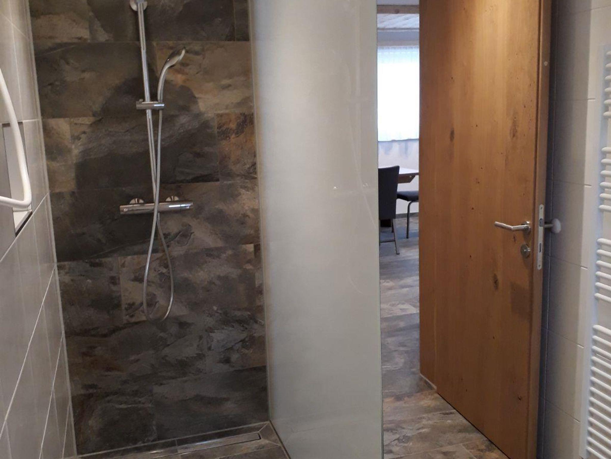 ein Zweibettzimmer drei Duschen , drei WC , komplett ausgestattete Wohnküche mit ausziehbarer Couch und Sat.TV,
