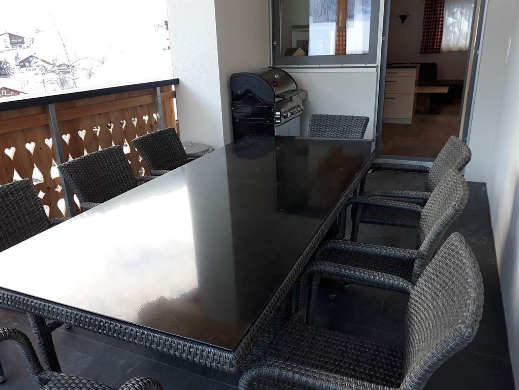 Von unserer Terrasse aus genießen Sie einen herrlichen Blick auf die Silvretta Gruppe ( größtes Schigebiet der Region Gehzeit 3 Minuten ).