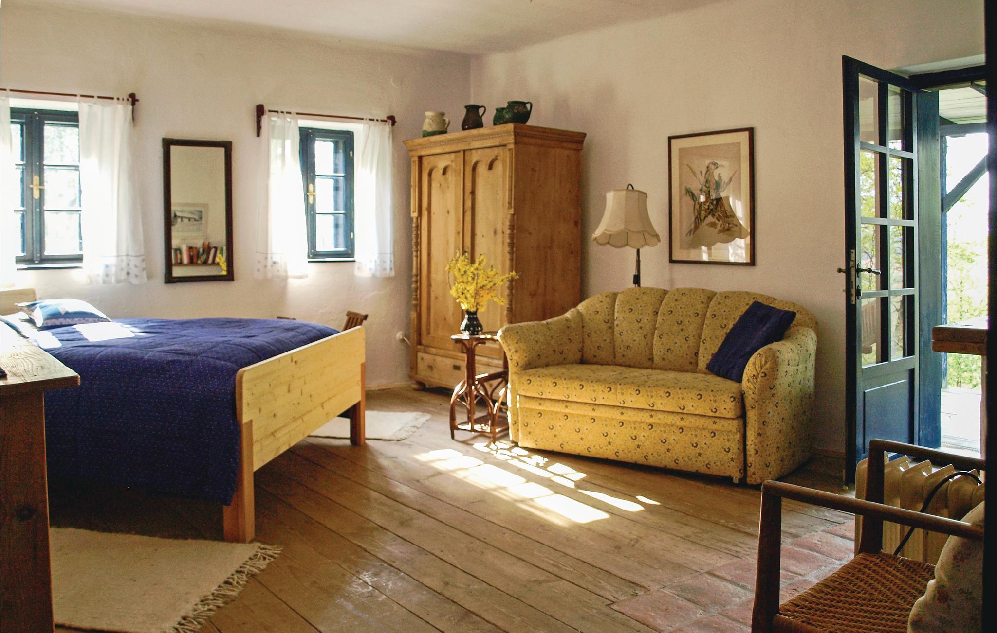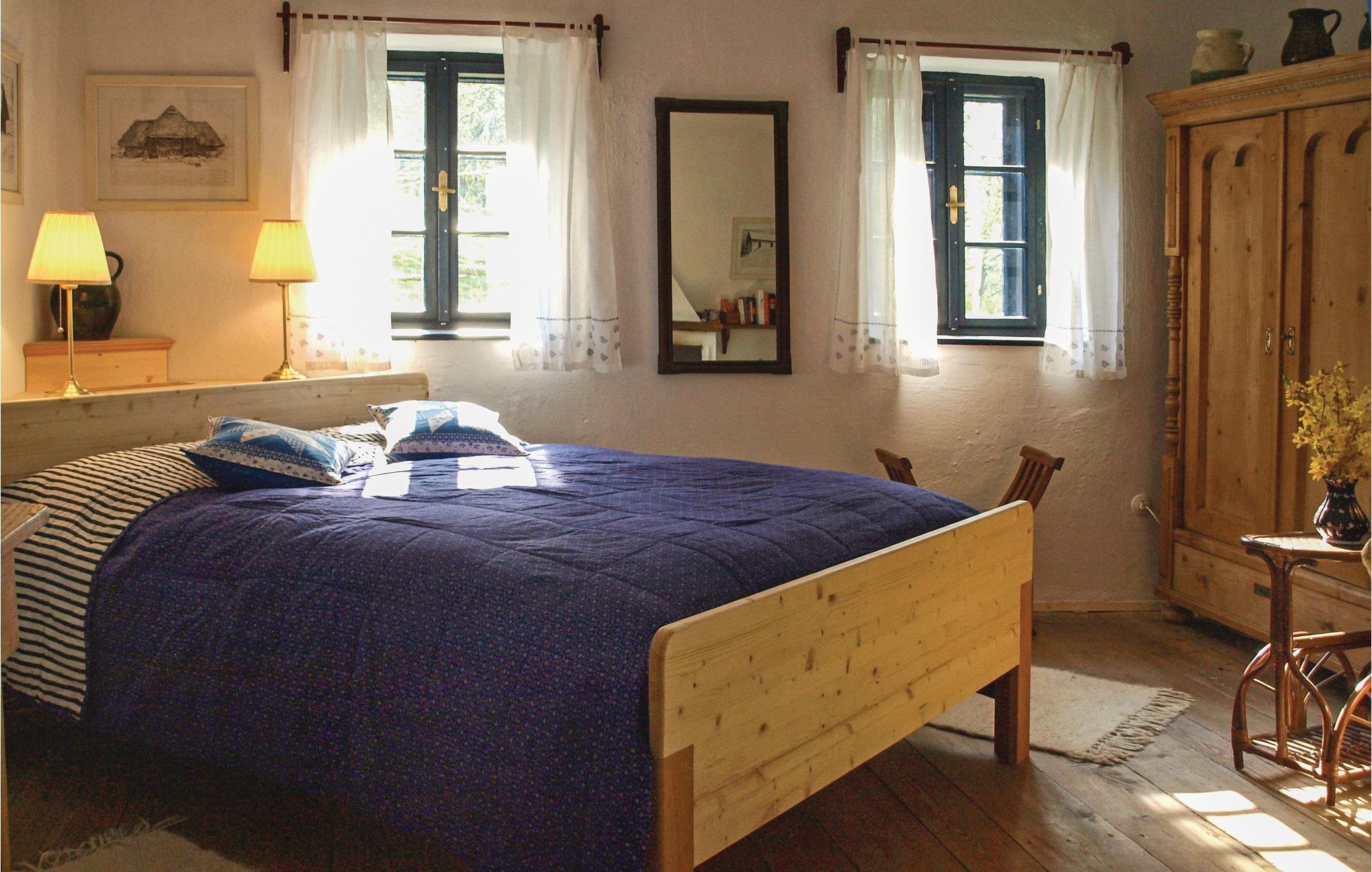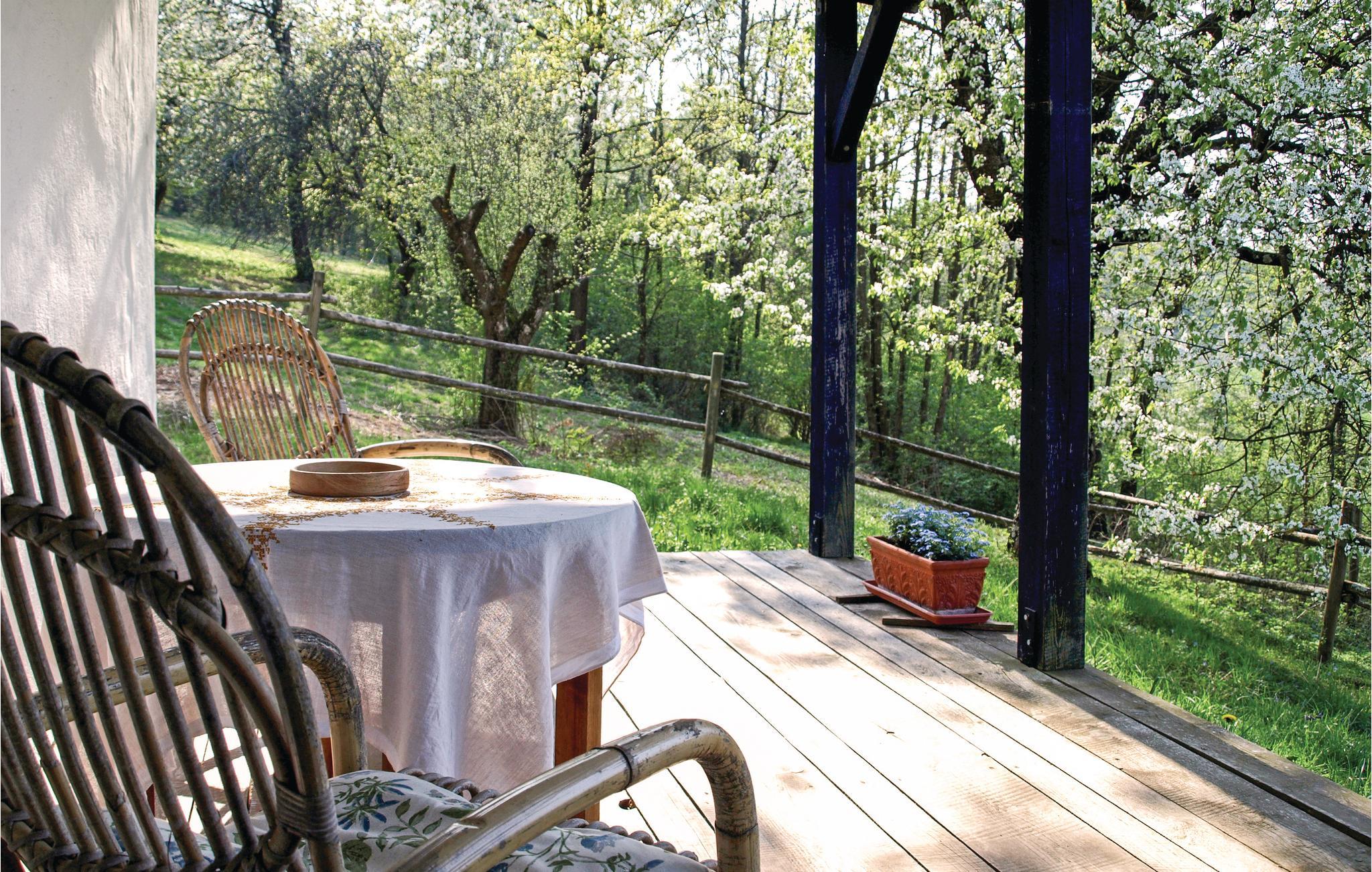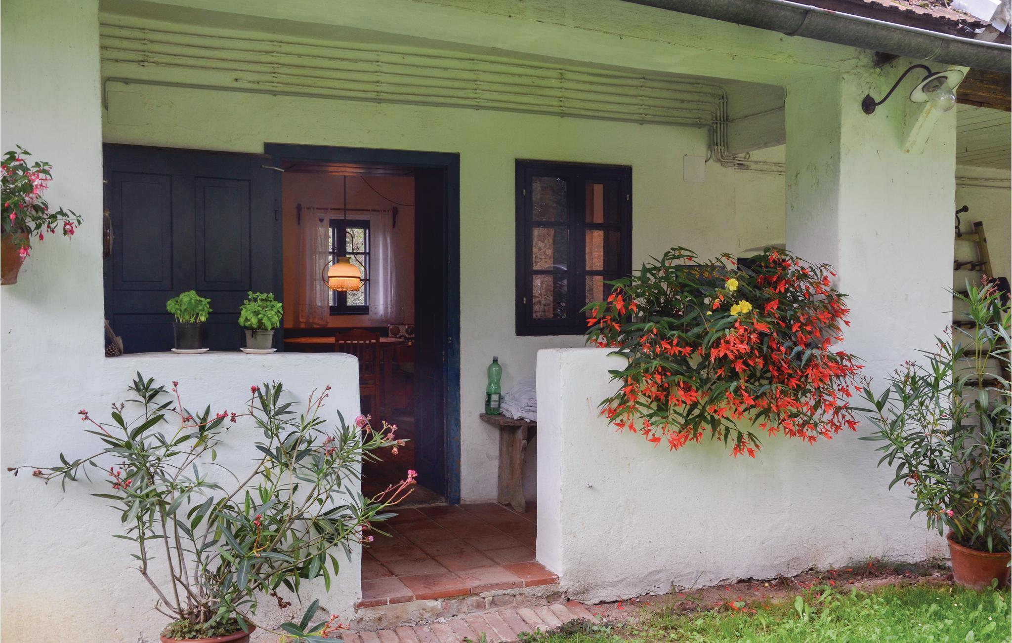 Dette typiske sydburgerlandske bondehus ligger omgivet af smuk natur i bløde bakker, men heller ikke langt fra den lille by Güssing. Den grønne kakkelovn i køkkenet og den åbne kamin i stue og soveværelser både sørger for varme og hygge, skulle der komme en kølig dag. Fra den store gynge på terrassen er der en betagende udsigt over de grønne omgivelser, bl.a. til to af husets egne heste der græsser på engen (de kan ikke lejes men må gerne klappes). Her kan I virkelig slappe af og lade tankerne gå på langfart. Selvom dette hus emmer af forgangne tiders charme, så er der alle former for moderne bekvemmeligheder. Køkkenet og det indbydende badeværelse der er beklædt af træ og hvor der er badekar til afslapning, er med indgang fra arkadegangen. Der er badekåbe til låns. Her bliver i modtaget med morgenmad (står i køleskabet). I skuret ved siden af kan jeres cykler parkeres.