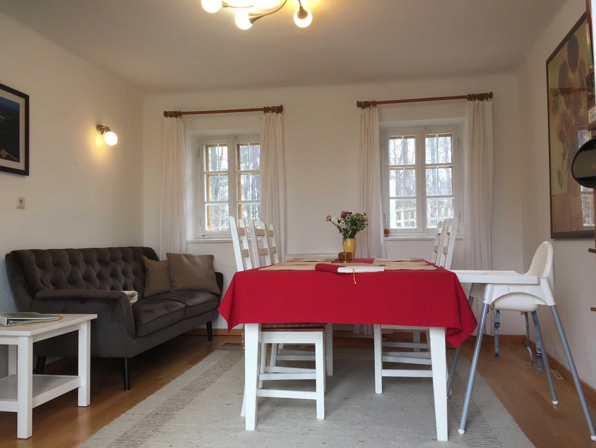 Das 200 Jahre alte, typische Keuschlerhaus besteht aus 5-Räumen: 3 Schlafzimmer mit 8 Betten, ausgestatteter Küche, Esszimmer, Bad, extra WC und großen Holzschuppen. Die Fenster ins Grüne und die Holzböden bringen eine helle und heimelige Atmosphäre in das liebevoll renovierte Landlust-Ferienhaus. Das Haus ist mit einem zentralen Holz- Kaminofen selber zu beheizen.