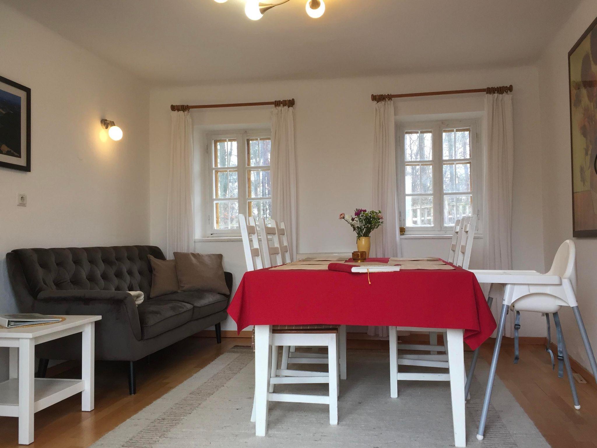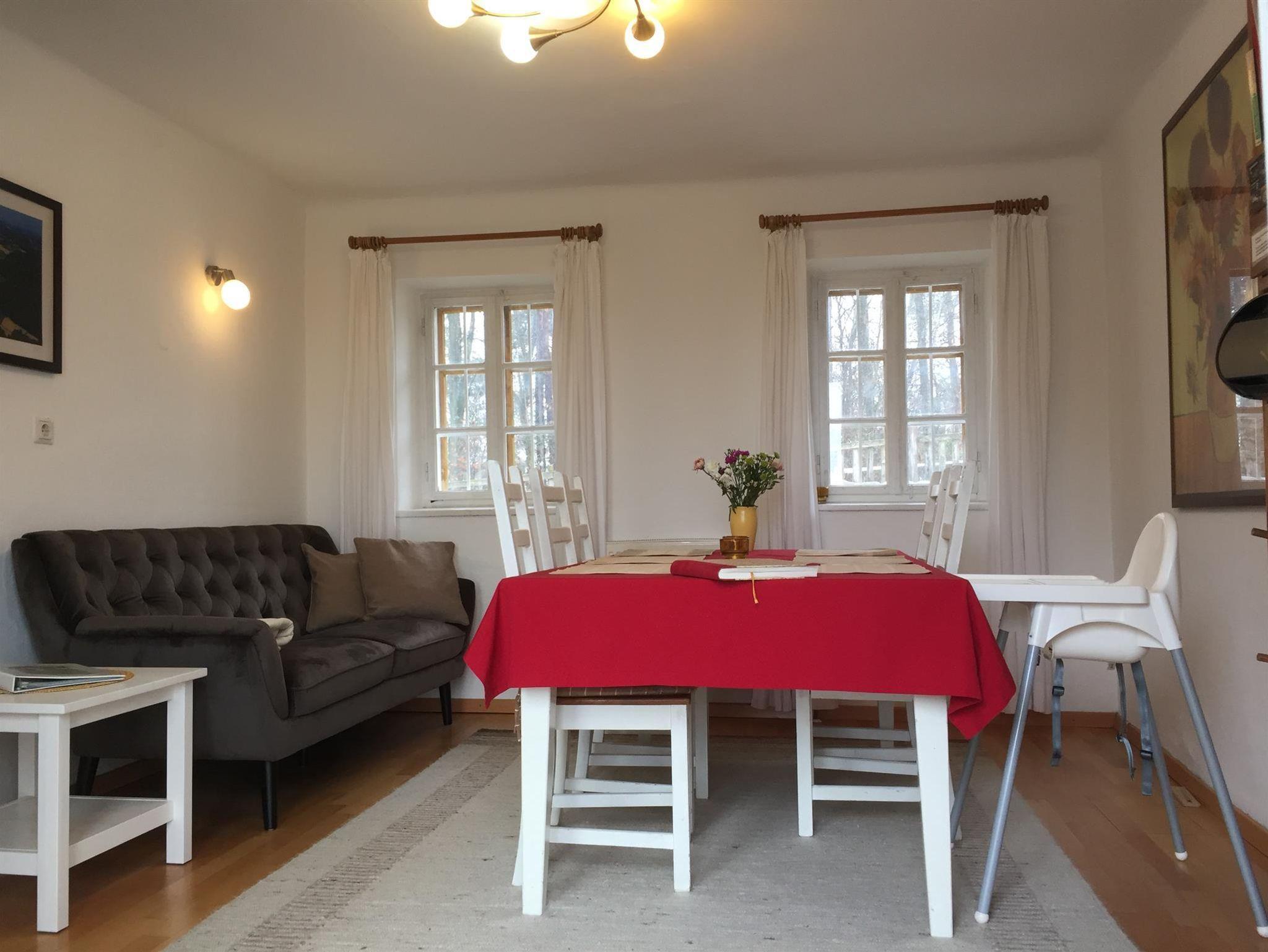 Tischtennistisch (mit Schläger und Bällen), große überdachte Sandkiste, Hängematten, Kinderpool (ca. 3m Meter Durchmesser), Feuerstelle samt Brennholz, Kräuter vom eigenen Garten.
