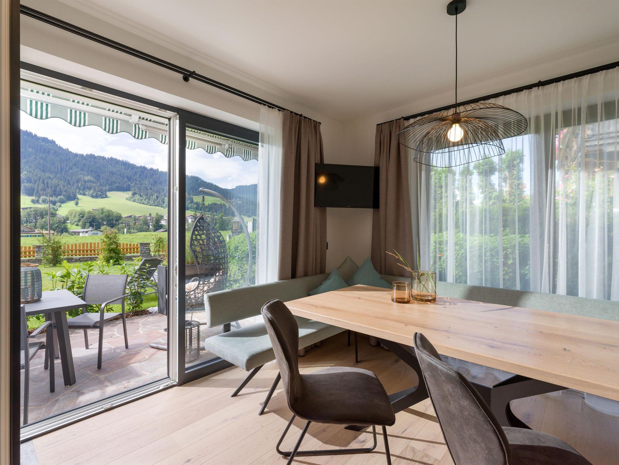 Hier, auf der Sonnenseite Goings am Fuße des Wilden Kaisers, wird deine Auszeit vom Alltag zu jeder Jahreszeit zu einem unvergesslichen Erlebnis. Genieße die Tiroler Gemütlichkeit auf höchstem Niveau: In neun unterschiedlichen und perfekt ausgestatteten Ferienwohnungen, die keine Wünsche mehr offenlassen. Neben viel Ruhe und Sonne empfängt dich jedes unserer Appartements mit einer wunderschönen Aussicht auf die umliegende Bergwelt, die du am besten von deinem Balkon oder deiner Terrasse aus genießen kannst.