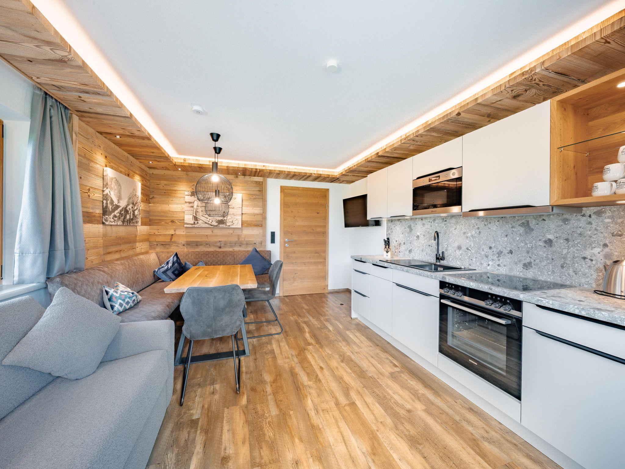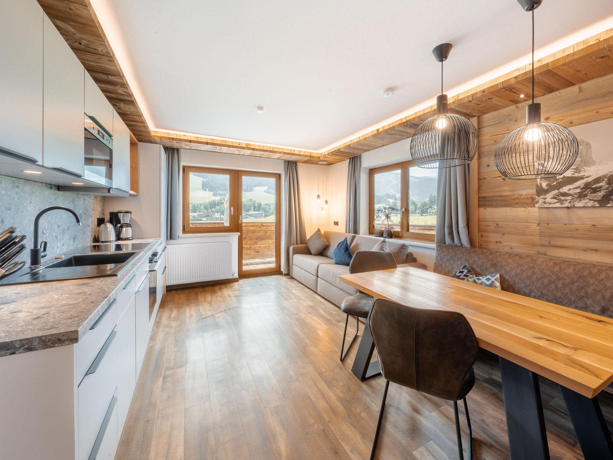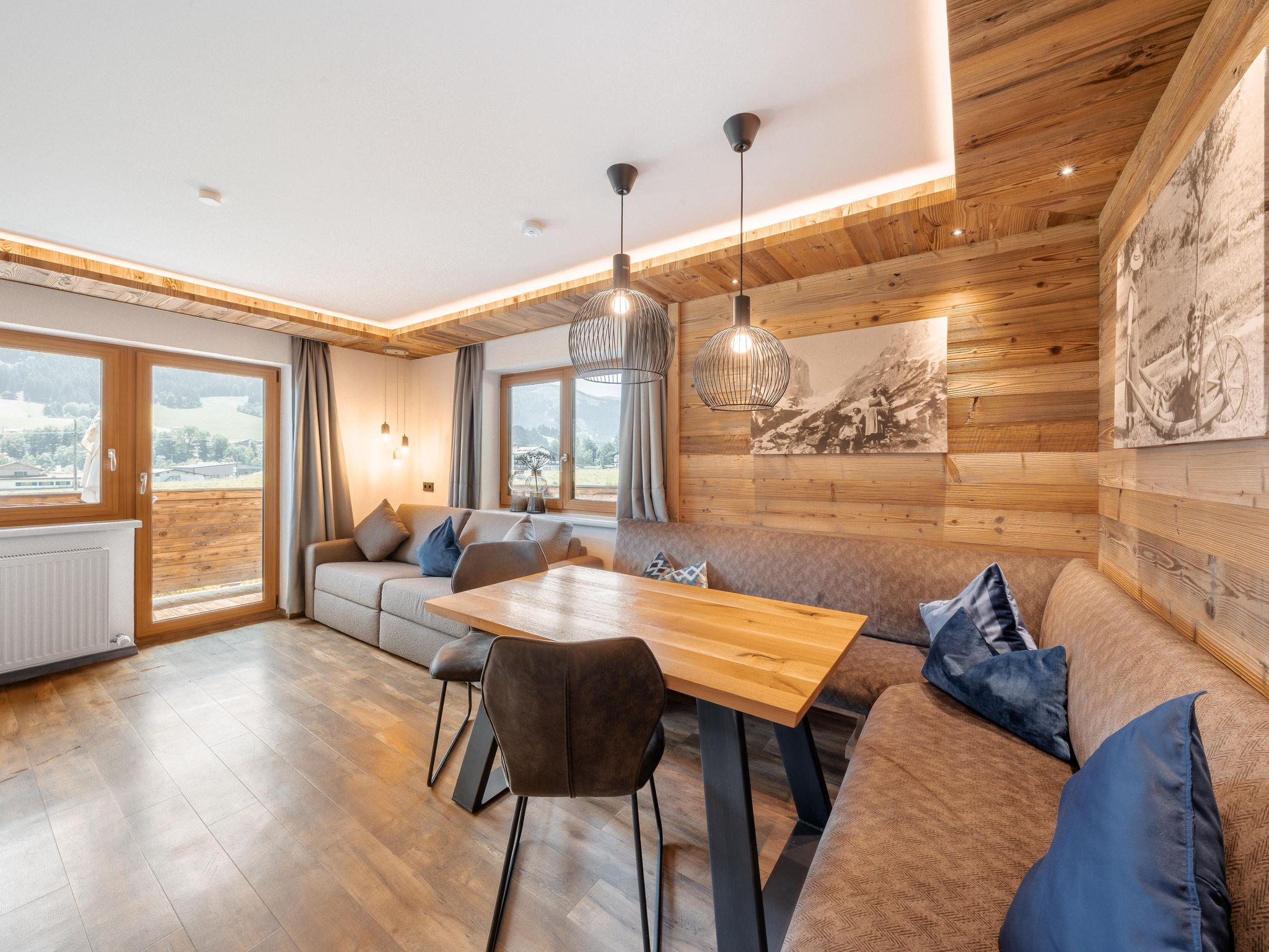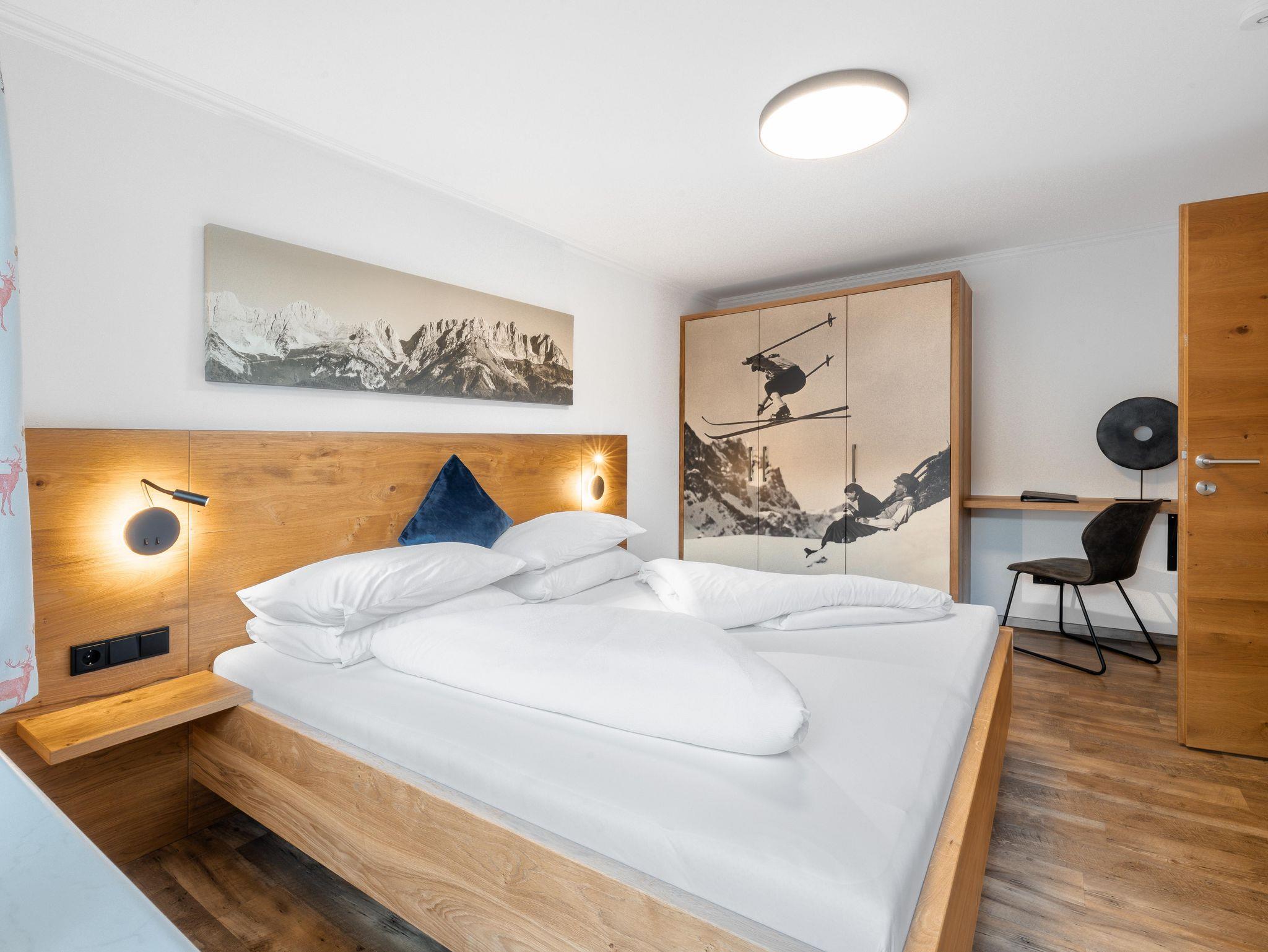 Das Appartement Hoamatgfühl mit 45m² bietet Platz für bis zu 4 Personen und verfügt über ein Schlafzimmer, Wohn-/Essbereich mit ausziehbarer Doppelcouch und eine voll ausgestattete Küche + Filterkaffeemaschine und Kapselmaschine. Weiters enthält die Wohnung ein Badezimmer mit Dusche, WC und Föhn. Vom Balkon aus genießen sie die wunderschöne Aussicht auf den Astberg und den Hartkaiser.
