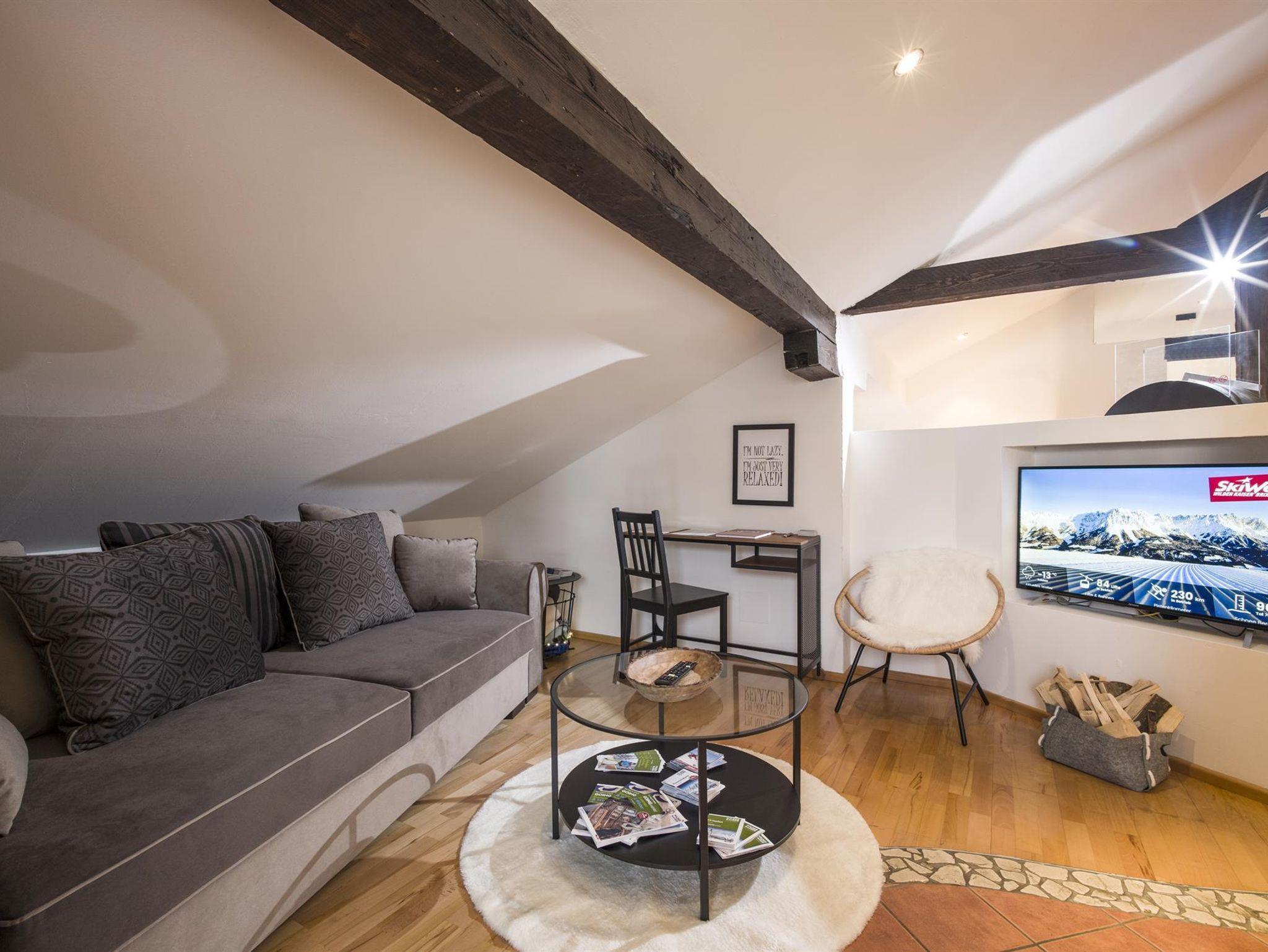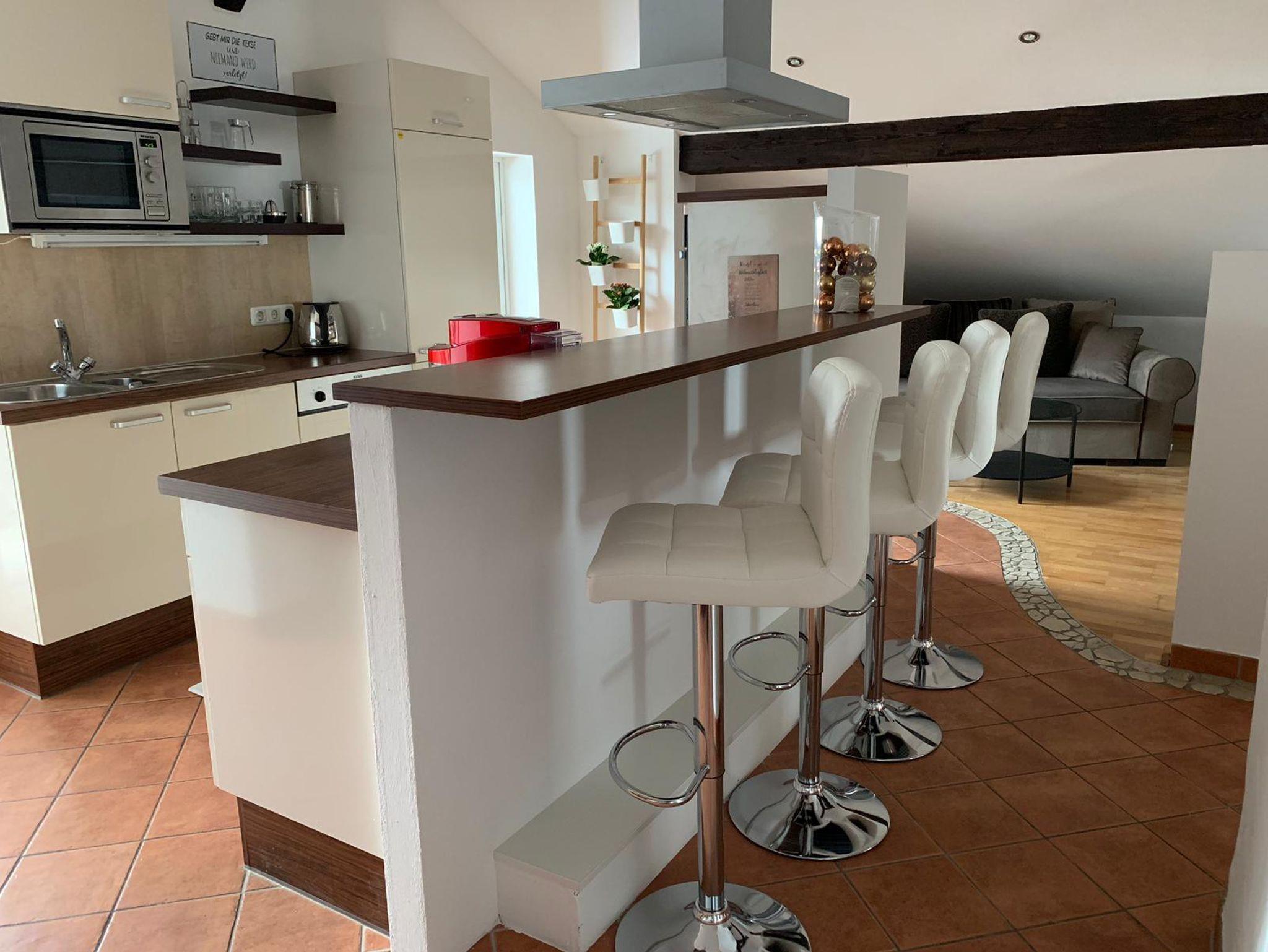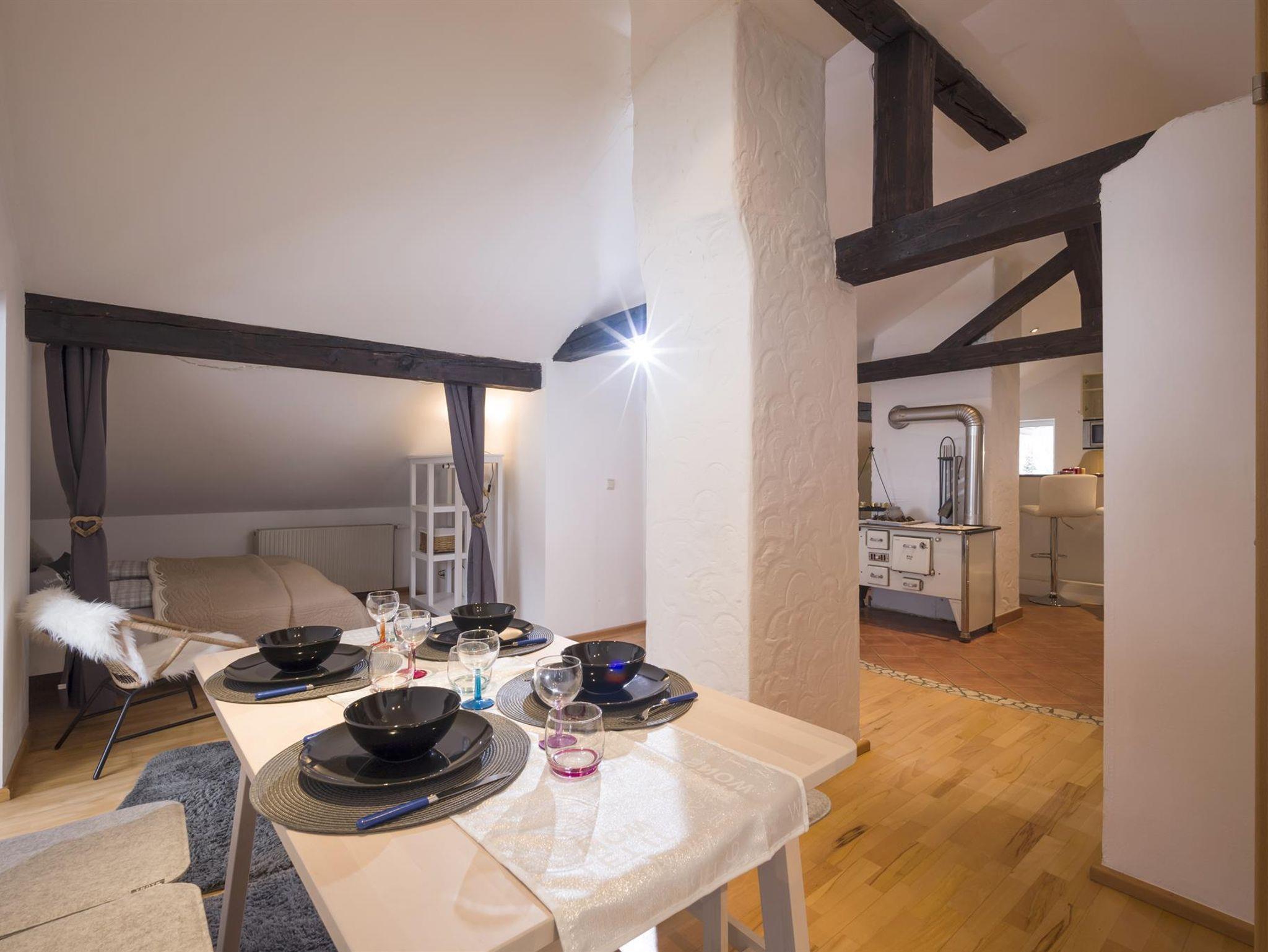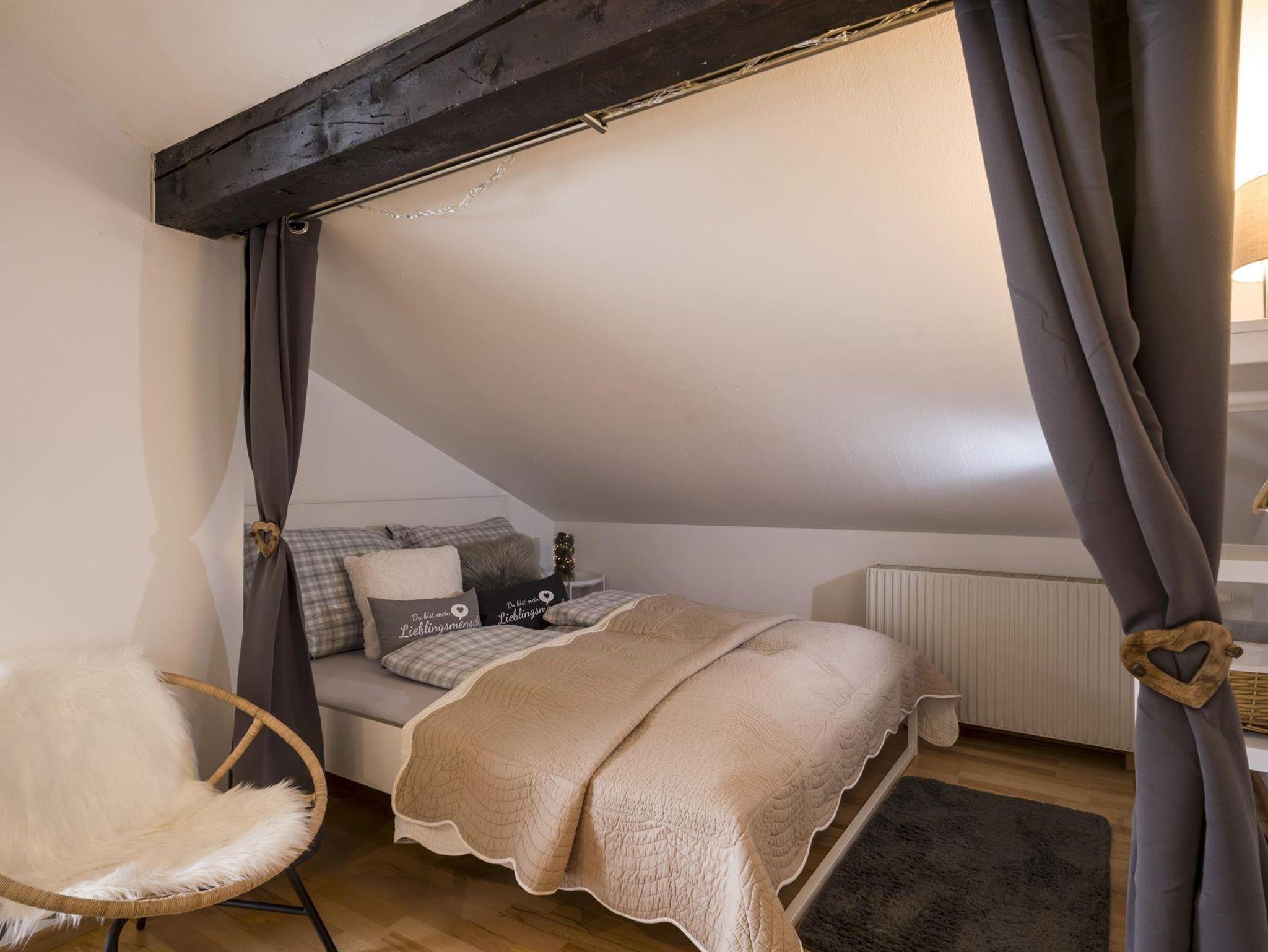 Unser Apartement Alpenloft mit 85m² bietet Platz für bis zu 6 Personen und ist ausgestattet mit einem Schlafzimmer, Wohnraum und zusätzliches Doppelbett (durch Vorhand vom Wohnbereich abgetrennt). Das Loft verfügt über einer voll eingerichteten Küche und ein Badezimmer mit Badewanne. Vom Balkon aus genießen Sied die Aussicht auf die umliegende Bergwelt.