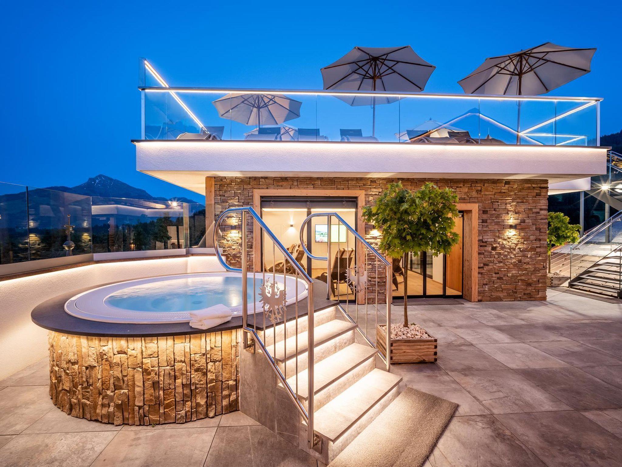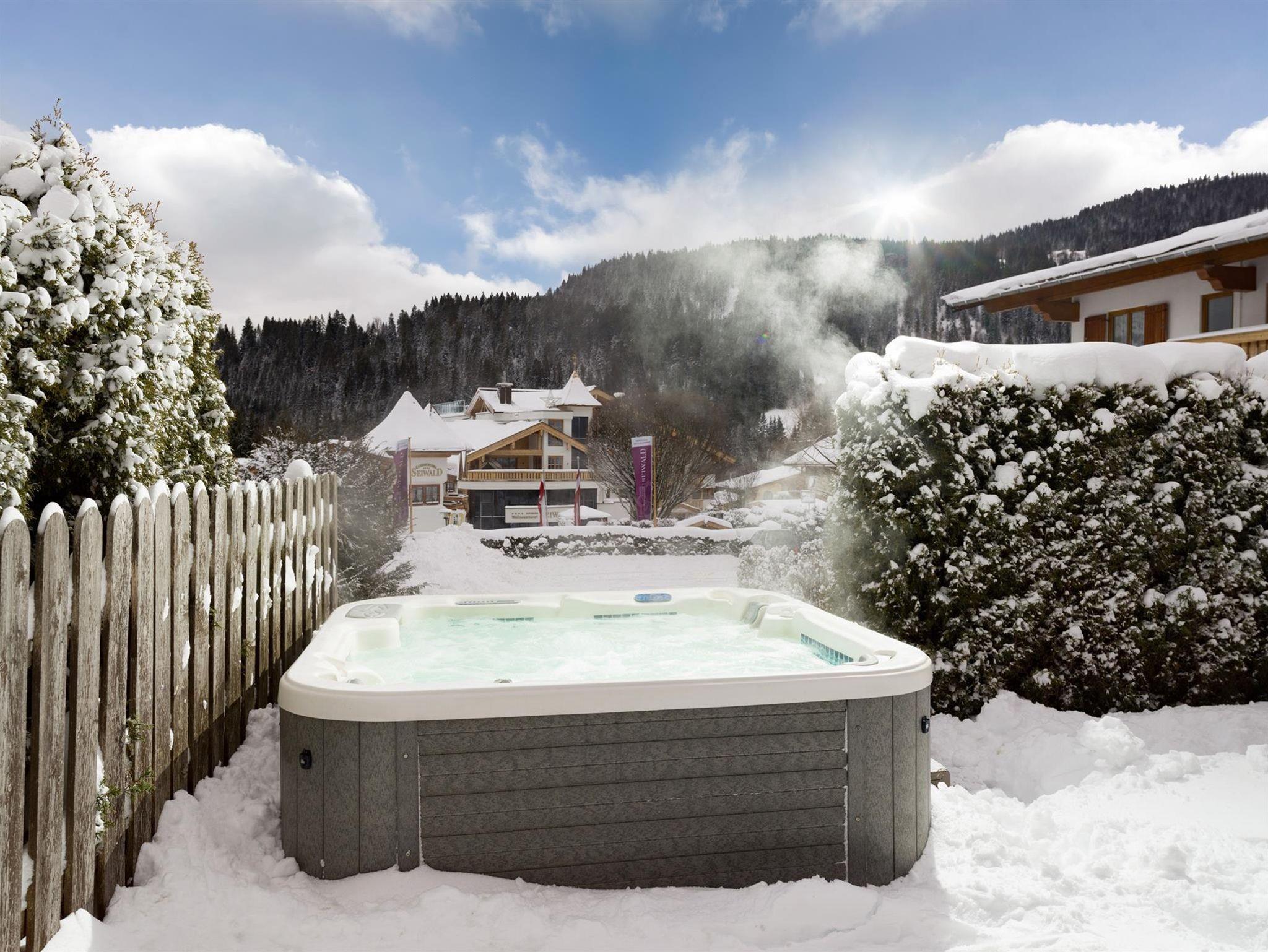 Herzlich willkommen im Familien-Wellnessresort Seiwald! Die Hotelanlage liegt sonnig und ruhig, in bester Lage von Going, 200m oberhalb vom Hotel Stanglwirt im Ortsteil Prama. In unserem familiär geführten Hotel, dem Kaiserschlöss'l und dem gegenüberliegendem Chalethotel können mehr als 100 Gäste unvergessliche Urlaubstage erleben. 10 Gehminuten ins Ortszentrum. Der kostenlose Skibus hält direkt am Hotel. Der berühmte Goinger Badesee, eine Reithalle, der Eislaufplatz und die Langlaufloipen sind vom Hotel in nur 5 Gehminuten erreichbar. Bei Schönwetter lädt der beheizte Außenpool zum Verweilen ein. Sollte Petrus mal streiken können Sie unser großes Erlebnis-Hallenbad genießen. Auf über 2.000 m² Wellnessbereich erwarten sie das Hallenbad mit Whirlpool, Sprudelbank und Luftsprudel, umgeben von einem sagenhaftem Bergbauerndorf mit Mühlrad mit Blick auf Going. Weiters ein großes Saunadorf mit türkischem Dampfbad, Sauna-Schwitzstube, Tepidarium, Solegrotte, Kneippstrasse in den Ötzikäteraum im Felsen, Infrarot-Wärmekabine sowie eine Schönheitsfarm mit Massage und Kosmetik.