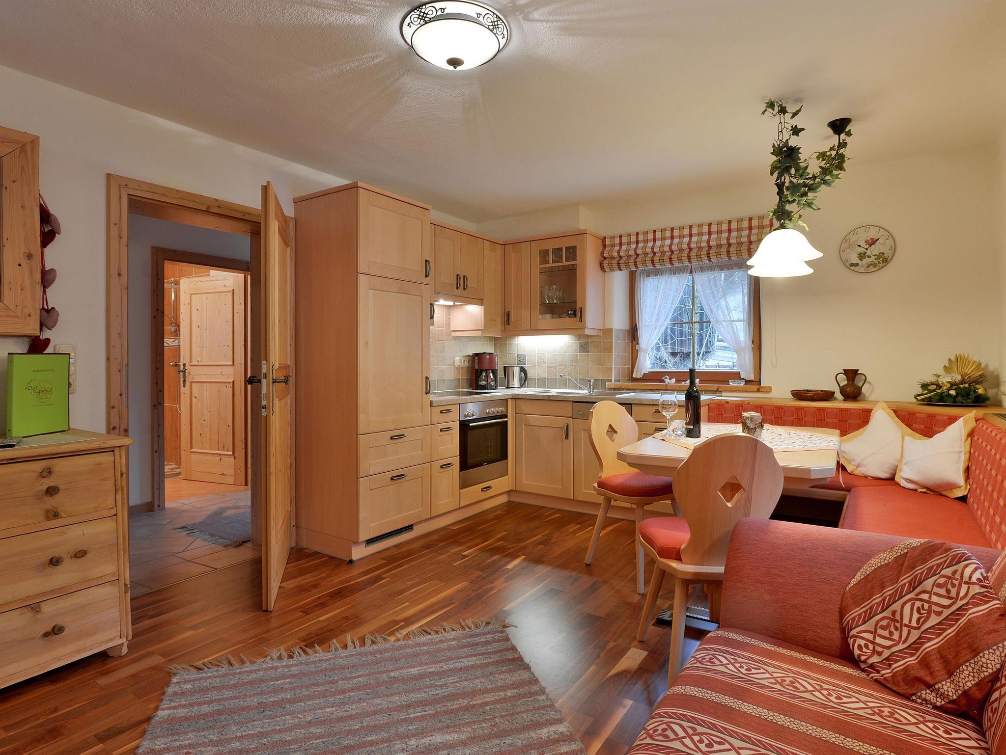 Direkt neben unserem Haupthaus haben wir ein eigenes Apartmenthäuschen errichtet. Zwei Apartments mit jeweils einem eigenen Eingang. Die Apartments haben wir liebevoll im Landhausstill einrichten. Unsere Apartments verfügen alle über einen Breitband - Internetanschluss ( gegen Gebühr ) In unserem Brennerhäusl können wir ( Aufgrund der Fußböden ) leider keine Hunde unterbringen. Apartment Ackerlspitze liegt im Dachgeschoss mit Blick Richtung Norden zum Wilden Kaiser. Ausstattung: 1 Schlafzimmer, 1 Wohnschlafzimmer mit einer Doppelschlafcouch, Fernseher, Sitzecke und Küche, großzügiges Badezimmer mit Dachgaube. Das Apartment verfügt über einen eigenen Balkon in Richtung Wilden Kaiser. Ausstattung Küche: Kühlschrank, Elektroherd mit Backofen, Dunstabzug, Spülmaschine, Kaffeemaschine, Wasserkocher, Eierkocher, Geschirr, Geschirrspüler Ausstattung Bad: Handtücher, Handtuchtrockner, Haarföhn, Dusche, WC Sonstige Ausstattung: Bettwäsche, Salzkristall-Leuchten fürs Raumklima, Staubsauger, Bodenwischer,