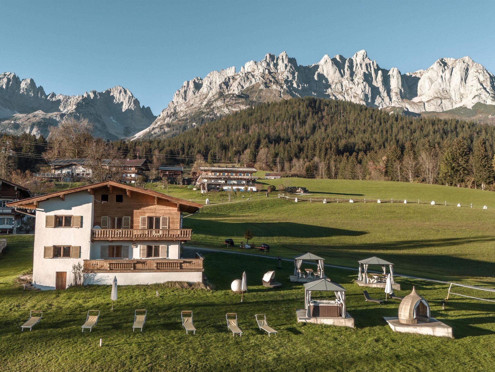 Das Appartement Weitblick thront in idyllischer Alleinlage auf einem Sonnenplateau oberhalb des Goinger Badesees – ein Ort der Stille und Entspannung, an dem Sie die ungestörte Ruhe der Bergwelt in vollen Zügen genießen können. Umgeben von majestätischen Gipfeln erwartet Sie ein Panorama, das im Norden vom Wilden Kaiser, im Süden vom Kitzbüheler Horn und im Osten von den Steinbergen eingerahmt wird – ein traumhafter Rückzugsort, der die Natur in ihrer reinsten Form erlebbar macht.