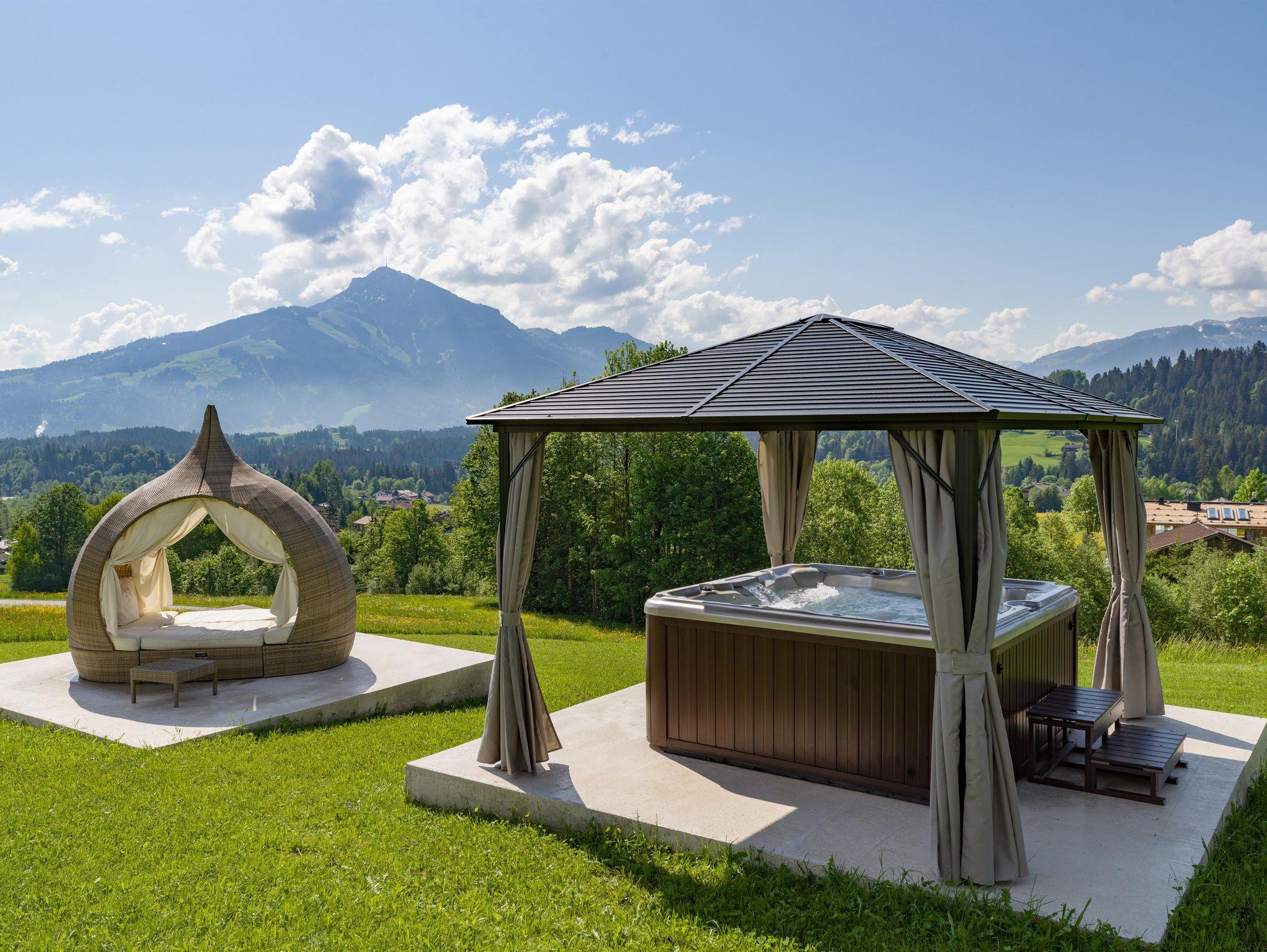 Für vollkommene Entspannung sorgt der ganzjährig kostenfrei nutzbare Whirlpool auf der weitläufigen Wellnesswiese. Nach einem aktiven Tag auf den Pisten oder den Wanderwegen ist das warme, sprudelnde Wasser – im Winter wie im Sommer – der ideale Ort zum Durchatmen, die Muskeln zu lockern und die umliegende Berglandschaft zu bewundern. In den Pavillons und auf den bequemen Liegen können Sie die Sonne genießen und die wohltuende Stille erleben, während die Kleinsten auf dem großzügigen Areal mit Fußball- und Volleyballfeldern sowie weiteren Spielgeräten nach Herzenslust toben können.
