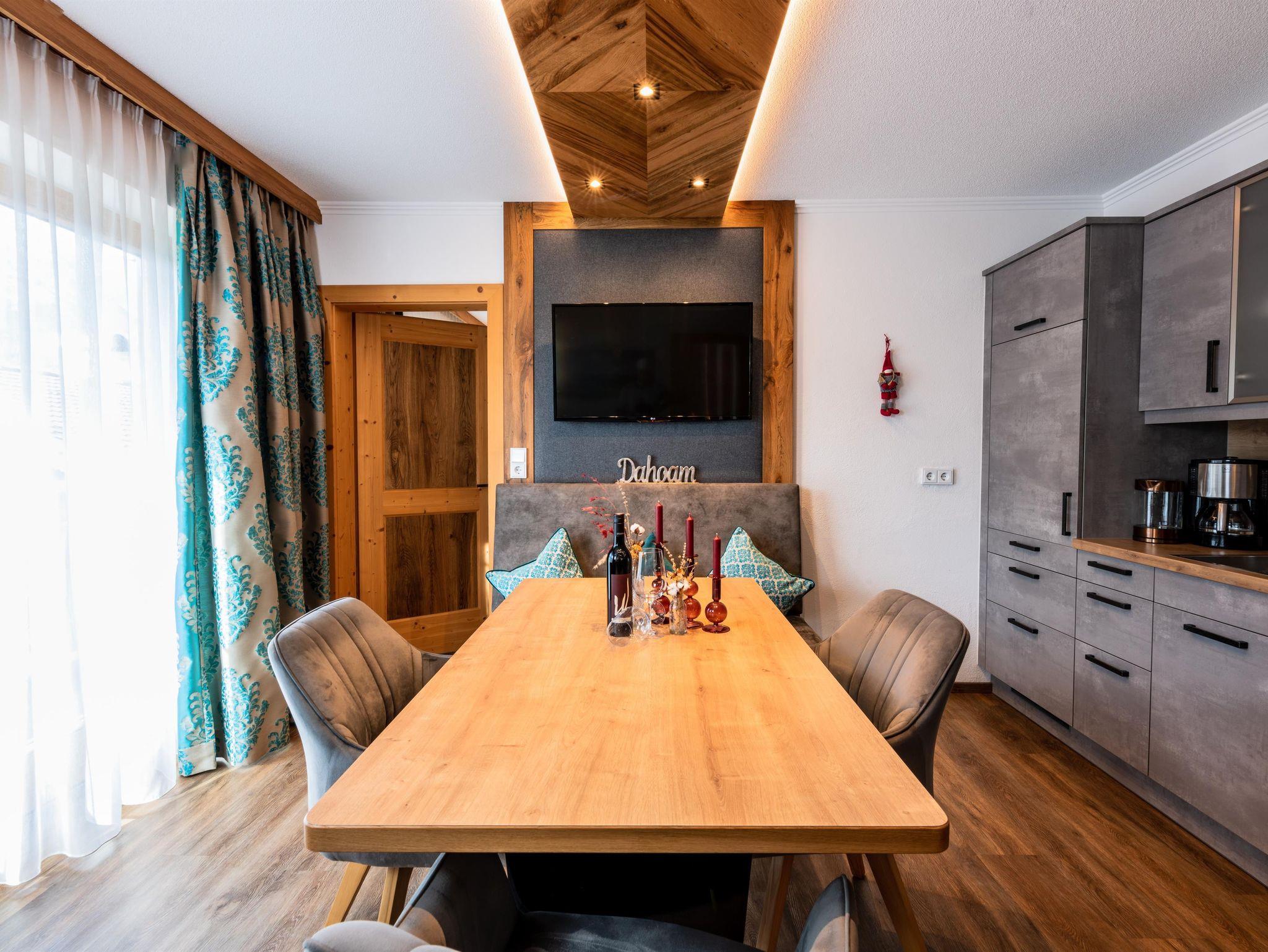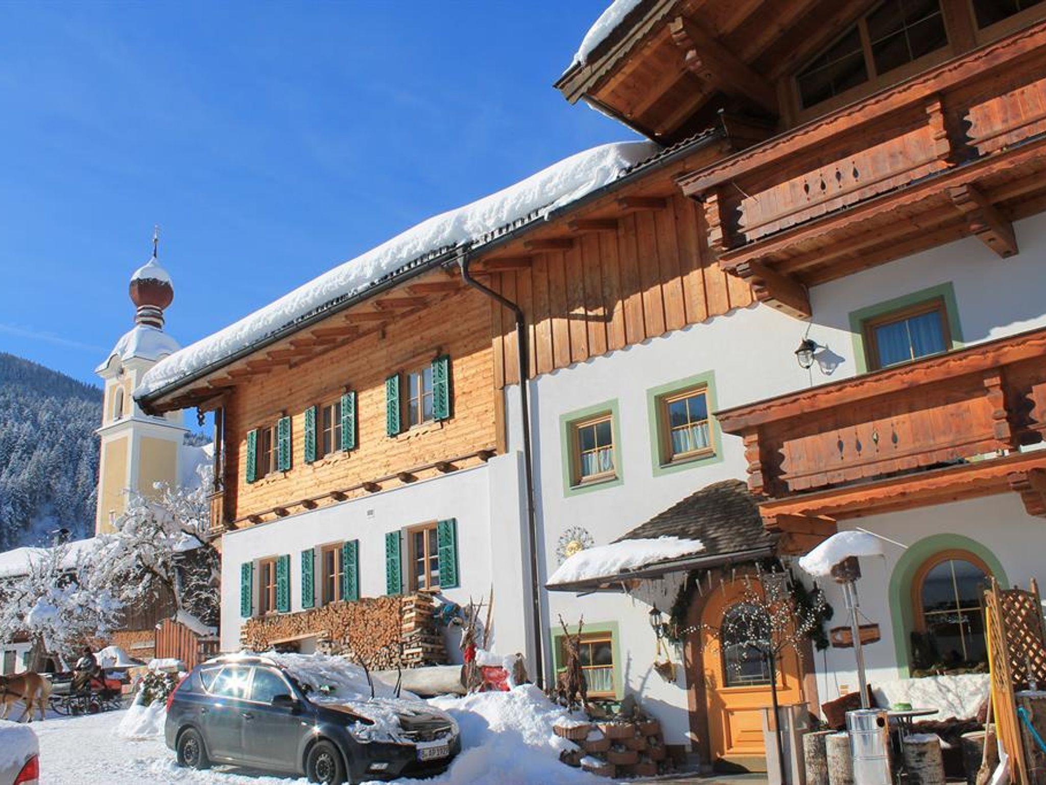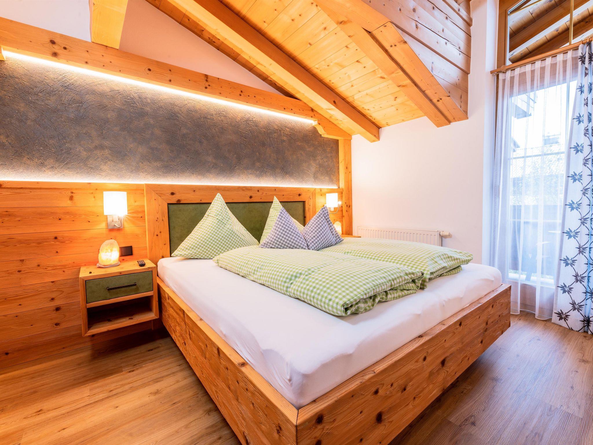 Das Apartment befindet sich im 1. Stock und ist im Tiroler Landhaus Stil eingerichtet. Vom großen umlaufenden möblierten Balkon aus, blicken Sie auf die umliegende wild romantische Bergwelt. Das Apartment bietet Ihnen ein gemütliches Schlafzimmer, einen Wohn- Schlafraum mit Kachelofen und voll ausgestatteter Küche, einem separatem Tageslicht Badezimmer. Von der Wohnküche aus haben Sie einen wunderschönen Blick auf den Wilden Kaiser.