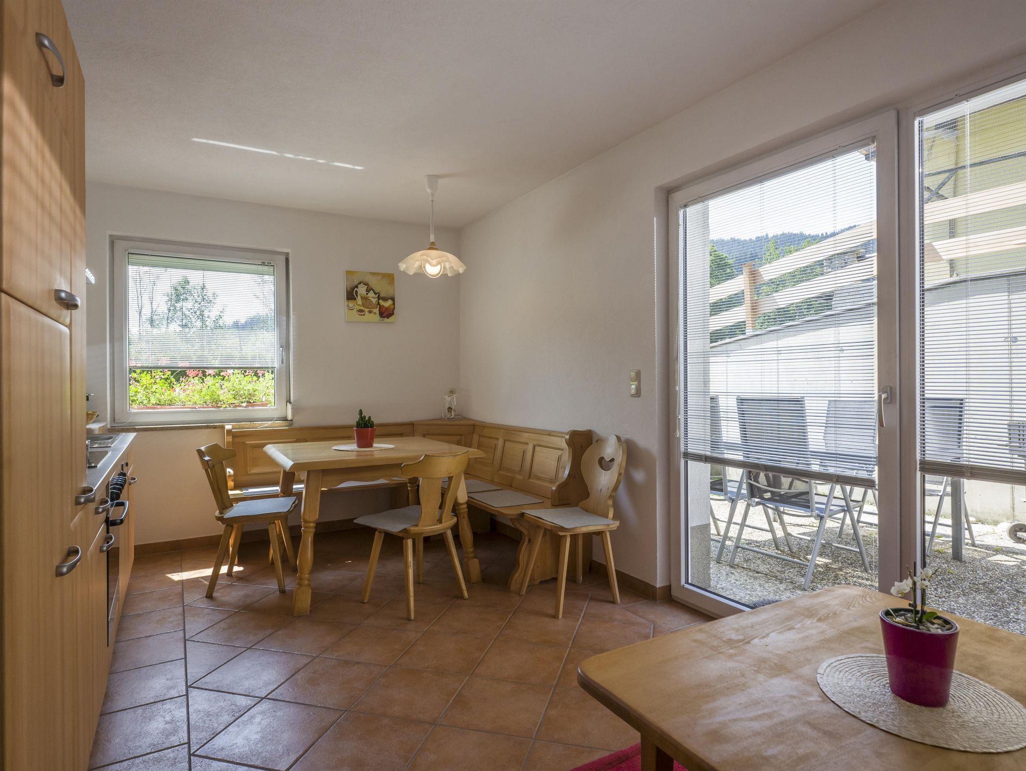 Unsere Ferienwohnung Karakas - gemütlich, groß und einladend! Sie bietet Platz für bis zu 9 Personen und verfügt über 3 sehr geräumige Schlafzimmer mit Doppelbetten und einer komplett eingerichteten Küche. In einem der Schlafzimmer befindet sich eine Doppelschlafcouch und ein zusätzliches Bett. Ebenso ist die Wohnung mit einem großen Badezimmer ausgestattet. Von der eigenen Terrasse, die zum Verweilen einlädt, genießt man den Ausblick auf den Wilden Kaiser und das Kitzbüheler Horn.