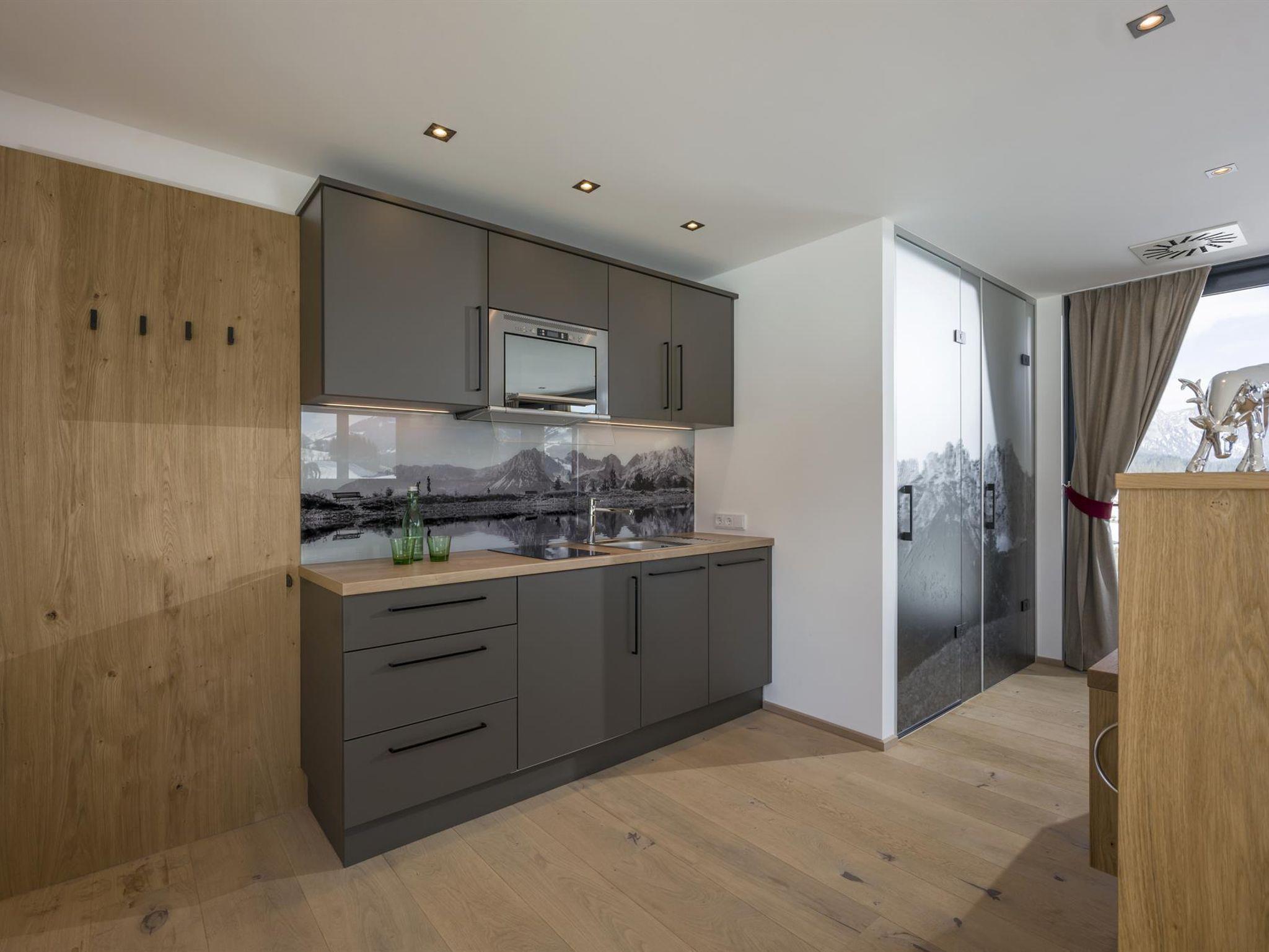Unsere Penthousesuite ist 40 m² groß und verfügt 1 Schlafzimmer mit Eichenholzboden, Dusche und separetes WC, SAT-TV, Kochnische mit Kühlschrank, Haarföhn, Safe, Telefon, gemütliche Sitzecke, Balkon, einzigartigen Rundumblick auf die gesamte Bergwelt.