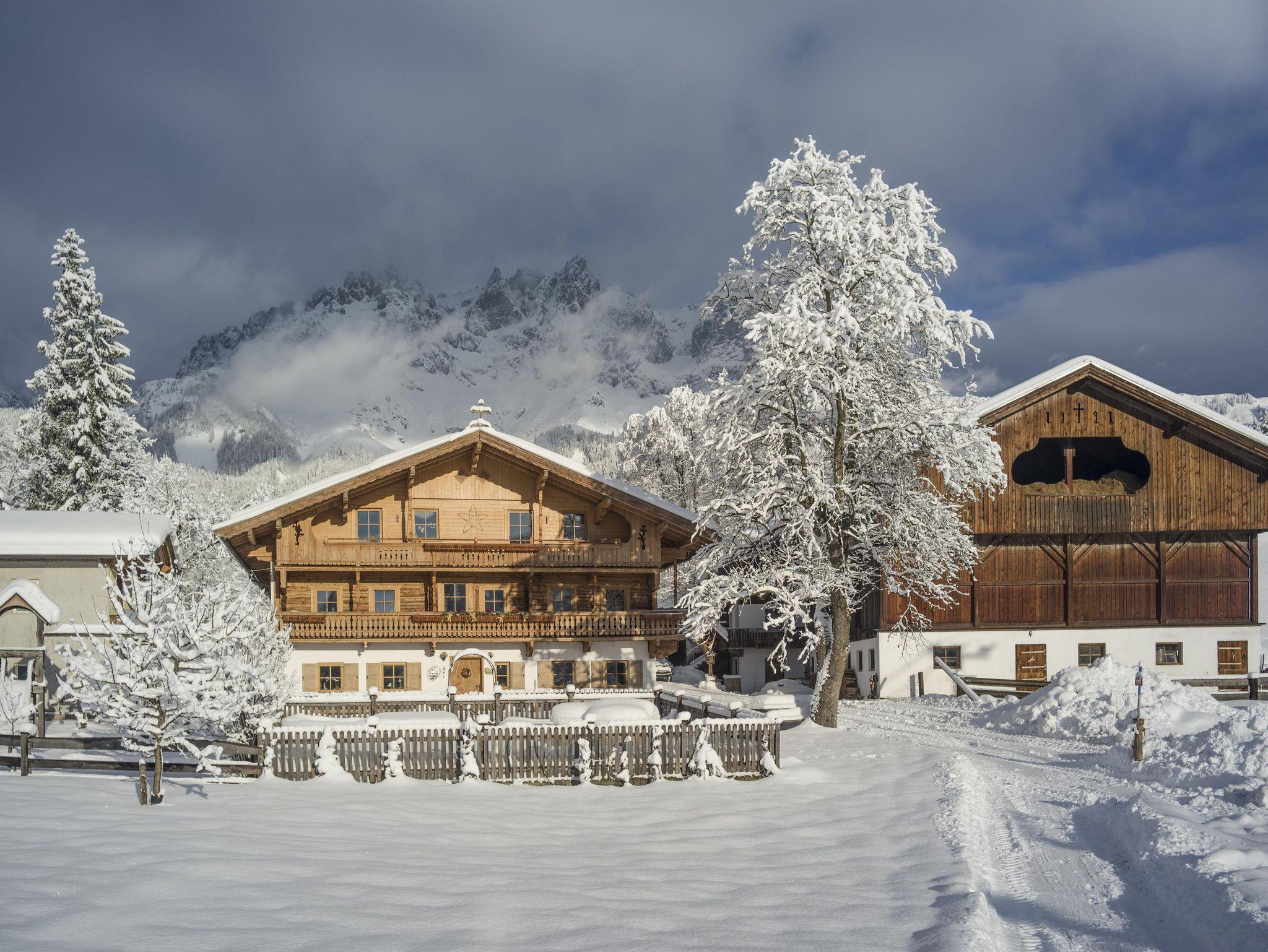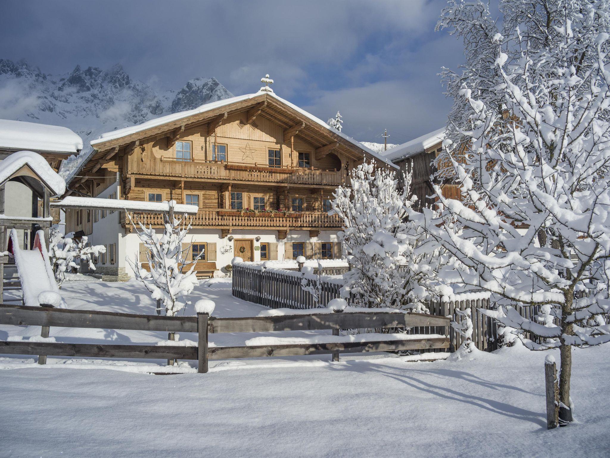Unser Bauernhof liegt in sonniger Lage am Fuße des Wilden Kaisers.