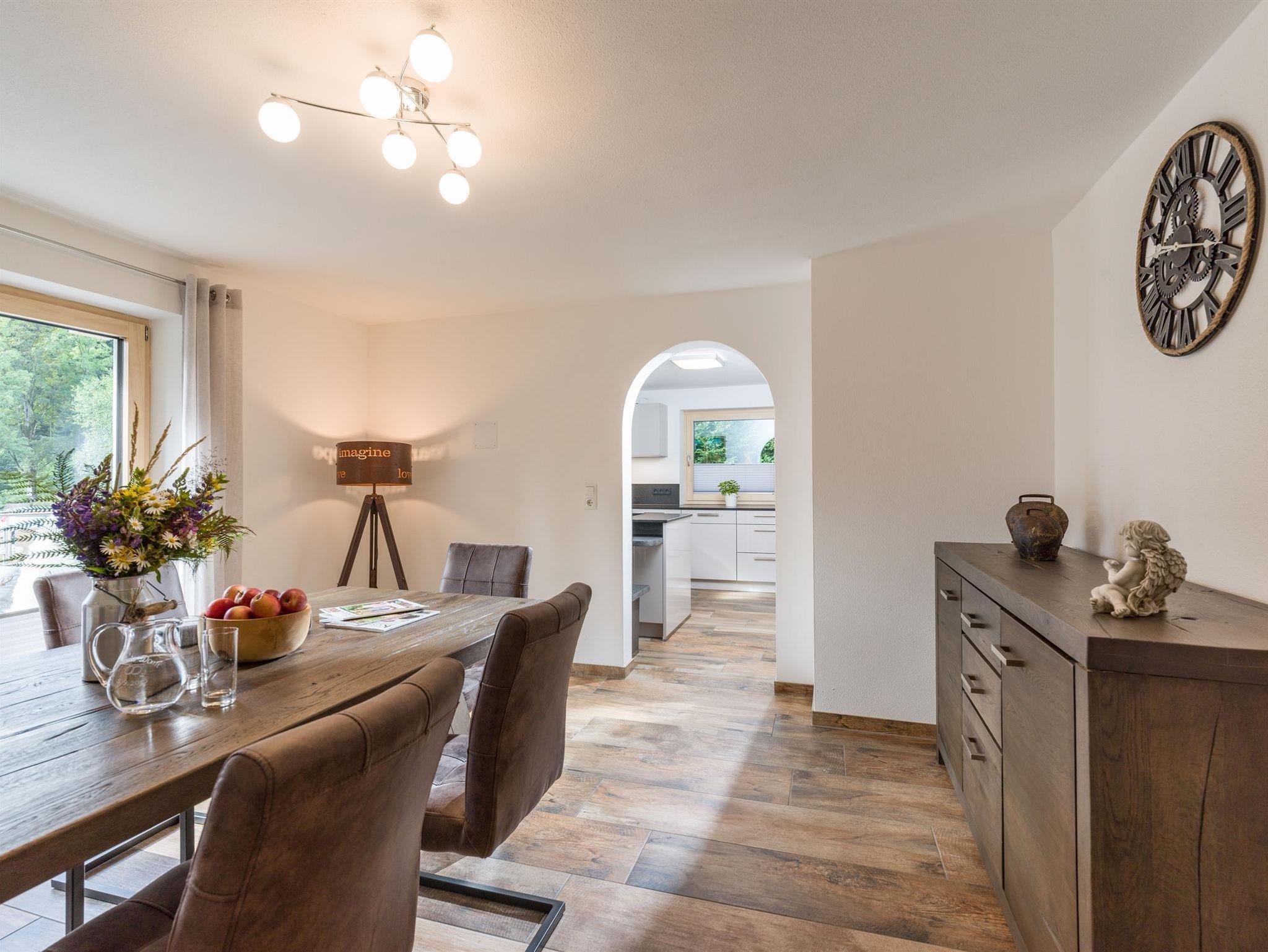 Das liebevoll eingerichtete Ferienhaus, liegt ca.1 km vom Dorfzentrum entfernt. In unserem Nichtraucher-Haus stehen Ihnen 3 Schlafzimmer, inklusive Bettwäsche und 2 Duschen mit Handtüchern, sowie 3 Toiletten, eine komplett ausgestattete Küche mit Geschirrspüler,Kaffeemaschine,Mikrowelle, und einem größzügigen Wohn und Essbereich, stehen Ihnen ebenso zur Verfügung. Garten, 2 Balkone. Die Betten bestehen aus 3 Zusatzbetten, 1 Schlafcouch und 3 Doppelbetten. Im Winter liegt der kostenfreie Skibus nur 50m vom Haus entfernt. Parkplätze und eine Garage ist direkt vorm Haus, gratis WLAN,TV.