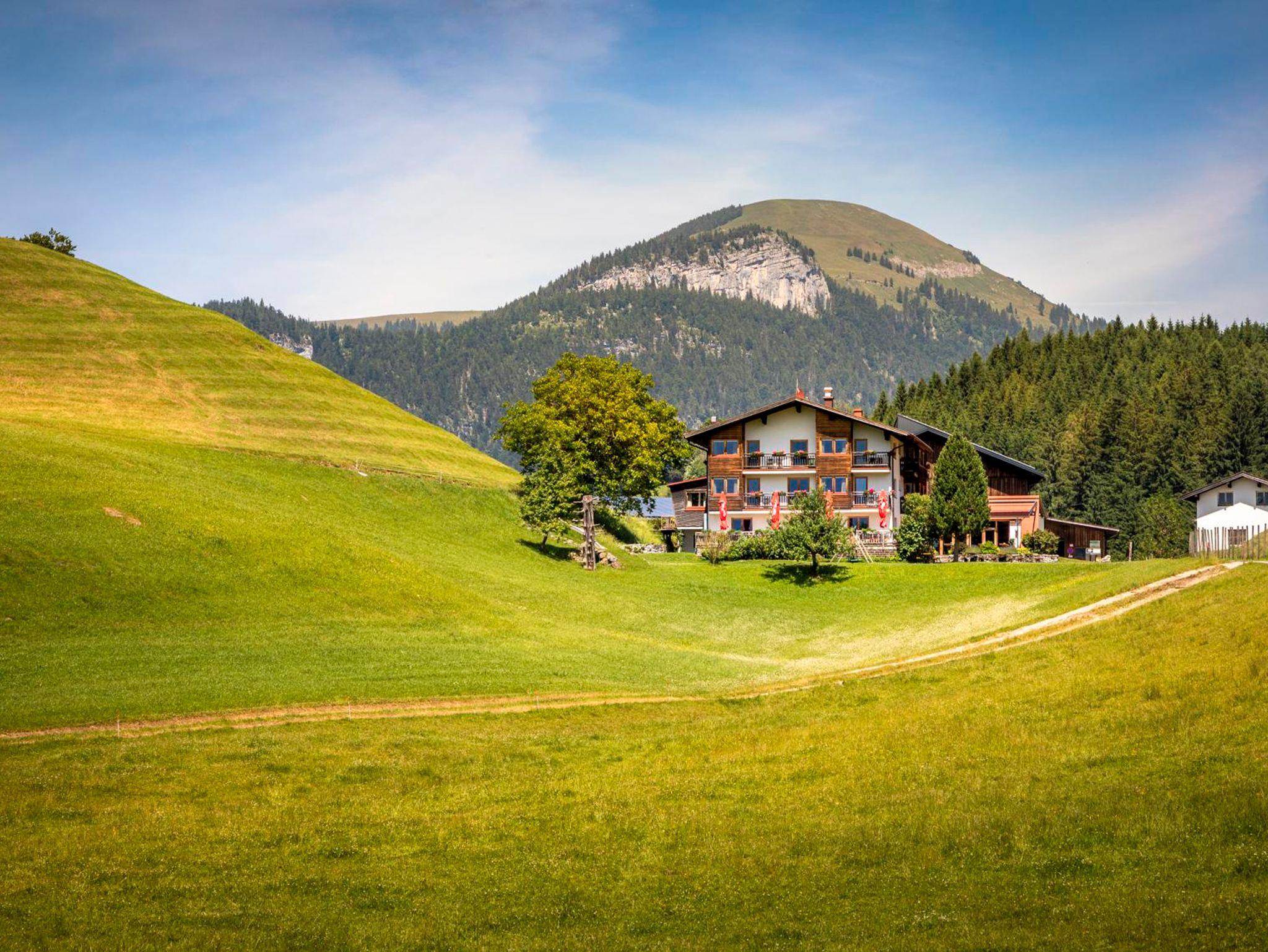 Seehöhe: 960 m Willkommen am Bio-Bauernhof Bachrain Ein ruhiges Platzl zur Erholung? Trotzdem unternehmungslustig? Unser Bauernhof bietet Ihrer Familie viele Erlebnisse! In ruhiger Einzellage auf der Sonnenterasse von Moosegg sind wir Ausgangspunkt fuer Wanderer und Mountainbiker - ca. 7 km vom Dorf entfernt. Im Winter kleiner Schilift und Langlaufloipe direkt vor dem Haus. Von Salzburg 30 km, von Hallein 15 km entfernt! Mitarbeit am biologisch geführten Hof - eigene Produkte schon am Frühstuecksbuffet. In unserem Restaurant bieten wir Ihnen Damwildspezialitaeten aus eigenem Gehege und Vollwerthausmannskost.