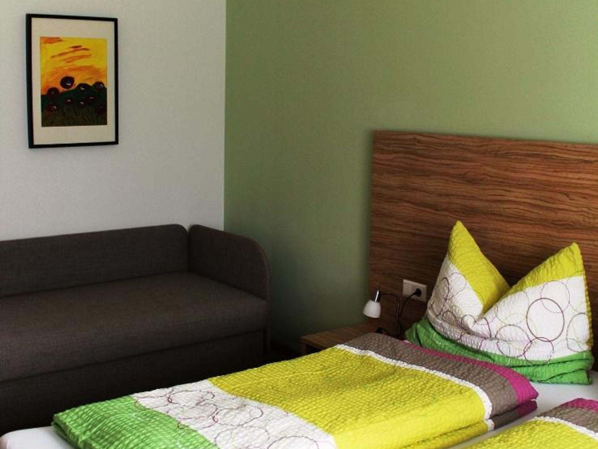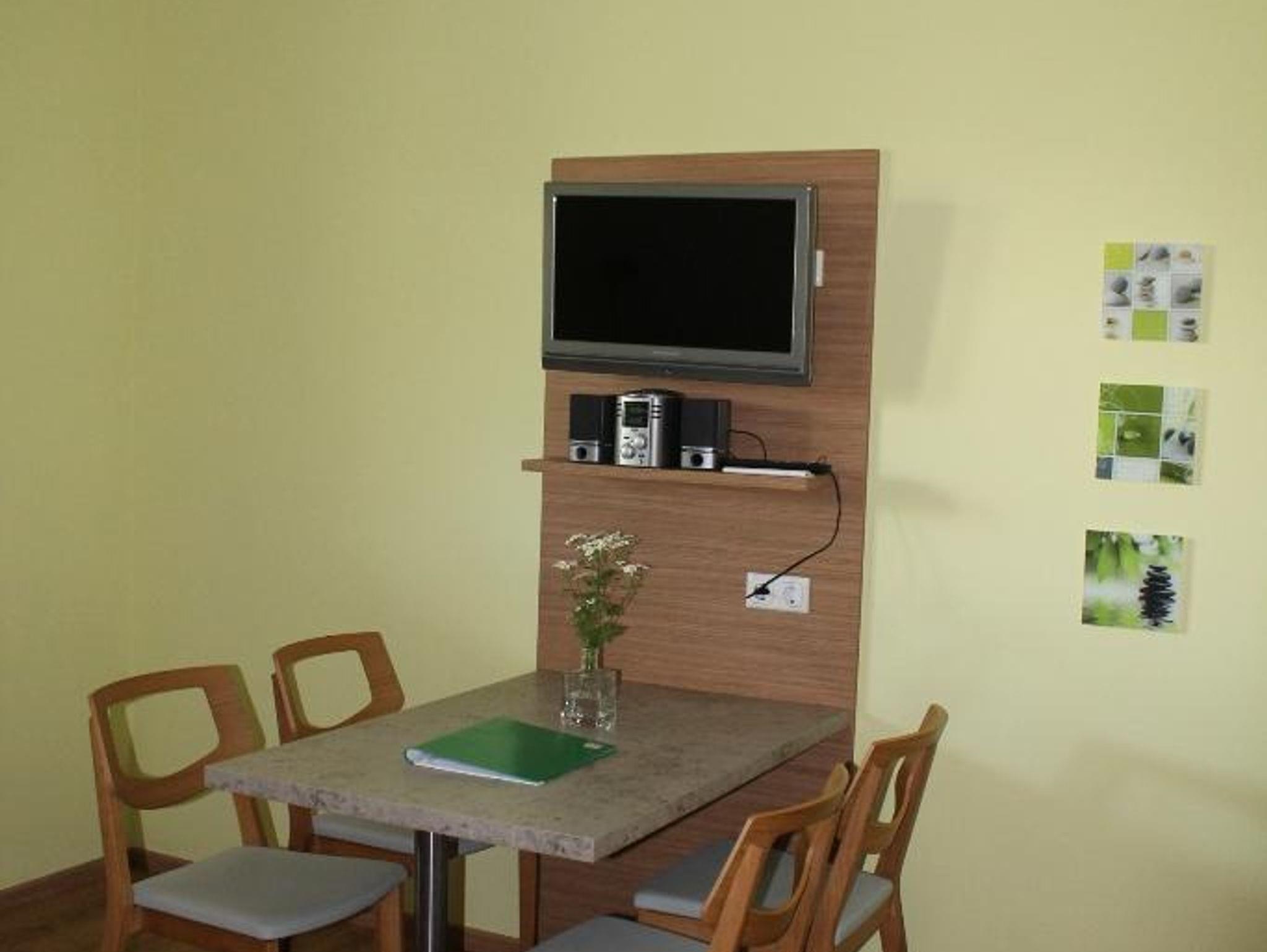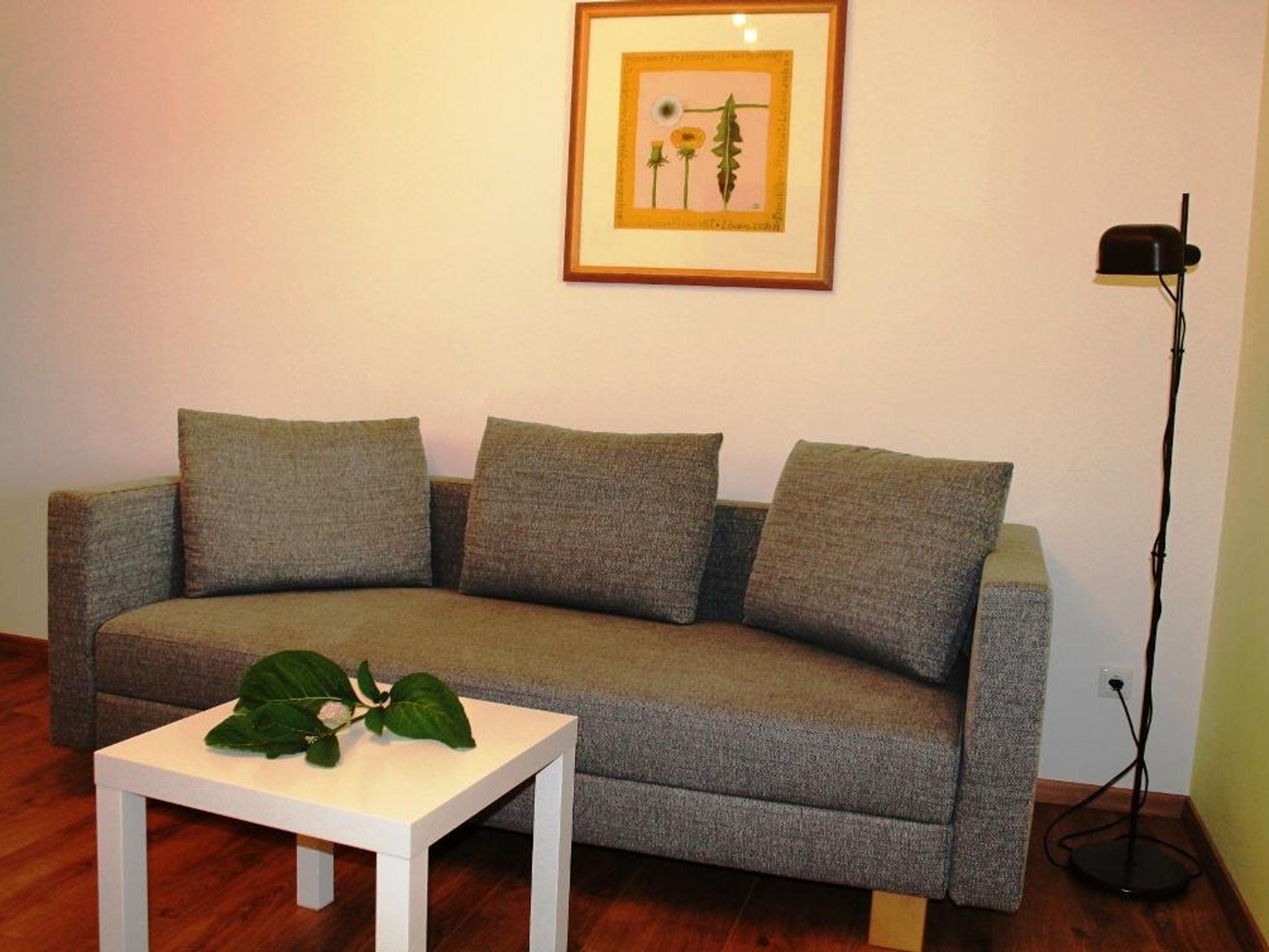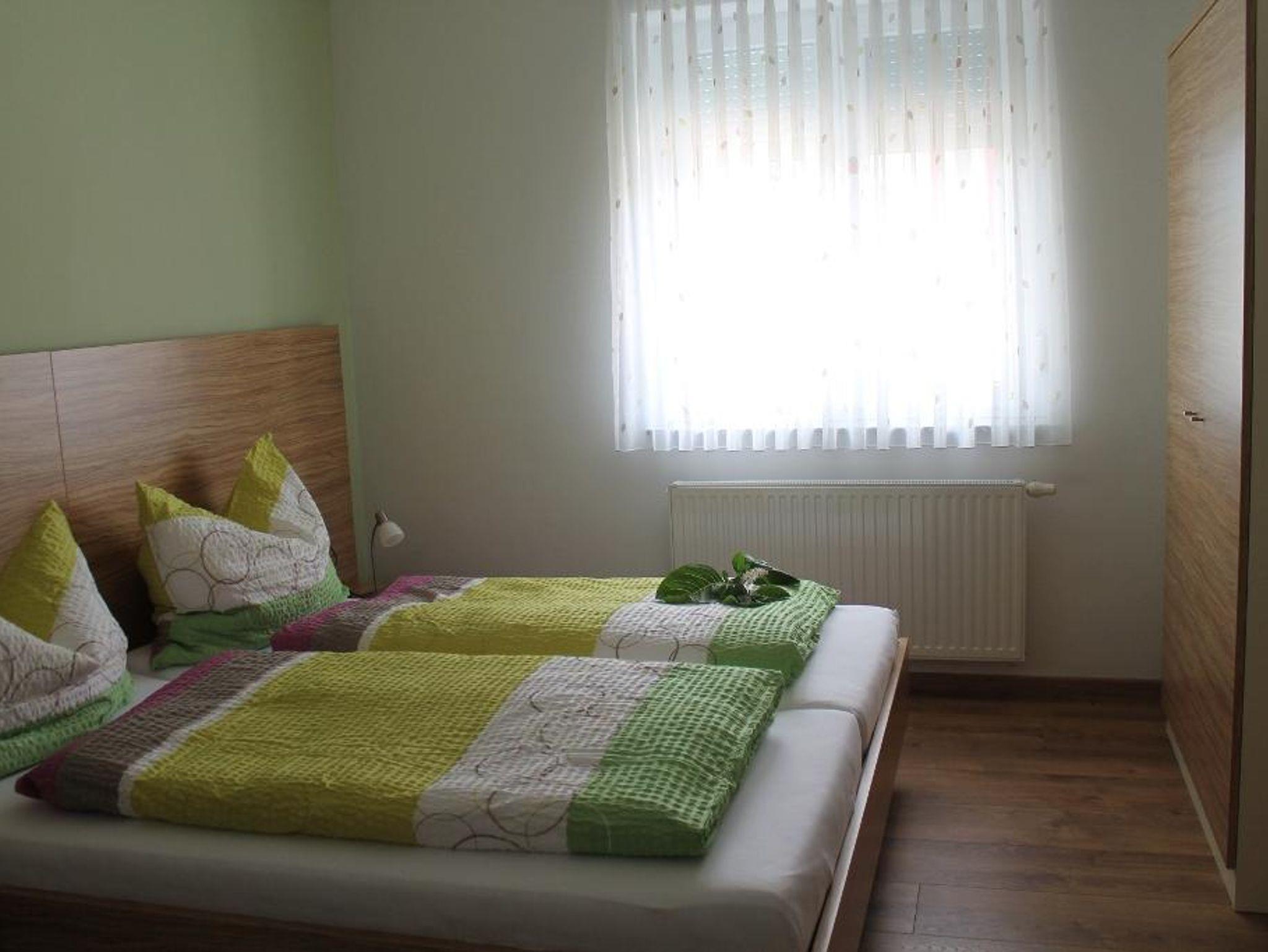 Ferienwohnung mit 1 Schlafzimmer mit Doppelbett und Joka-Einzelsofa, komplett eingerichtete Küche, das Sofa im Wohnraum kann auch als Einzelbett umfunktioniert werden, SAT-TV, Dusche, WC, überdachte Terasse mit Sitzgelegenheit, ruhige Lage, Parkmöglichkeit vor dem Haus. Wir freuen uns auf Ihren Besuch.