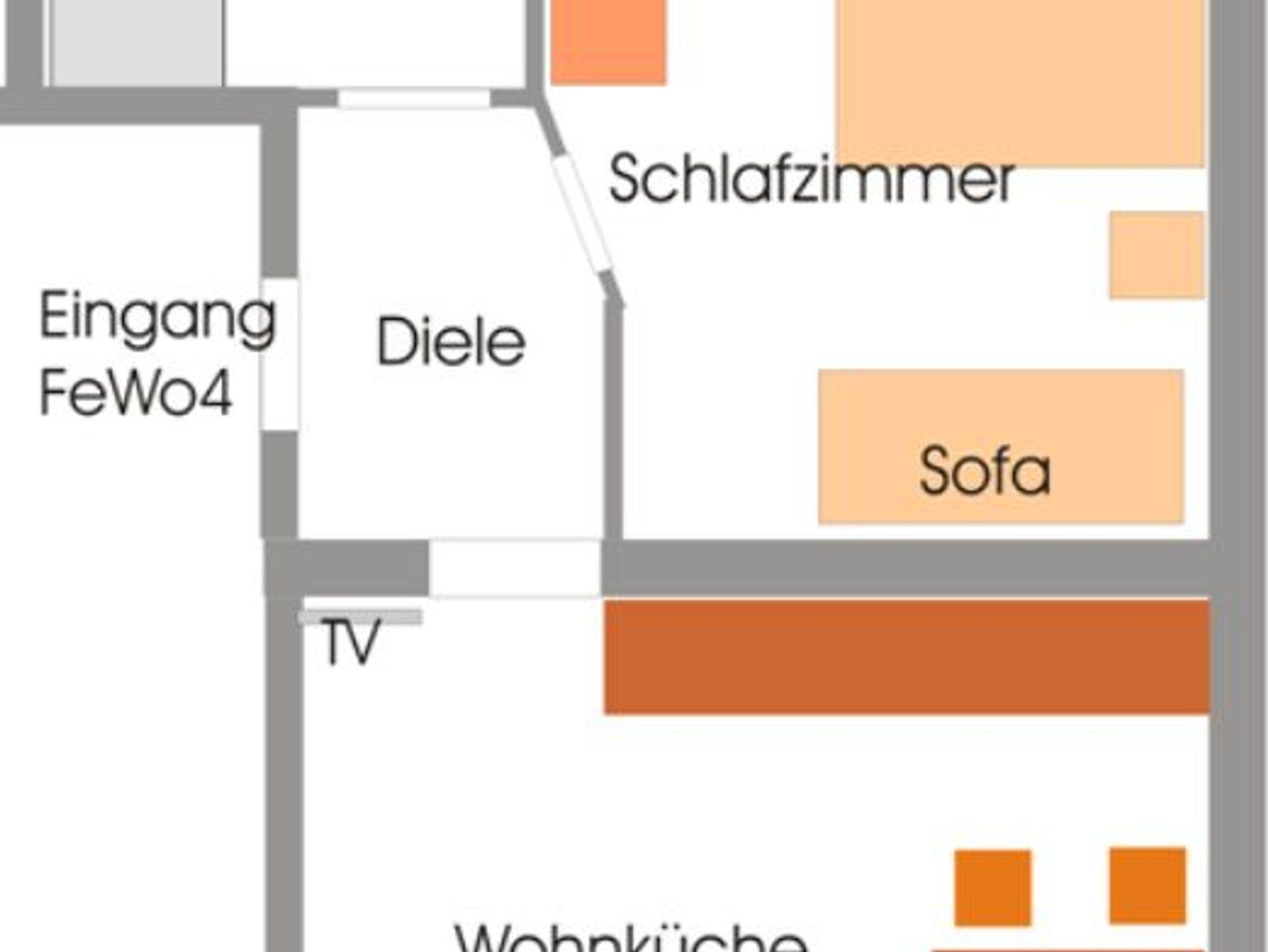 Ferienwohnung mit 1 Schlafzimmer mit Doppelbett und Joka-Einzelsofa, komplett eingerichtete Küche incl. Geschirrspüler, das Sofa im Wohnraum kann auch als Einzelbett umfunktioniert werden, SAT-TV, Dusche, WC, überdachte Terasse mit Sitzgelegenheit, ruhige Lage, Parkmöglichkeit vor dem Haus. Wir freuen uns auf Ihren Besuch.