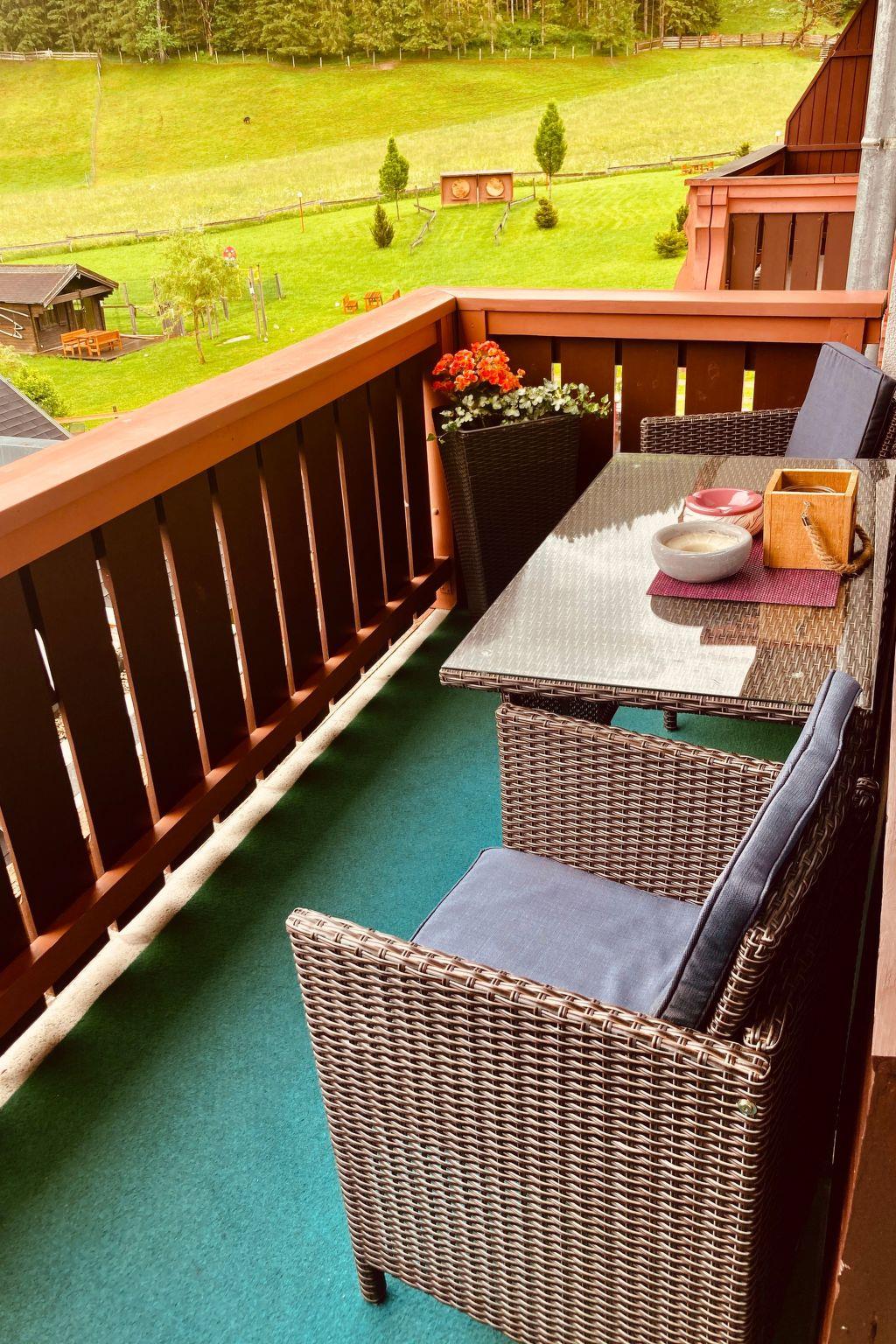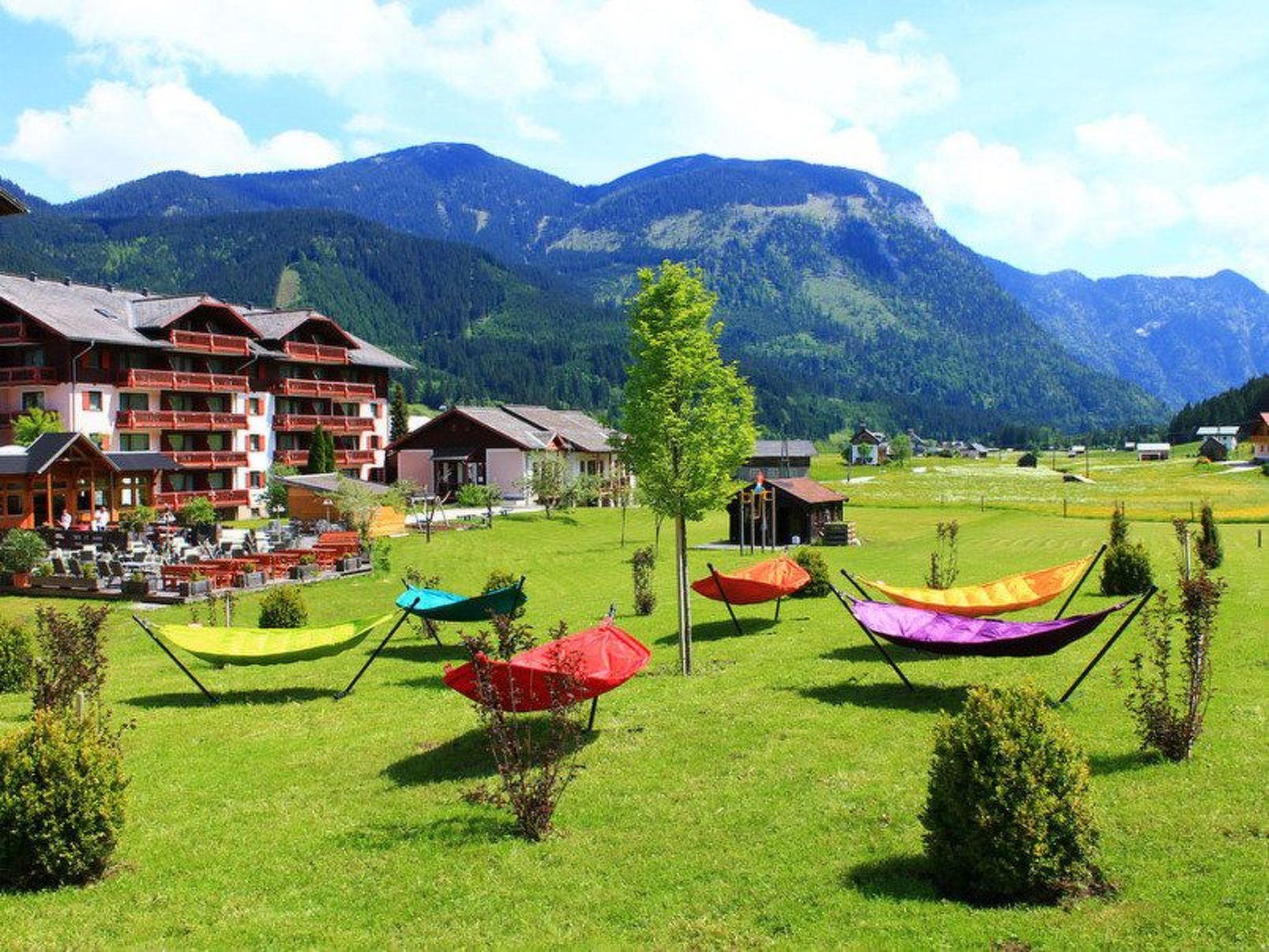Spacious sun terrace surrounded by greenery. In the summer months there is a children's zoo in the garden and a large children's playground. In winter you can access the cross-country ski trail directly in front of the house. The ski bus also takes you directly from the flat to the Dachstein West ski area in 3 minutes.