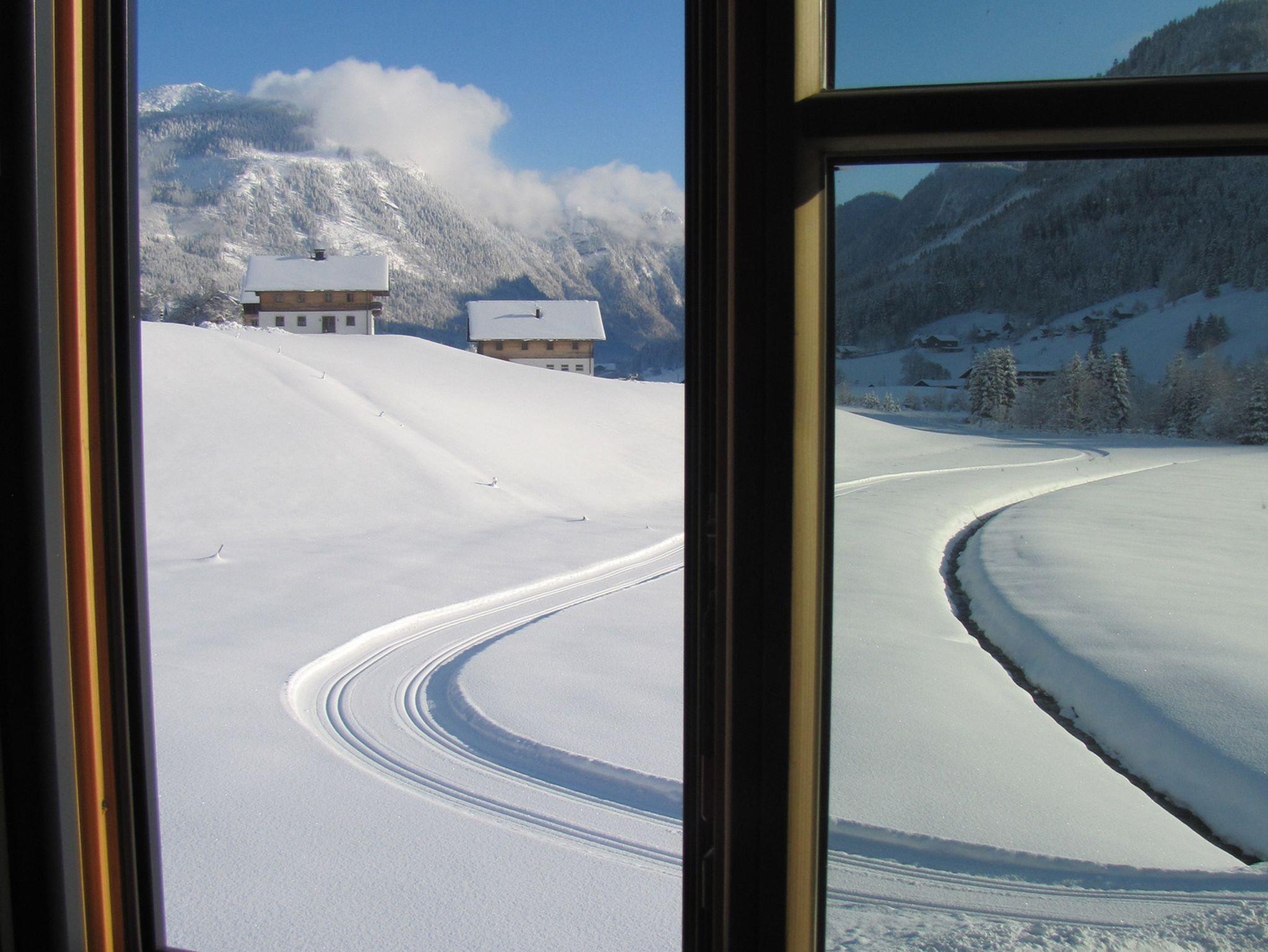 Im Winter führt die präparierte Langlaufloipe direkt an unserem Haus vorbei,