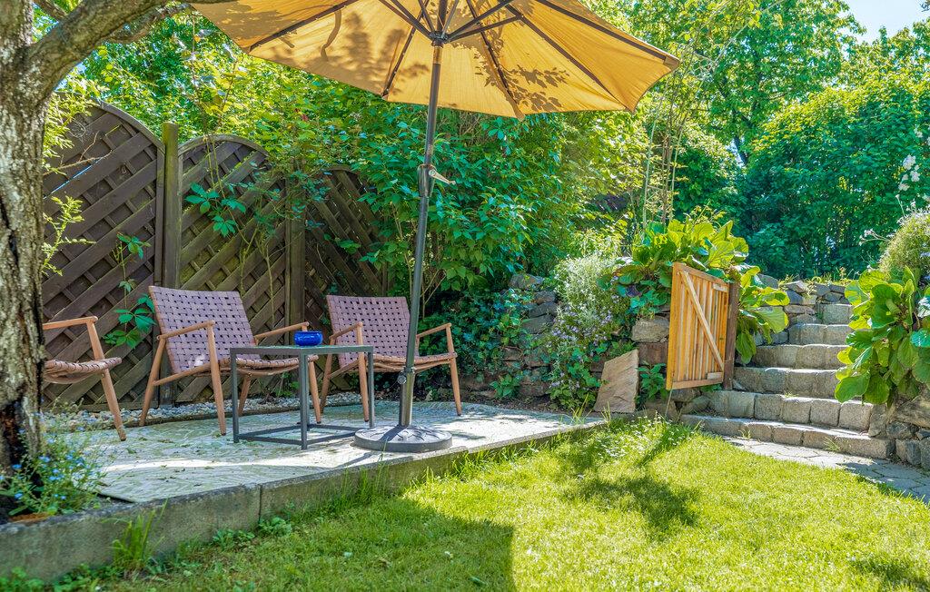 Begynd dagen i haven, hvor I kan nyde en god kop kaffe og lade jer solen bage jer godt igennem, inden I snupper en dukkert i poolen, der deles med de andre gæster.
