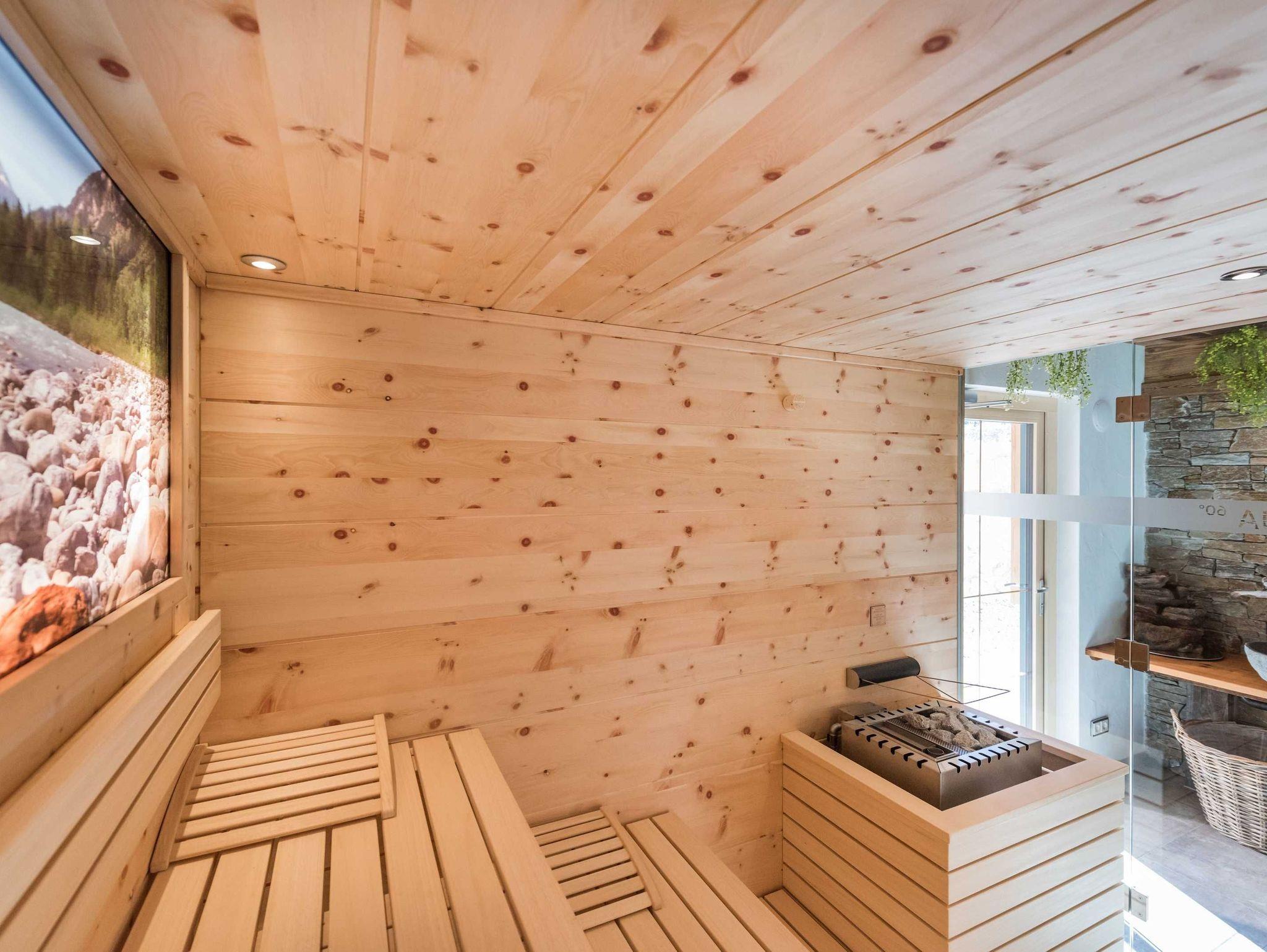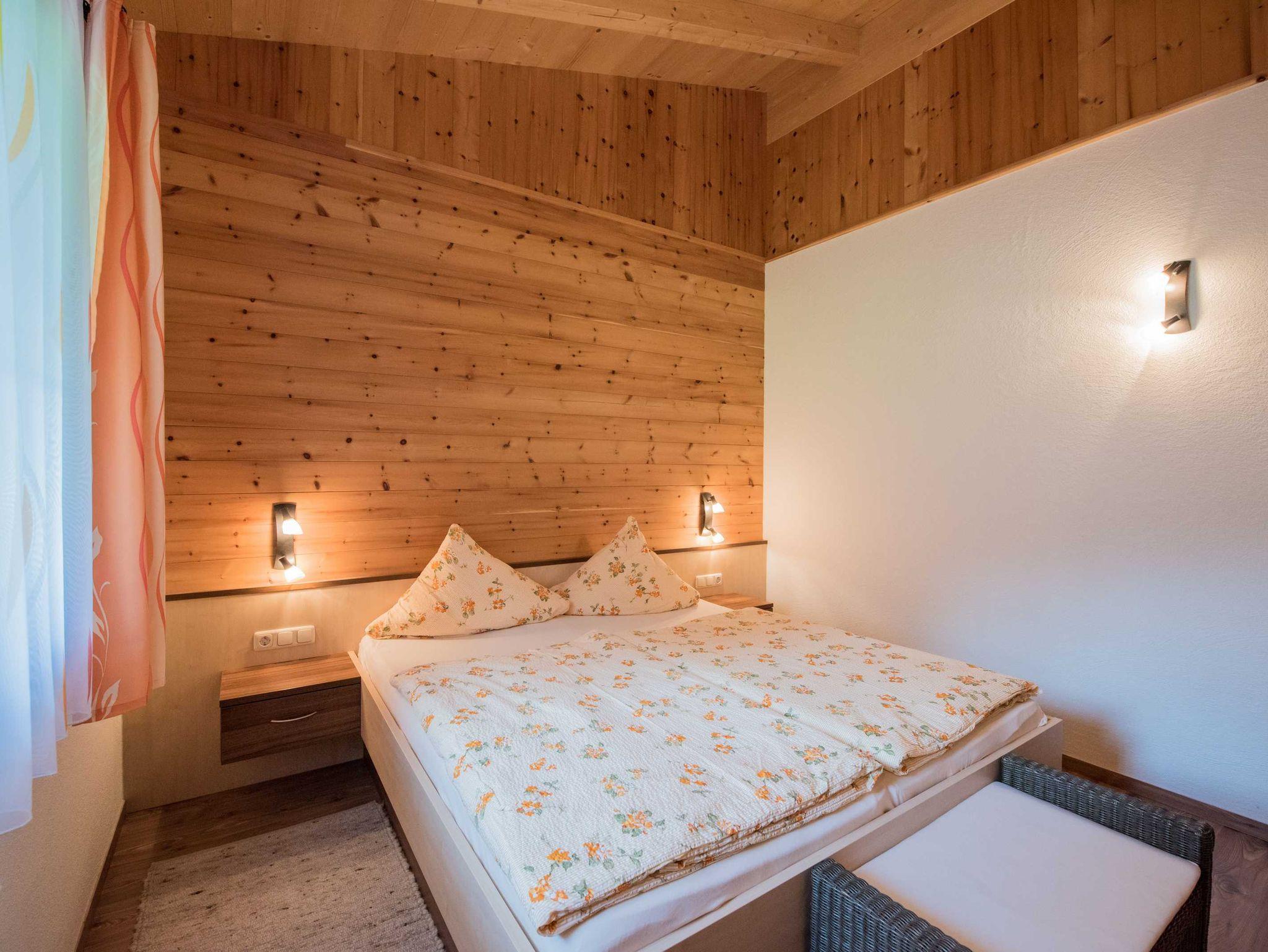 Schlafzimmer sind in Zirbenholz eingerichtet wo für gesunden Schlaf sorgen.