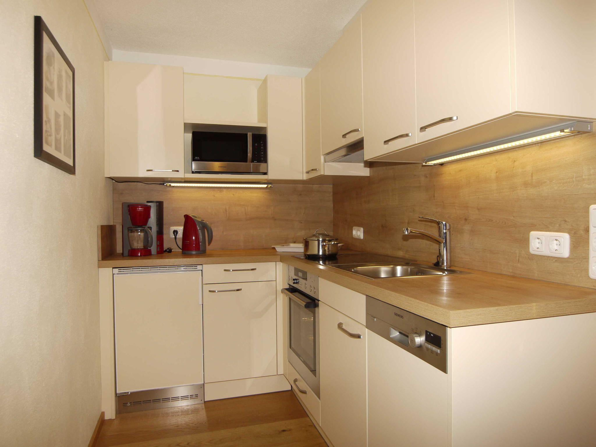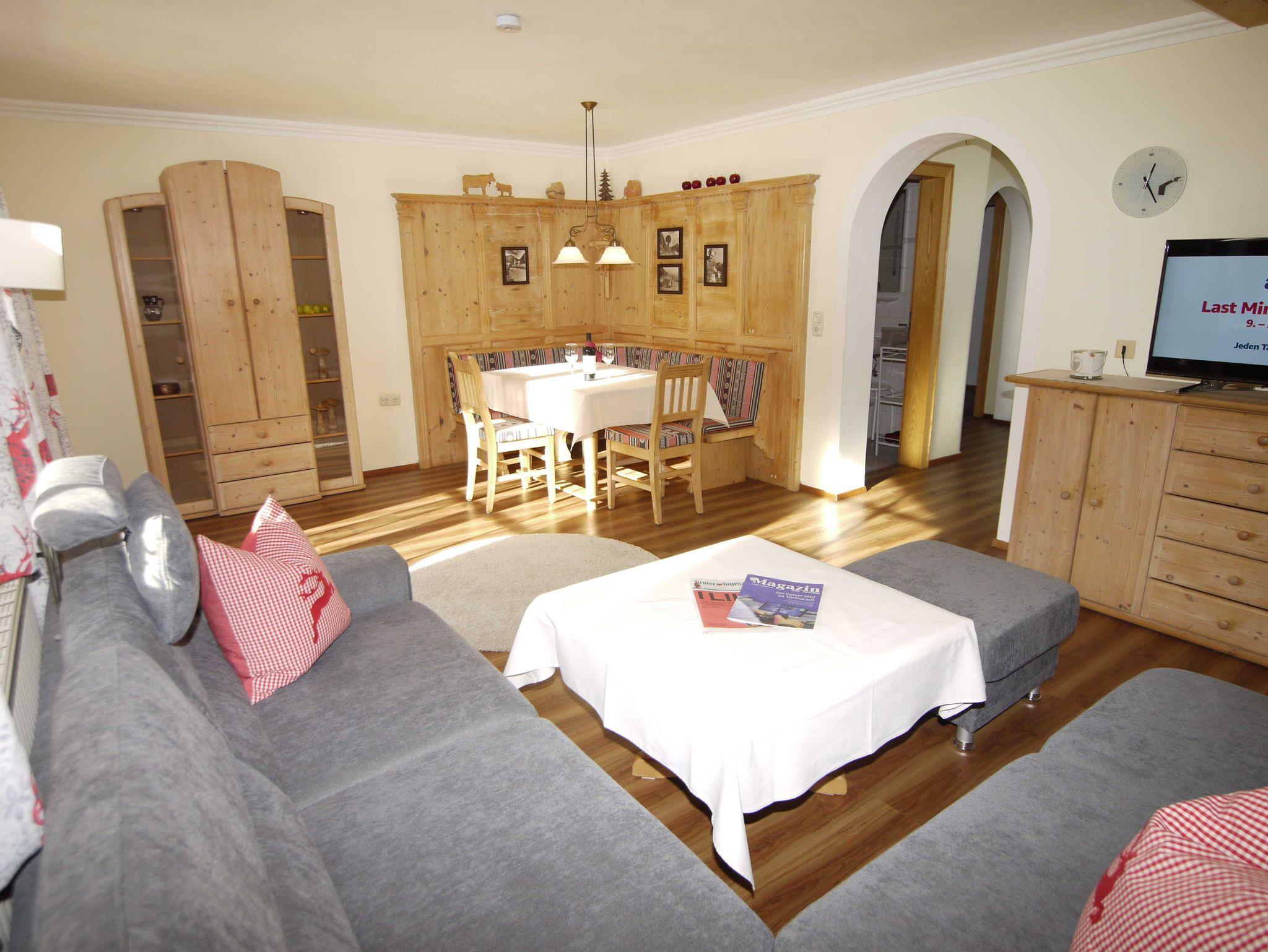 Ferienwohnung für 2 - 4 Pers. mit 2 geräumigen Schlafzimmern eins davon mit Zirbenbett, komplette Küche, Wohnzimmer, DU/WC, möblierter und abgeteilter Süd- und Nordbalkon