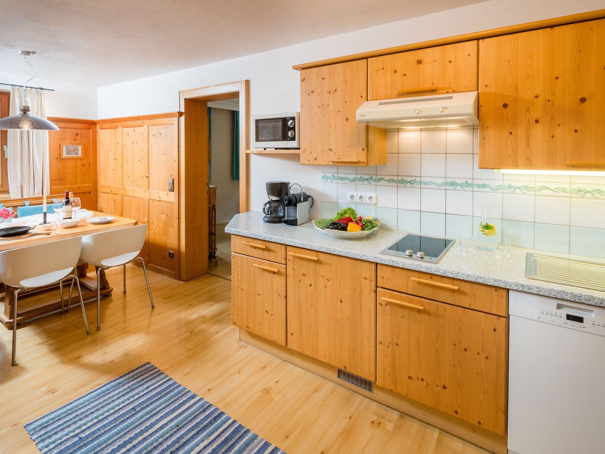 Die sonnendurchflutete Wohnstube lädt zum Faulenzen ein, der Balkon zum tiefen Atemzug frischer Bergluft. Kochen Sie gern? Die voll ausgestattete Küche mit angrenzendem Essbereich für bis zu sechs Personen ist perfekt für gesellige Momente. Wer es lieber entspannt mag, findet ausgezeichnete Restaurants in der Nähe.