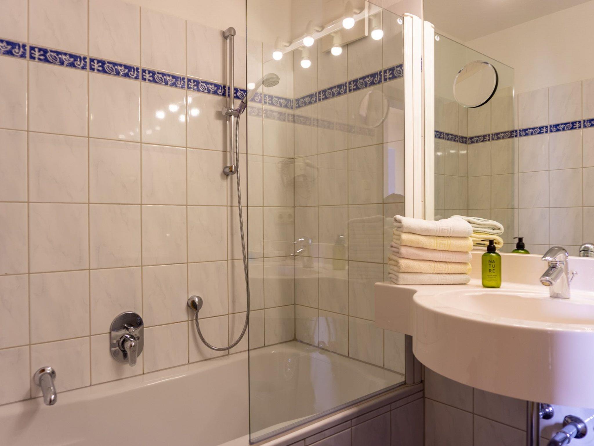 Es erwartet Sie eine helle, geschmackvolle Komfortferienwohnung mit 61 m², bestehend aus einem Vorraum mit Garderobe, 1 Einzelzimmer (mit Zusatzmatratze auf Wunsch), WC, getrenntes Badezimmer mit Wanne und Duschvorrichtung, Fön, NEUE Küche mit Durchreiche zum Essplatz, (Herd mit Backrohr und 4 Platten, Spülmaschine, Toaster, Wasserkocher, Kaffeemaschine), Wohnzimmer mit Doppelschlafcouch, Flat-TV, DW-Telefon , Radio, ein separates Doppelzimmer, Safe, möblierte Südloggia, überdachter Autoabstellplatz, Brötchenservice, komplette Wäsche (Bett-, Tisch-, Bad- und Küchenwäsche). Zusätzlich zur Ferienwohnung können Sie noch ein Doppelzimmer oder Einzelzimmer mit DU/WC buchen