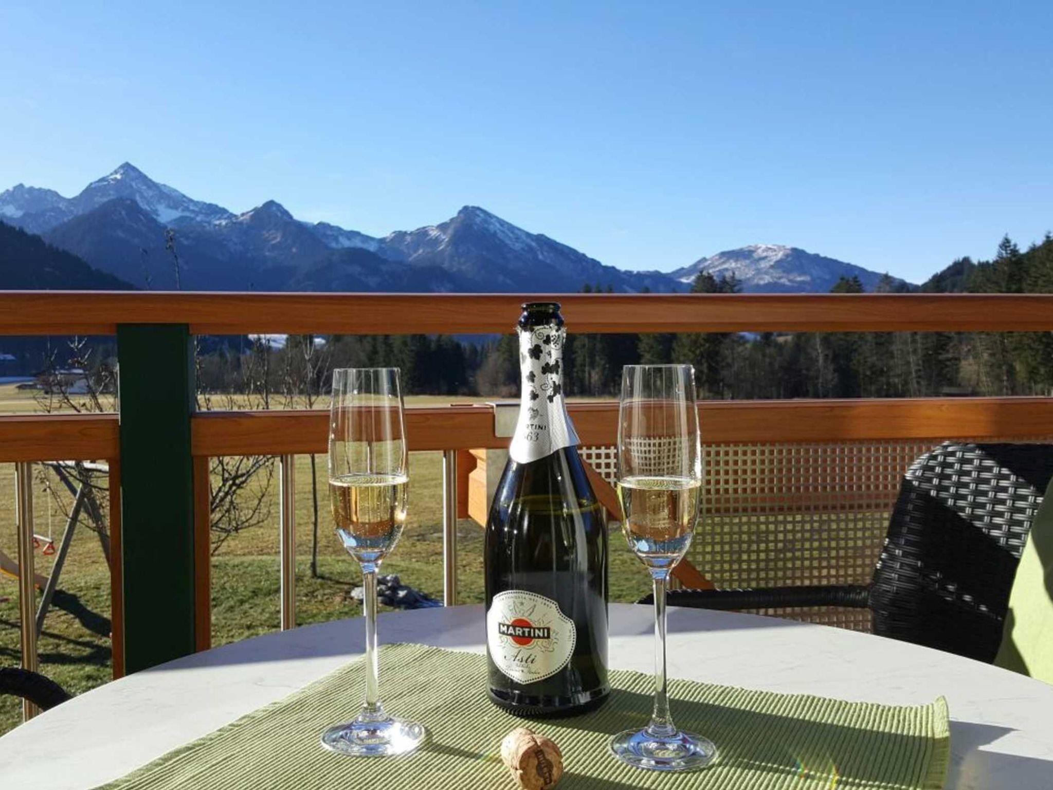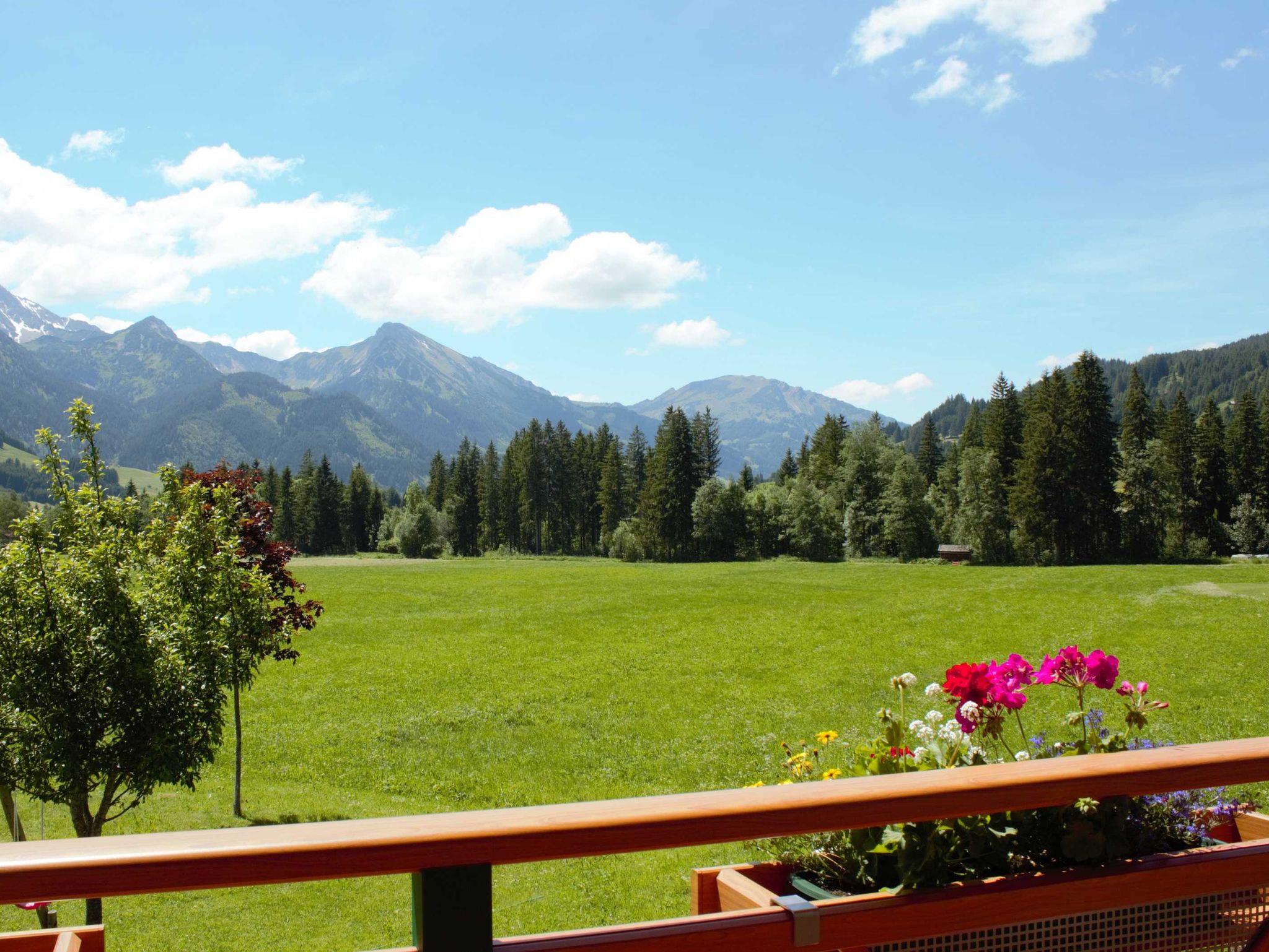 Der großzügige Balkon der nach Süd, Süd-West ausgerichtet ist bietet ihnen einen herrlichen freien Ausblick auf die umliegenden Wiesen und auf ein wundervolles Bergpanorama.