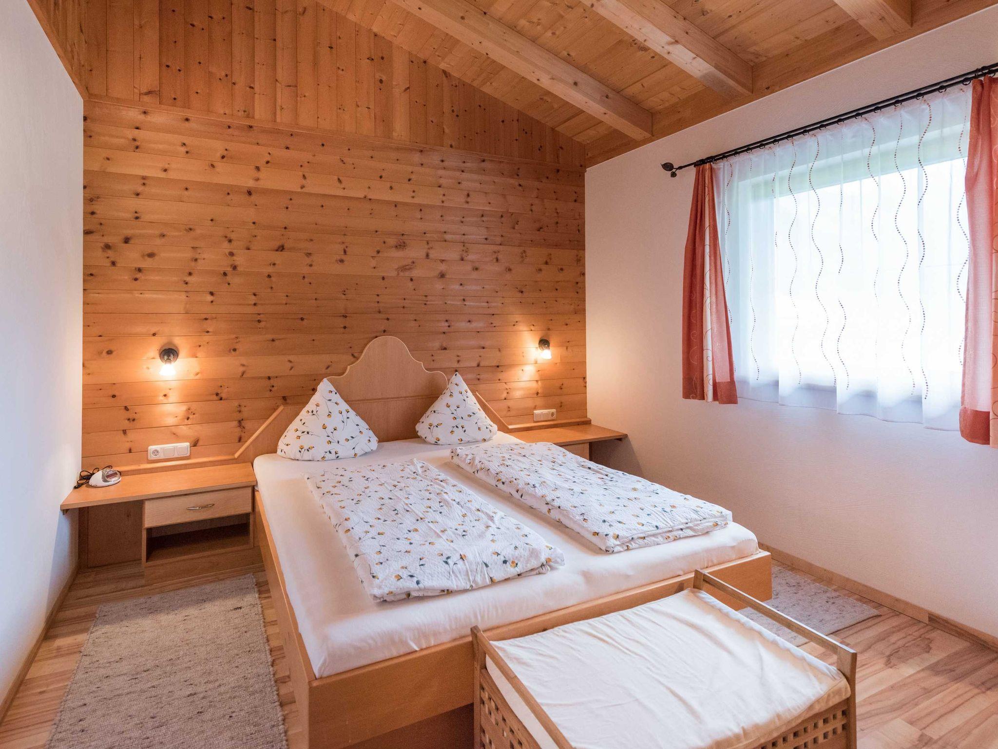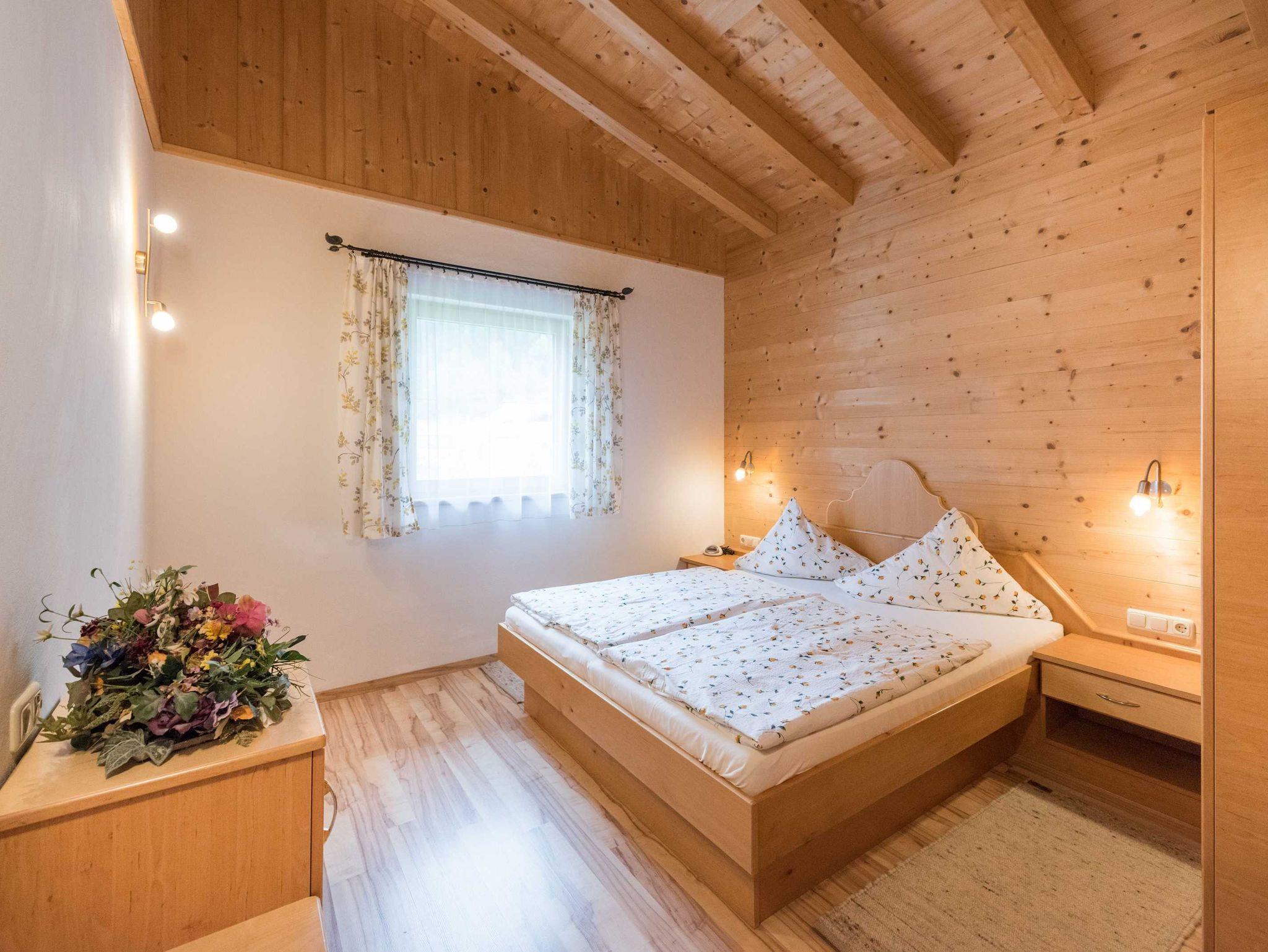 Schlafzimmer sind in Zirbenholz eingerichtet wo für gesunden Schlaf sorgen.