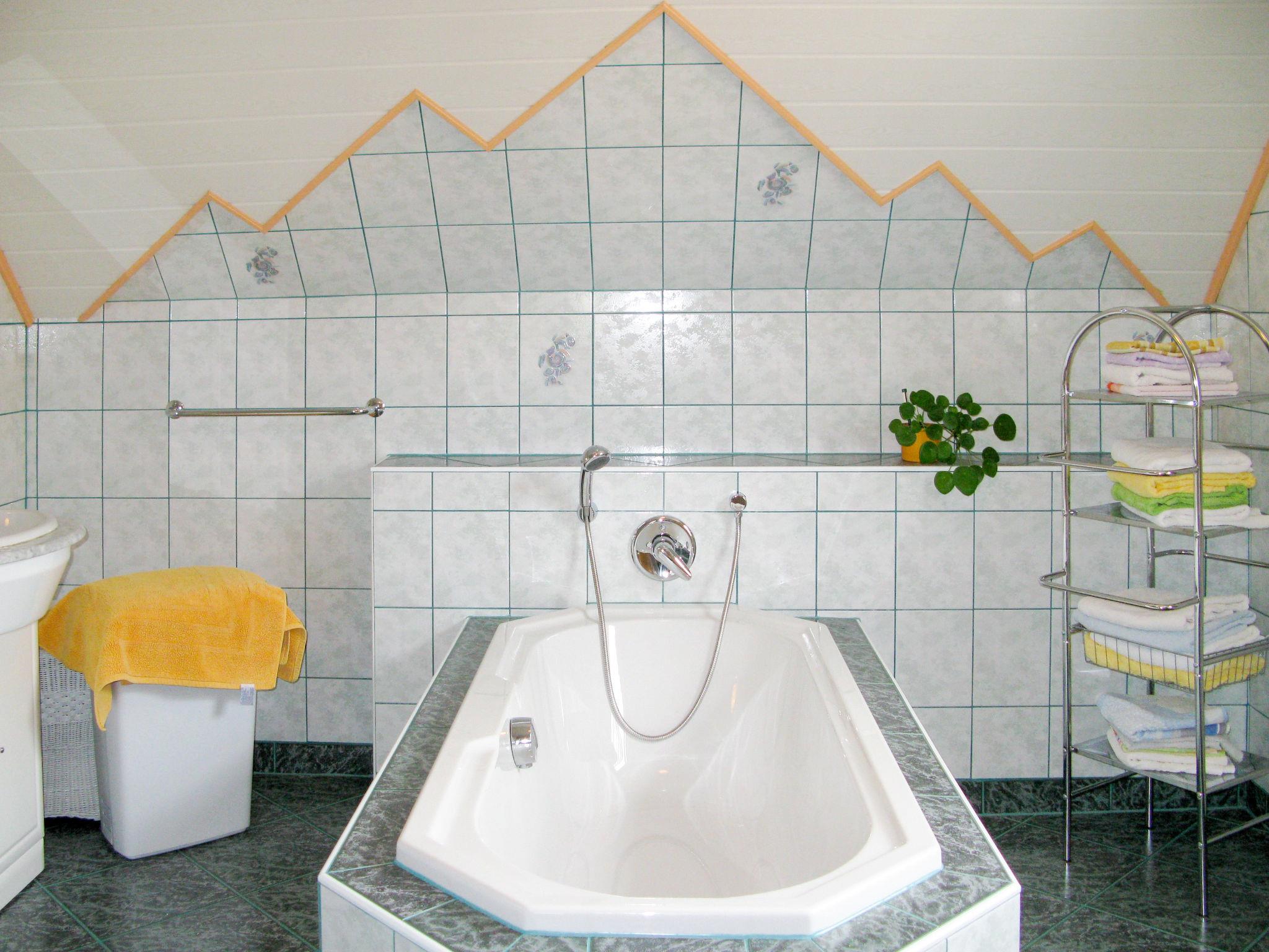 "Reinbacher", 4-room house 110 m2 on 2 levels. Beautiful and rustic furnishings: living/sleeping room with 1 double sofabed and satellite TV. Exit to the garden. 1 small room with 1 double bed and shower/WC. Kitchen-/living room (4 hot plates, oven, dishwasher, toaster, kettle, microwave, electric coffee machine) with dining table and dining nook. Sep. WC. Upper floor: 1 room with sloping ceilings with 1 bed and 1 double bed. 1 room with sloping ceilings with 1 double bed. Bath/shower/WC, double hand-basin. Oil heating. Balcony, large terrace roofed. Terrace furniture. Very beautiful panoramic view of the mountains. Facilities: washing machine, iron, children's high chair, baby cot. Internet (WiFi, free). Please note: non-smokers only. Smoke alarm. Bed layout is flexible. There are more sleeping options available than the maximum number of people allowed which may, however, not be exceeded.