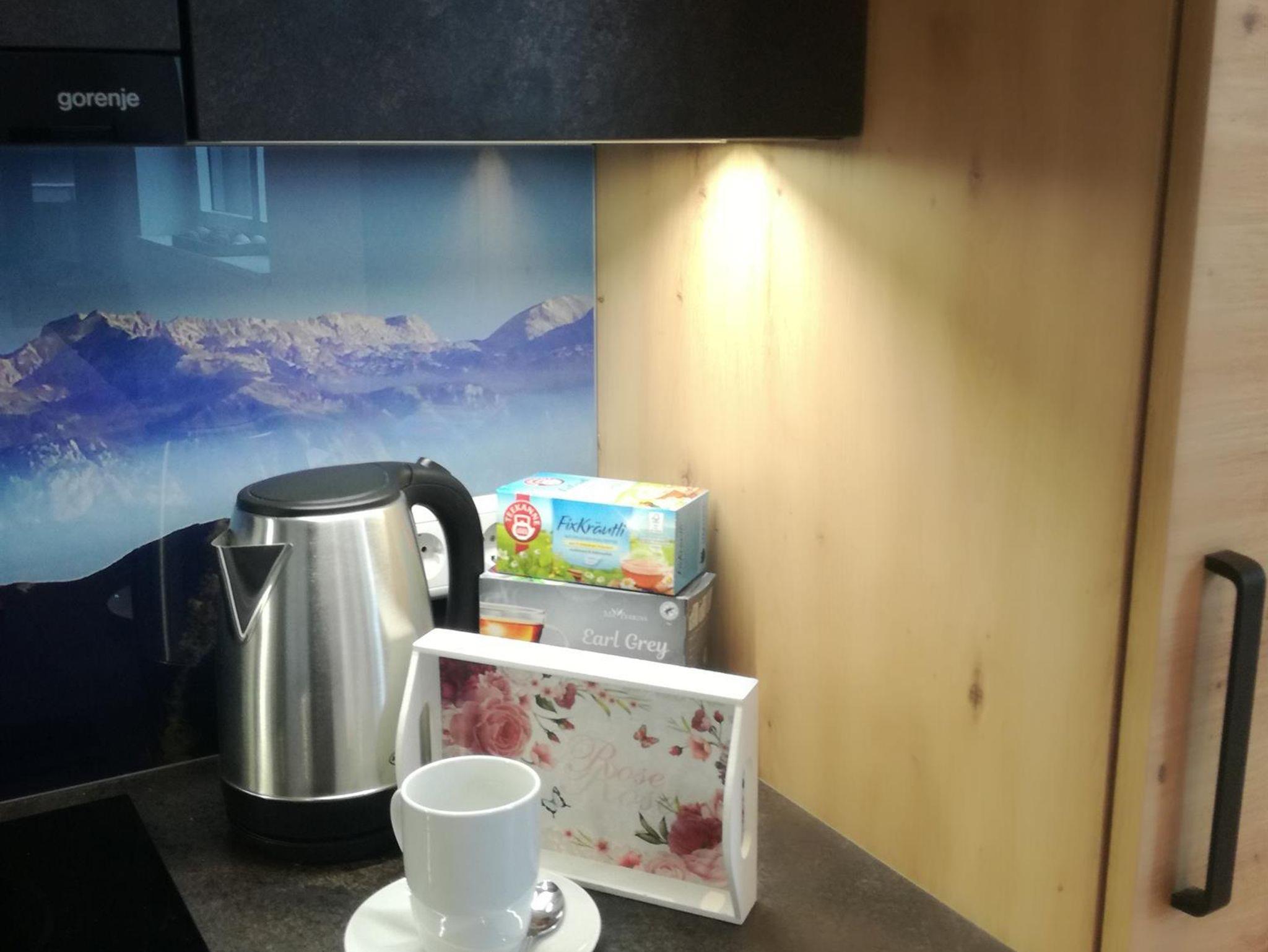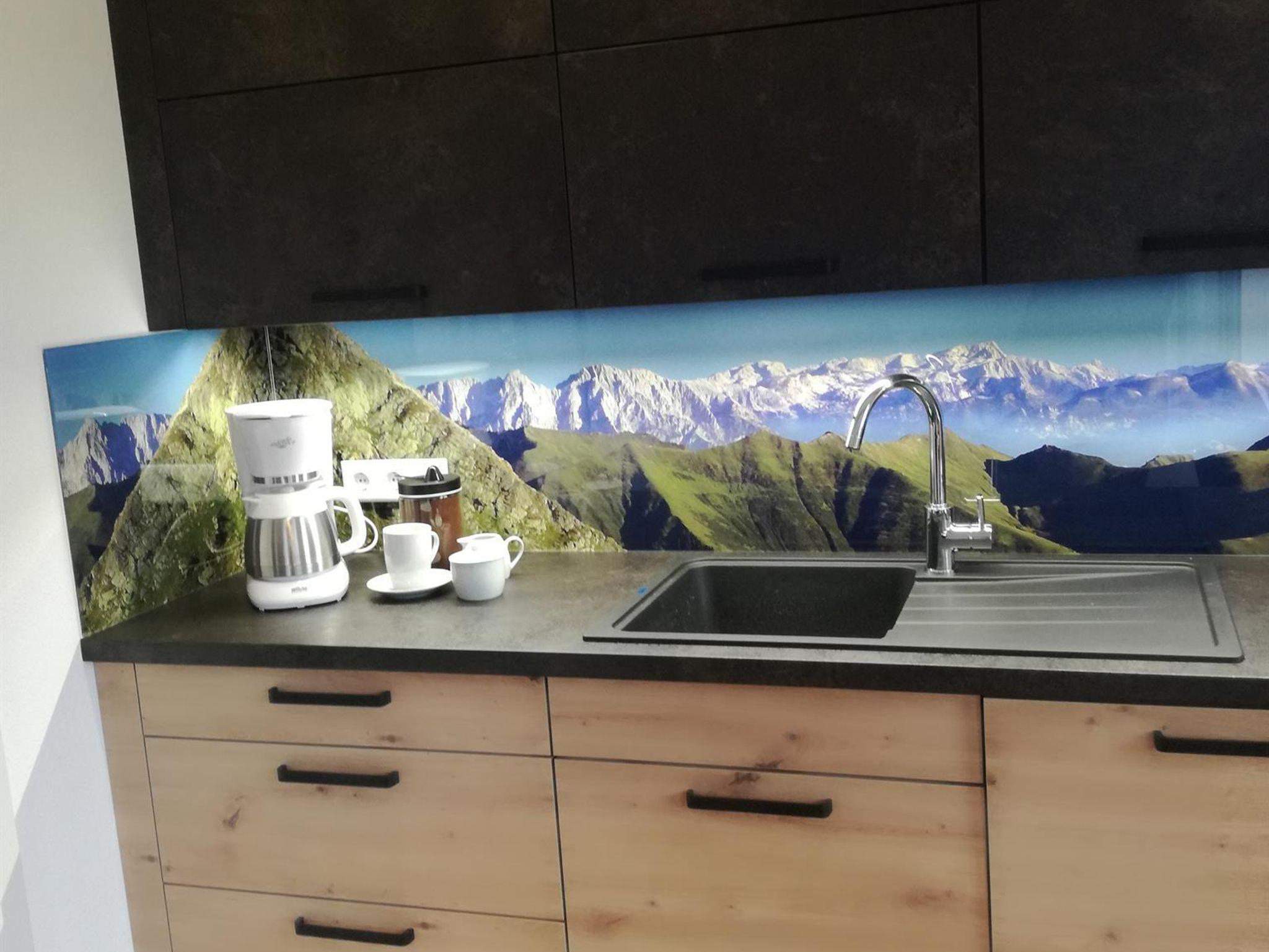 Sie besitzt eine große Wohnküche, 2 geräumige Schlafzimmer, eine Diele, ein Badezimmer, ein WC, ein Kellerabteil für Schiablage, ein Carport und eine Aussichtsterrasse. Die Wohnung ist für maximal 6 Personen bewohnbar. Die Unterkunft liegt im 2. Stock und ist bequem mit einem Lift zu erreichen. Die wunderschöne Küche lässt keine Wünsche offen. Sie ist mit Qualitätsgeräten ausgestattet. Von Geschirrspüler über Backofen, Mikrowelle, Toaster, Wasserkocher, Kühl-Gefrierschrank ist alles vorhanden. Koch und Eßgeschirr ist reichlich da. Zwei Schlafzimmer sind mit 180 x 200 cm großen Boxspringbetten ausgestattet und sorgen für erholsamen Schlaf. Eine Couch im Wohnzimmer kann zu einem Doppelbett (mit der Liegefläche von 150 cm x 190 cm) ausgezogen werden, falls benötigt. Im Badezimmer ist genügend Platz für zwei Waschbecken. Die separate Toilette befindet sich neben dem Badezimmer.