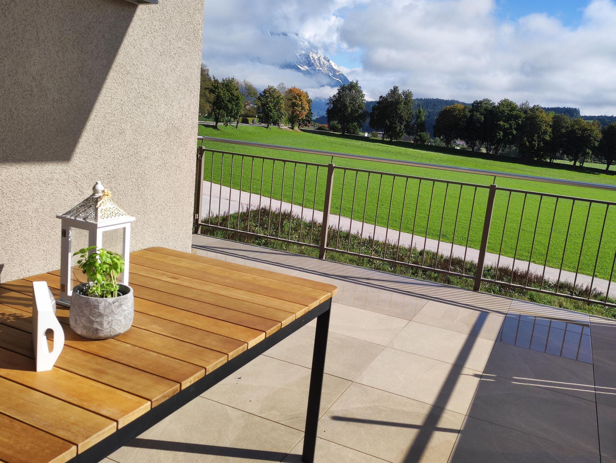Über das Wohnzimmer gelangt man auf die wunderschöne Aussichtsterrasse. Sie ist mit Gartenmöbel ausgestattet und von dort haben Sie einen wunderschönen Blick in die umliegende Bergwelt. Abends können sie auf der Terrasse ihren Urlaubstag gemütlich bei einem Gläschen Wein ausklingen lassen. Ihr Auto ist sicher im eigenen Carport abgestellt und ihre Schiausrüstung können Sie bequem im Keller der Ferienwohnung unterbringen.