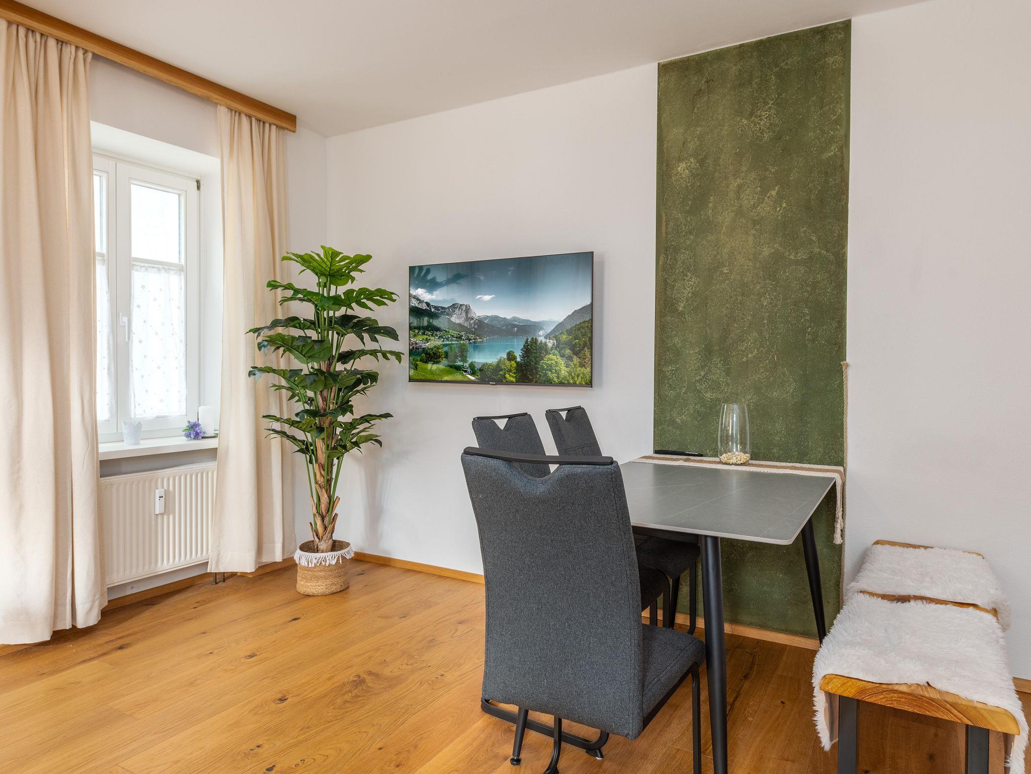 Das Appartement im Erdgeschoss der Hoamat für’s Herz bietet Platz für bis zu 4 Personen. Es verfügt über ein Schlafzimmer mit Doppelbett, eine ausziehbare Couch im Wohnbereich sowie ein zusätzliches Zustellbett. Der angeschlossene kleine Garten lädt zum Verweilen im Freien ein – ideal für gemütliche Stunden im Grünen.