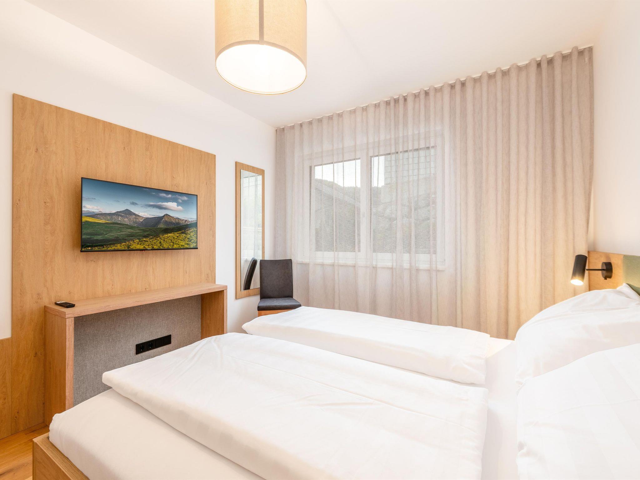 Unser Appartement bietet Platz für bis zu 6 Personen und verfügt über 2 geräumige Schlafzimmer, jeweils mit einem komfortablen Doppelbett. Zusätzlich gibt es im Wohnzimmer 2 Schlafsofas, auf denen 2 weitere Personen bequem übernachten können. Egal ob Sie mit Familie oder Freunden reisen, Sie finden hier genügend Platz für alle.