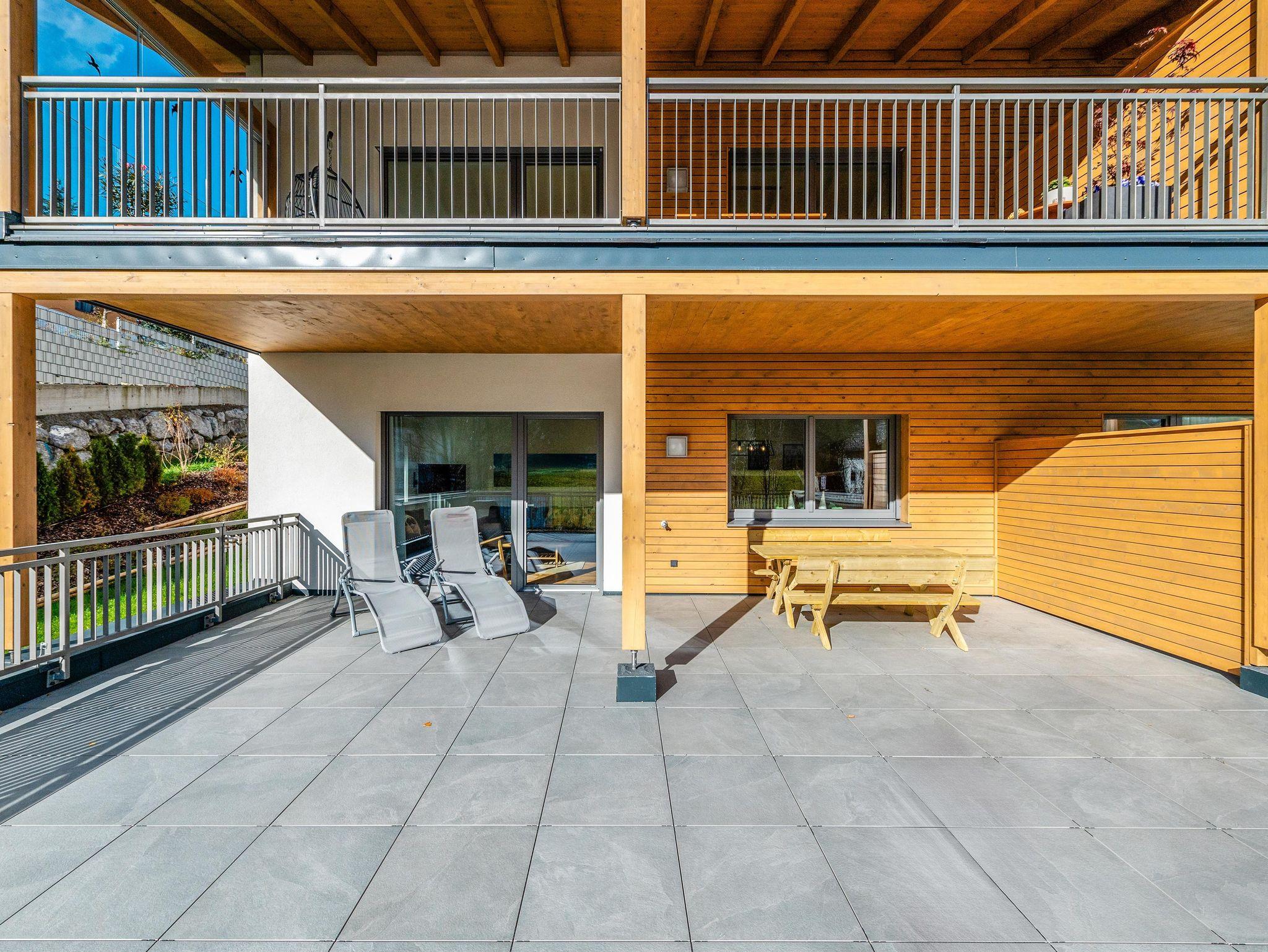 Die großzügige Terrasse lädt zum Entspannen ein. Genießen Sie das schöne Wetter auf unseren bequemen Gartenmöbeln oder machen Sie es sich auf den Liegen gemütlich und lassen Sie die Seele baumeln. Die Terrasse bietet zudem einen Panoramablick auf die Umgebung und ist der perfekte Ort, um den Tag ausklingen zu lassen.