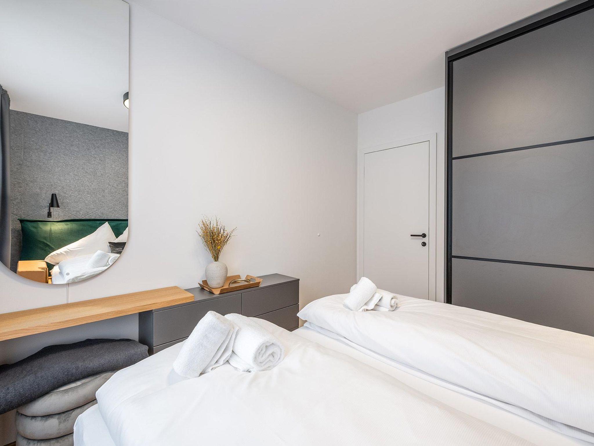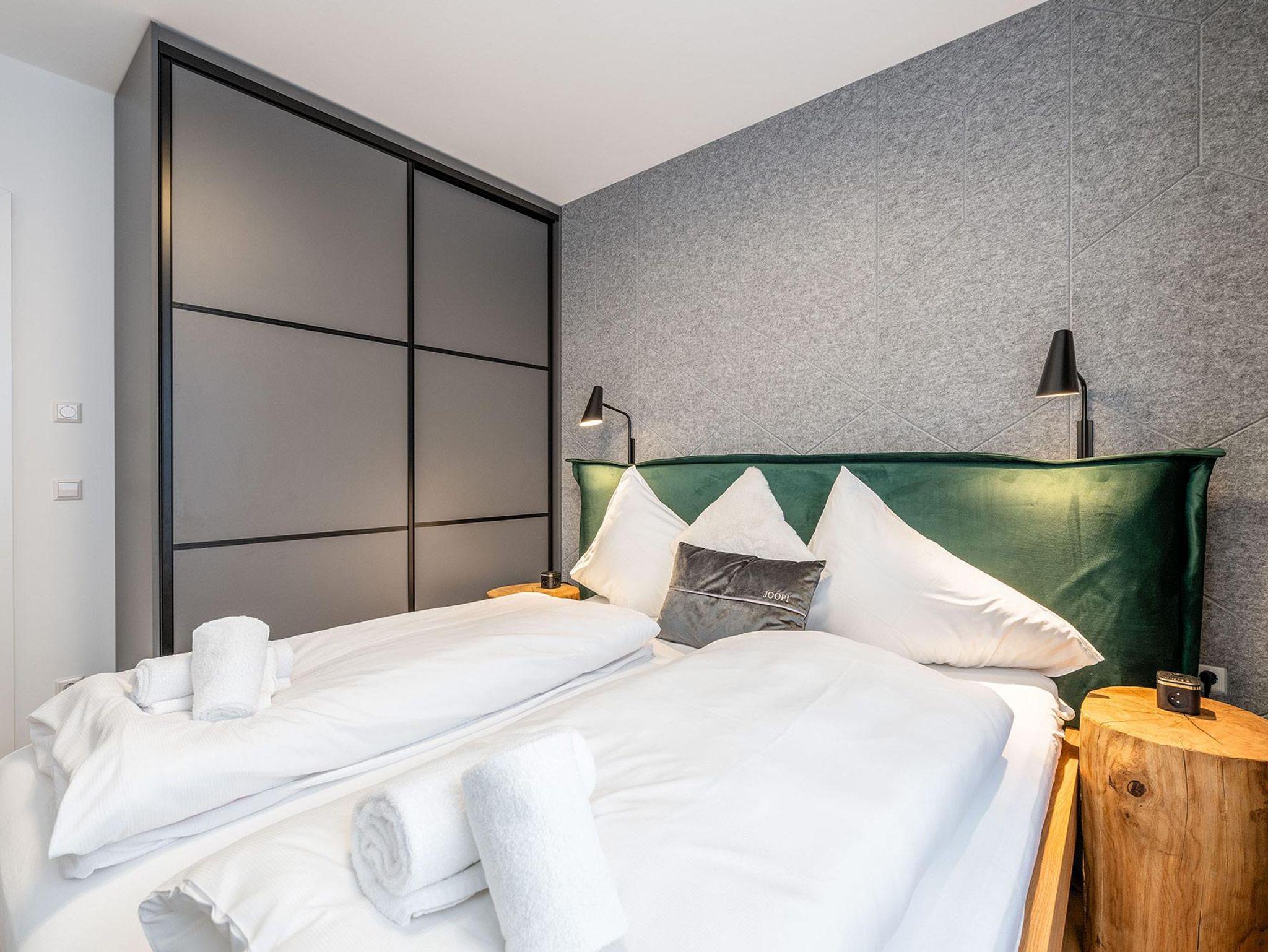Großzügige Grundrisse, harmonische Materialien und durchdachte Raumkonzepte schaffen ein sofortiges Wohlgefühl. Die Apartments bieten je nach Einheit komfortable Schlafzimmer, moderne Wohnbereiche sowie voll ausgestattete Küchen oder Wohnküchen – perfekt für Paare, Familien oder kleine Gruppen.