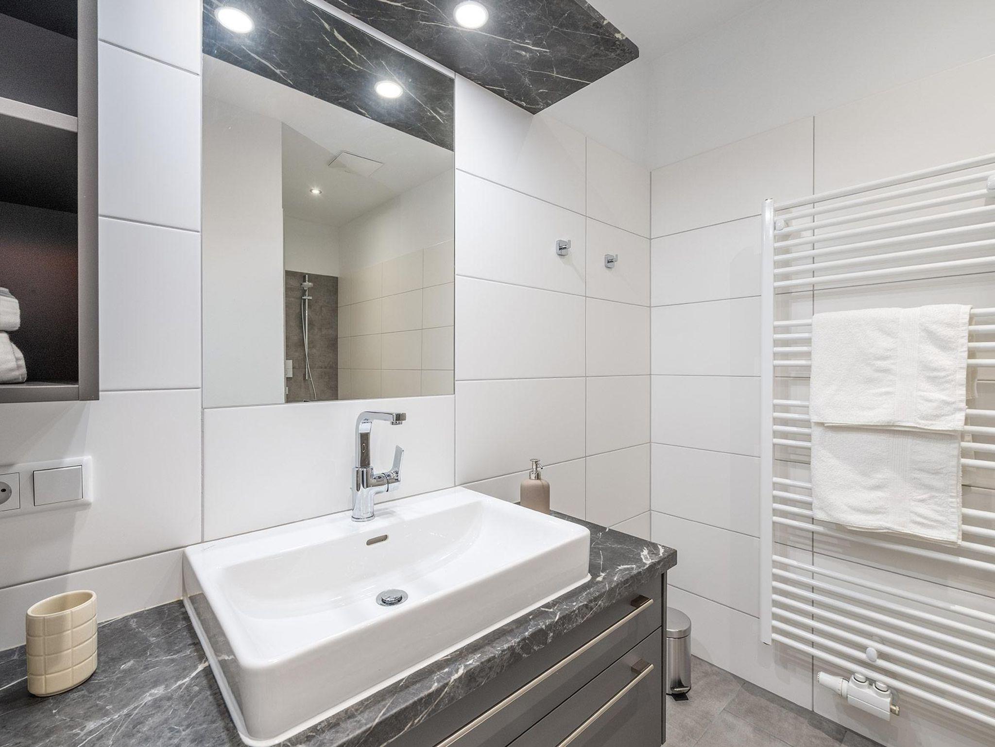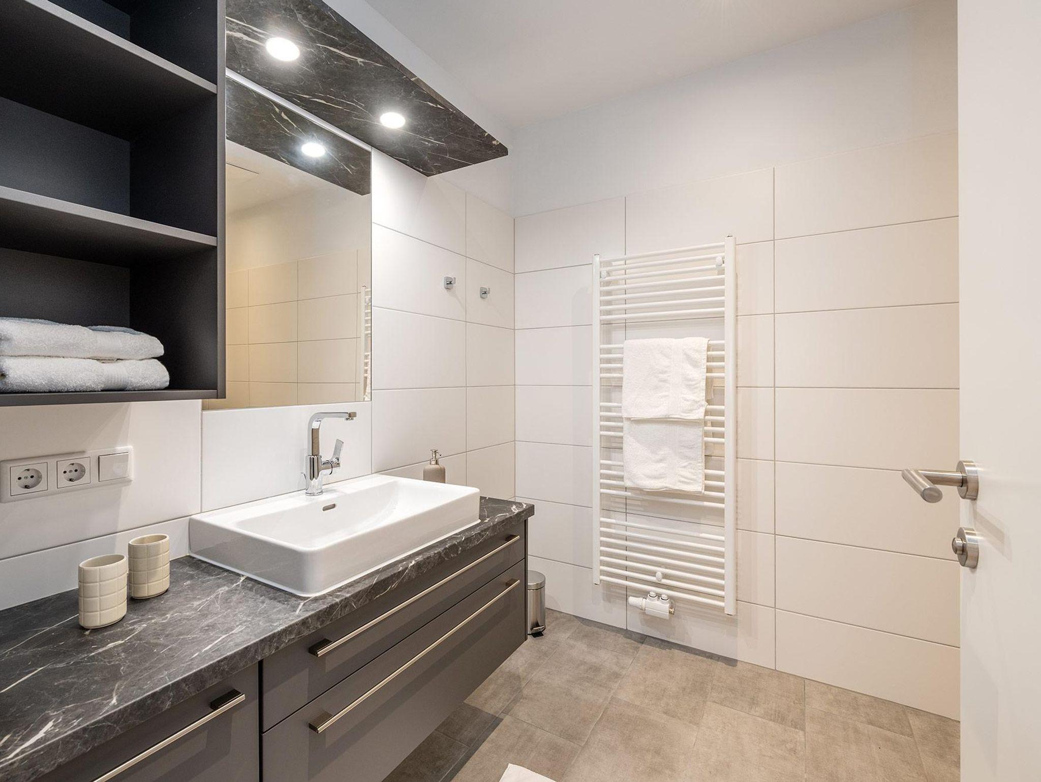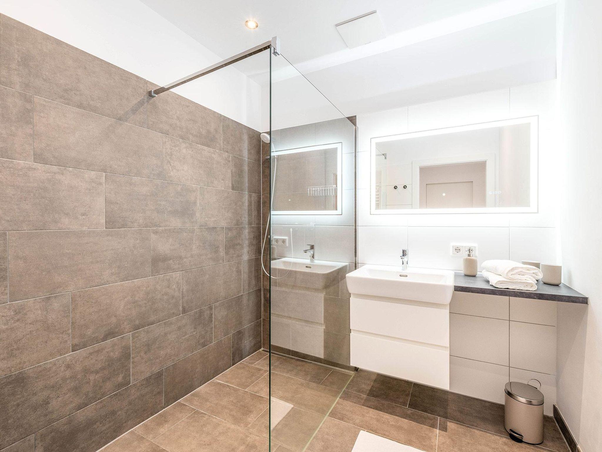 Die moderne, voll ausgestattete Küche, der helle Wohn- und Essbereich sowie die hochwertige, geschmackvolle Möblierung sorgen für ein angenehmes Wohngefühl. Jedes Apartment verfügt über ein Badezimmer mit Dusche sowie ein separates WC – ideal für einen entspannten Aufenthalt.