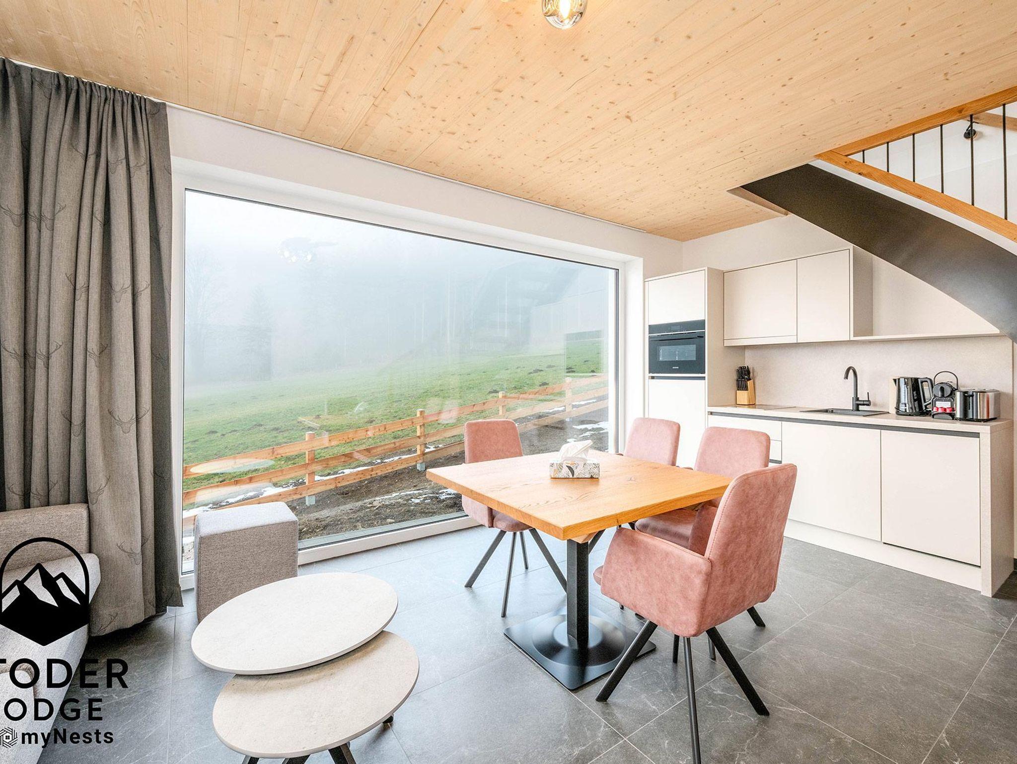 Die StoderLodge 2 – Alpine Garden Residence ist ein stilvoller Rückzugsort für alle, die Ruhe, Natur und exklusives Wohngefühl auf kompakter Fläche suchen. Auf rund 40 m² bietet das Apartment Platz für bis zu 4 Personen und begeistert mit einem einzigartigen Panoramaerlebnis.