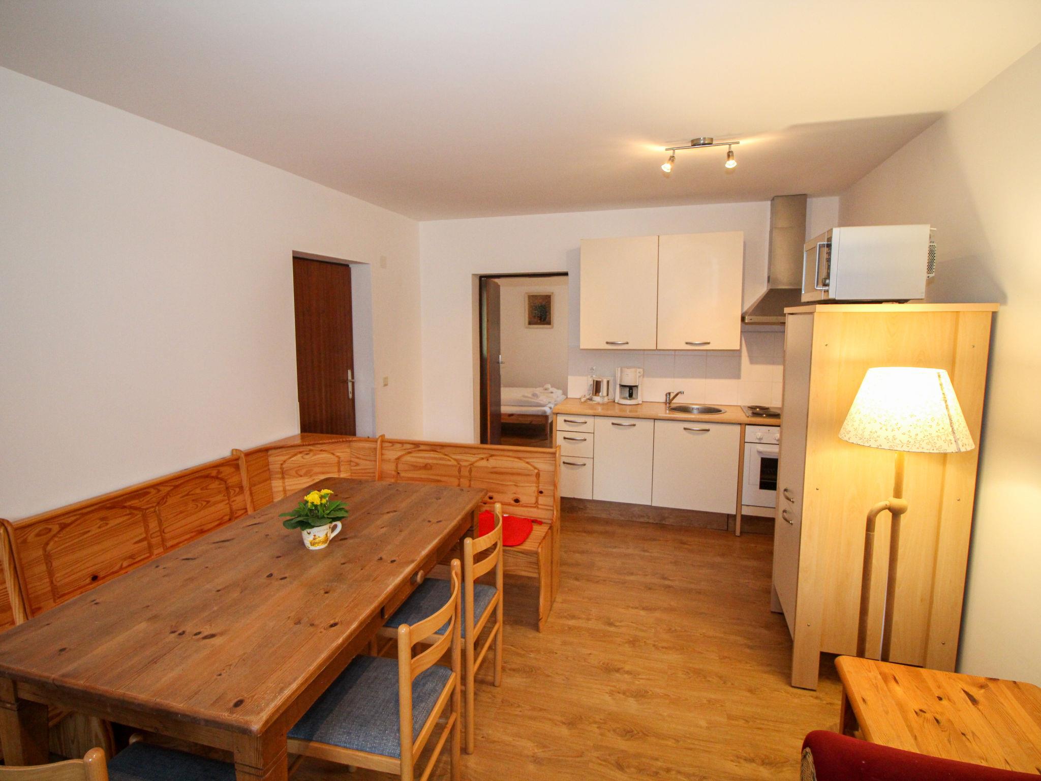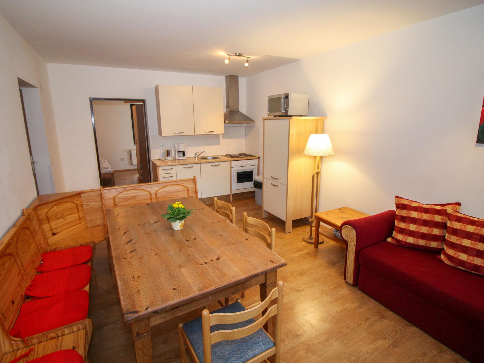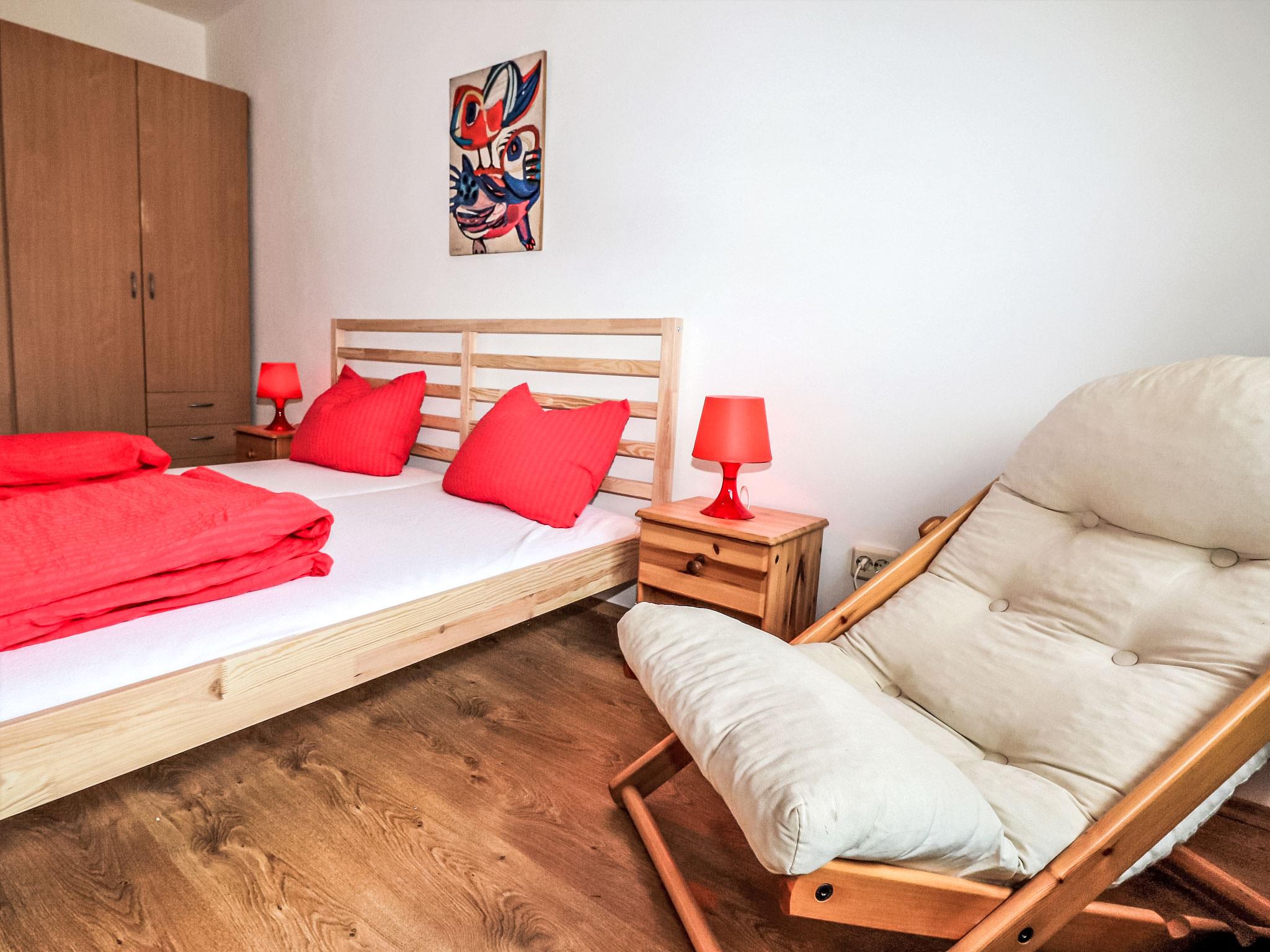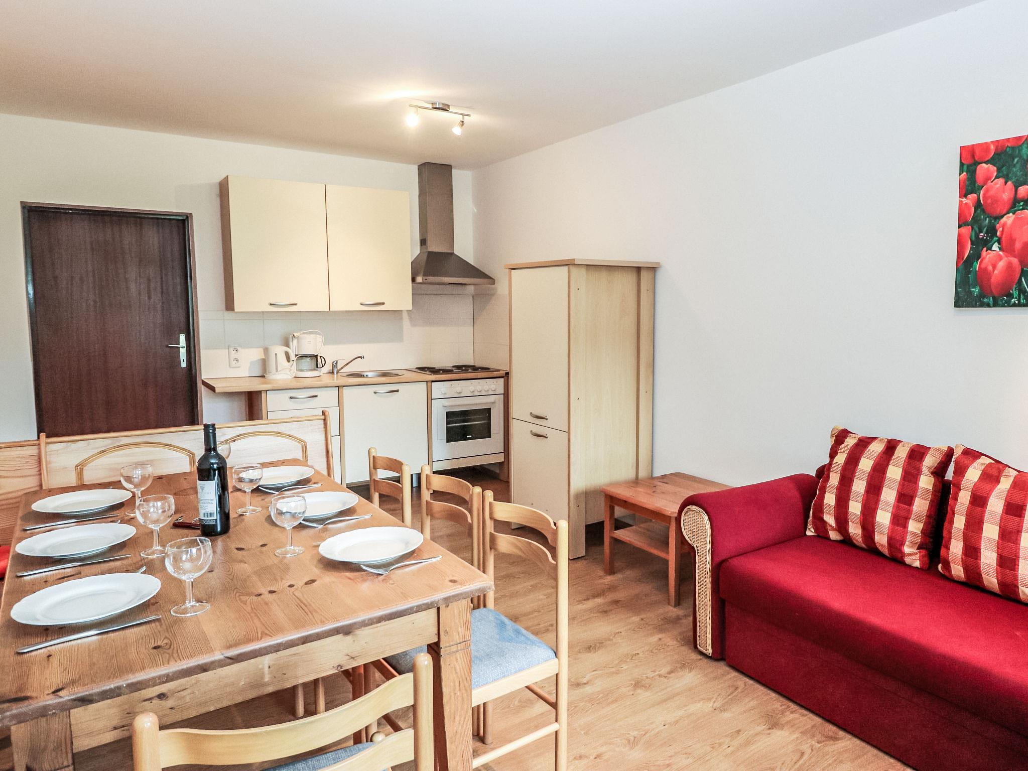 "Taubenschlag / Top 4", 4-room apartment 74 m2 on 1st floor. Object suitable for 4 adults + 4 children. Bright, practical and cosy furnishings: large living/dining room with dining nook, kitchen corner and satellite TV. 1 room with 1 double bed (160 cm, length 200 cm), shower/WC. 1 large room with 1 double bed (160 cm, length 200 cm). 1 small children's room with 2 x 2 bunk beds (length 180 cm). Open kitchen (4 hot plates, oven, dishwasher, microwave, electric coffee machine). Shower/WC. Large balcony. Balcony furniture. View of the mountains and the resort. Facilities: Internet (WiFi, free). Please note: suitable for families. Non-smokers only. Smoke alarm, fire extinguisher.