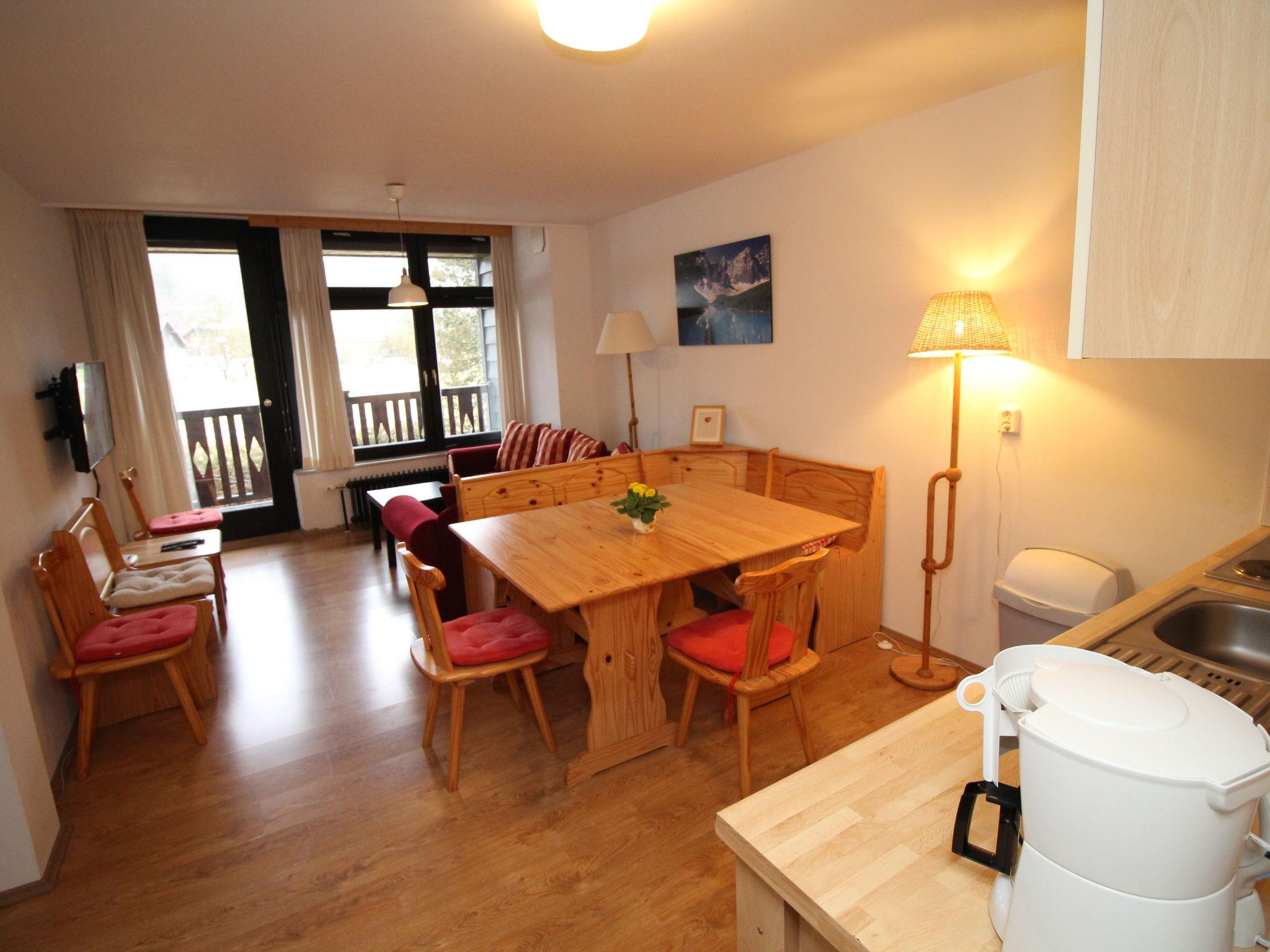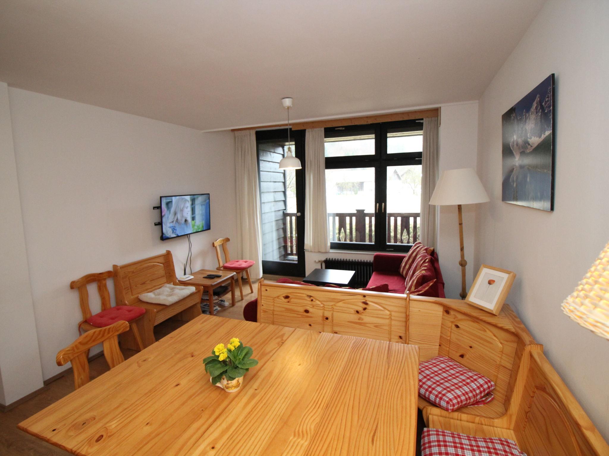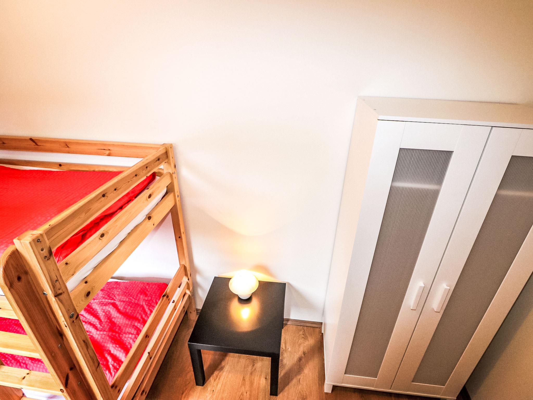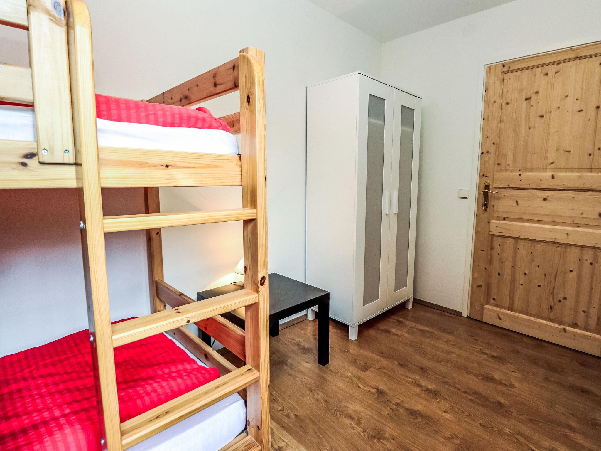 "Spatzennest / Top 7", 5-room apartment 82 m2 on 1st floor. Object suitable for 4 adults + 4 children. Bright, cosy furnishings: large living/dining room with dining table, kitchen corner and satellite TV. Exit to the balcony. 1 double bedroom. 1 room with 1 french bed (160 cm, length 200 cm). Exit to the balcony. 2 children's rooms, each room with 1 x 2 bunk beds (80 cm, length 200 cm). Open kitchen (4 hot plates, oven, dishwasher, microwave, freezer, electric coffee machine). 2 showers/WC. Large balcony. Balcony furniture. Beautiful view of the mountains and the resort. Facilities: Internet (WiFi, free). Please note: non-smokers only. Smoke alarm, fire extinguisher, no lift.