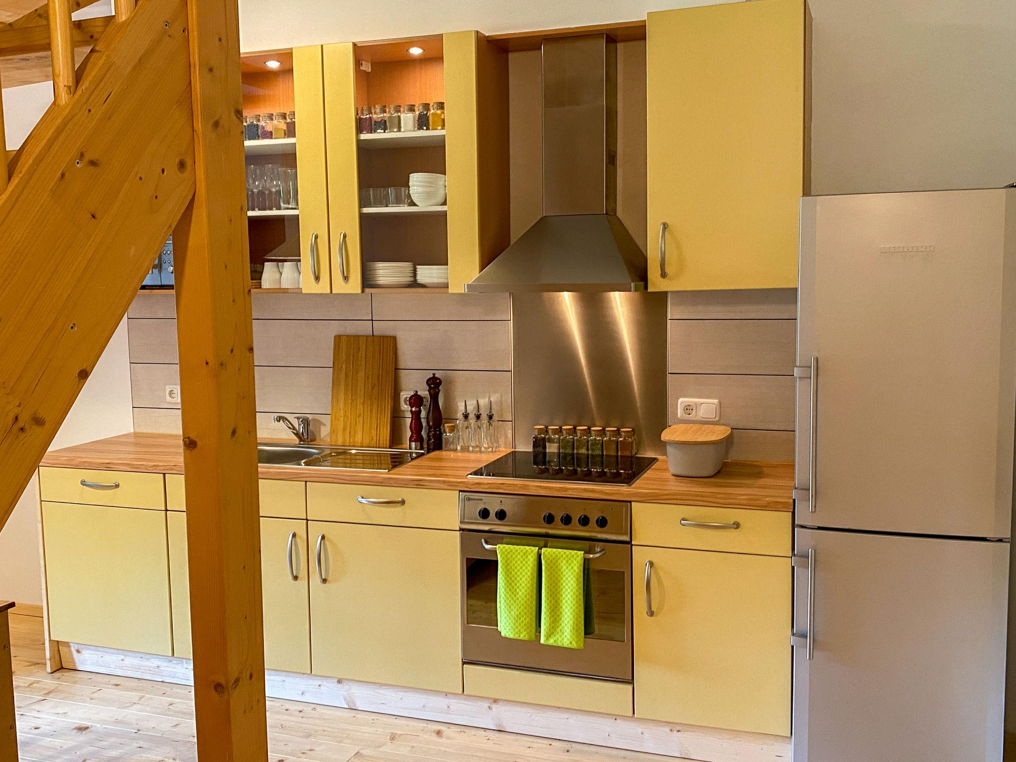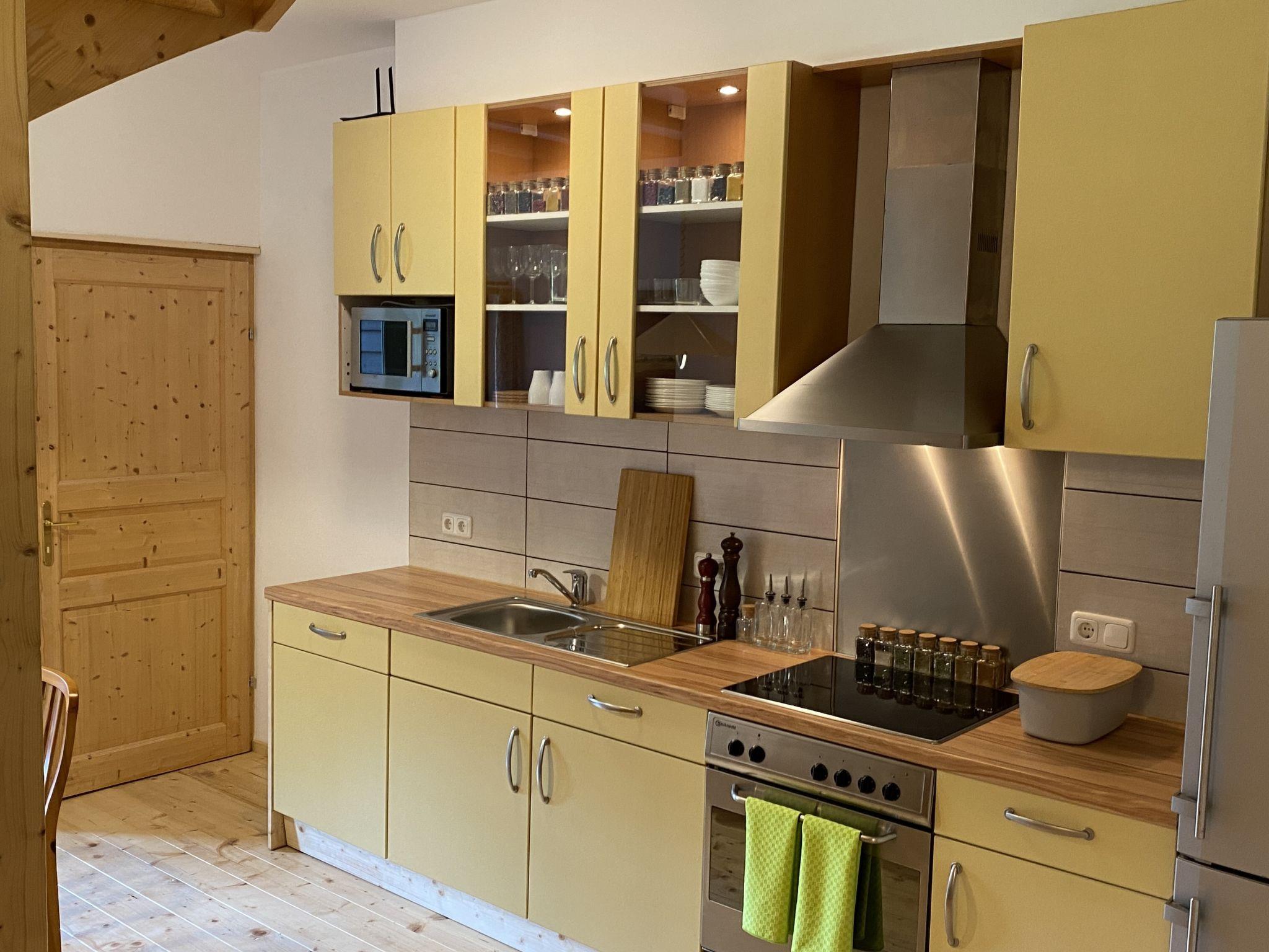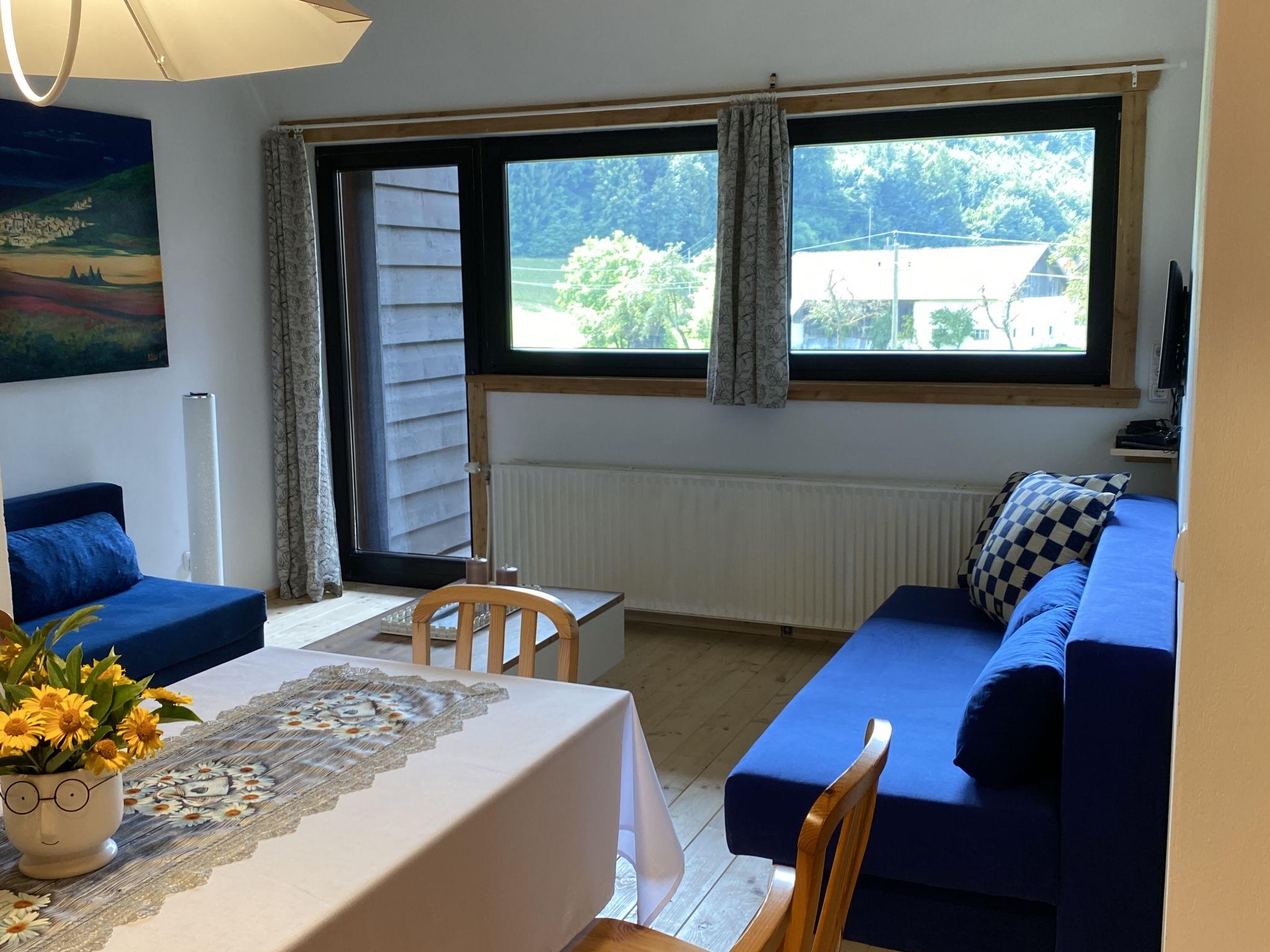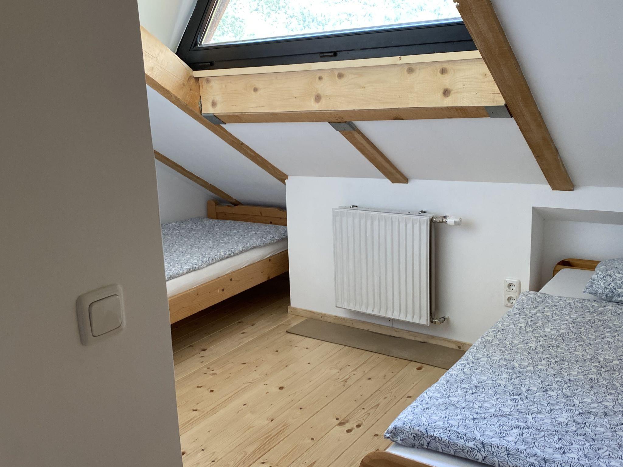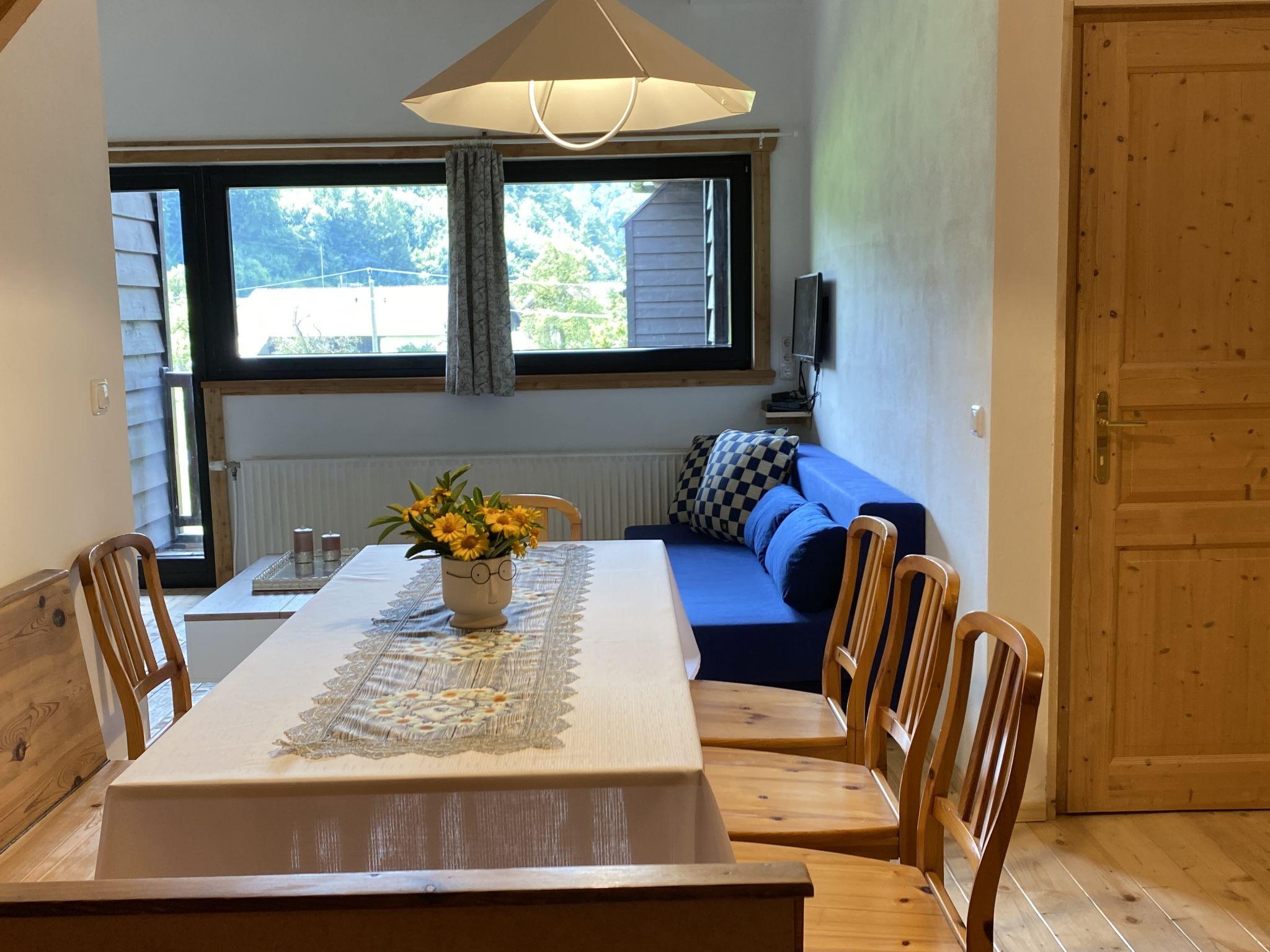 "Hasenstall / Top 8", 5-room apartment 79 m2 on 2 levels on 2nd floor. Object suitable for 8 adults + 1 child. Partly with sloping ceilings, fully renovated in 2023, very tasteful and wooden furniture furnishings: entrance hall. Open large living/dining room. 1 double bedroom with 1 double sofabed. 1 double bedroom with 1 x 2 bunk beds. Open kitchen (oven, dishwasher, toaster, kettle, electric coffee machine). 2 Baths/showers/WC. Upper floor: 1 double bedroom with 1 double bed. 1 double bedroom with 2 beds. Parquet floors. Small balcony 6 m2. Very beautiful panoramic view of the mountains. Facilities: washing machine, iron. Internet (WiFi, free). Please note: suitable for families. Private entrance, smoke alarm, fire extinguisher, no lift.