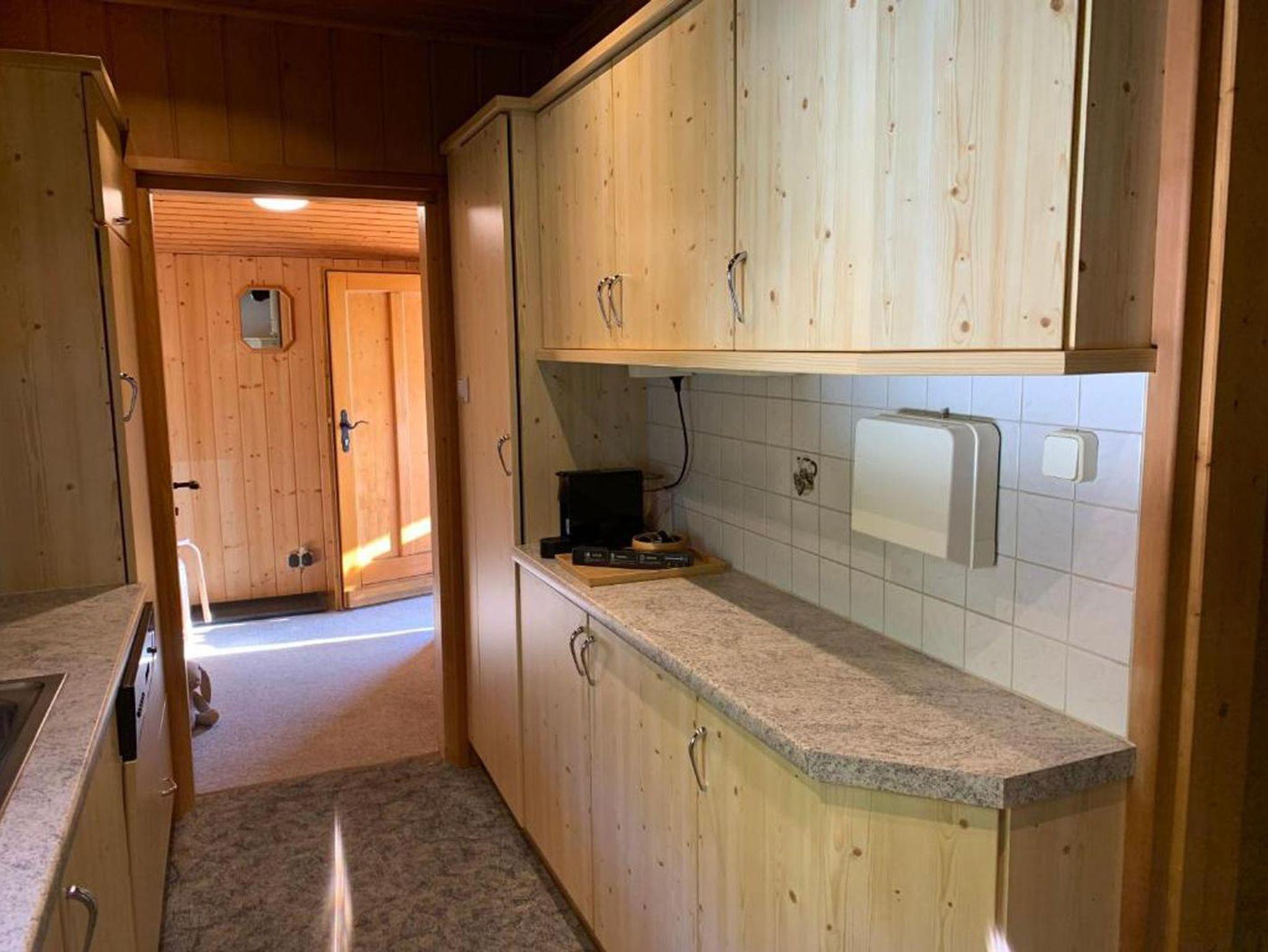 Das Ferienhaus ist aufgeteilt in Vorraum, Küche, Wohn-Esszimmer, Bad mit Dusche und WC, Schlafzimmer, Schrankraum, Terrasse, Garten, Garage und Parkplatz.